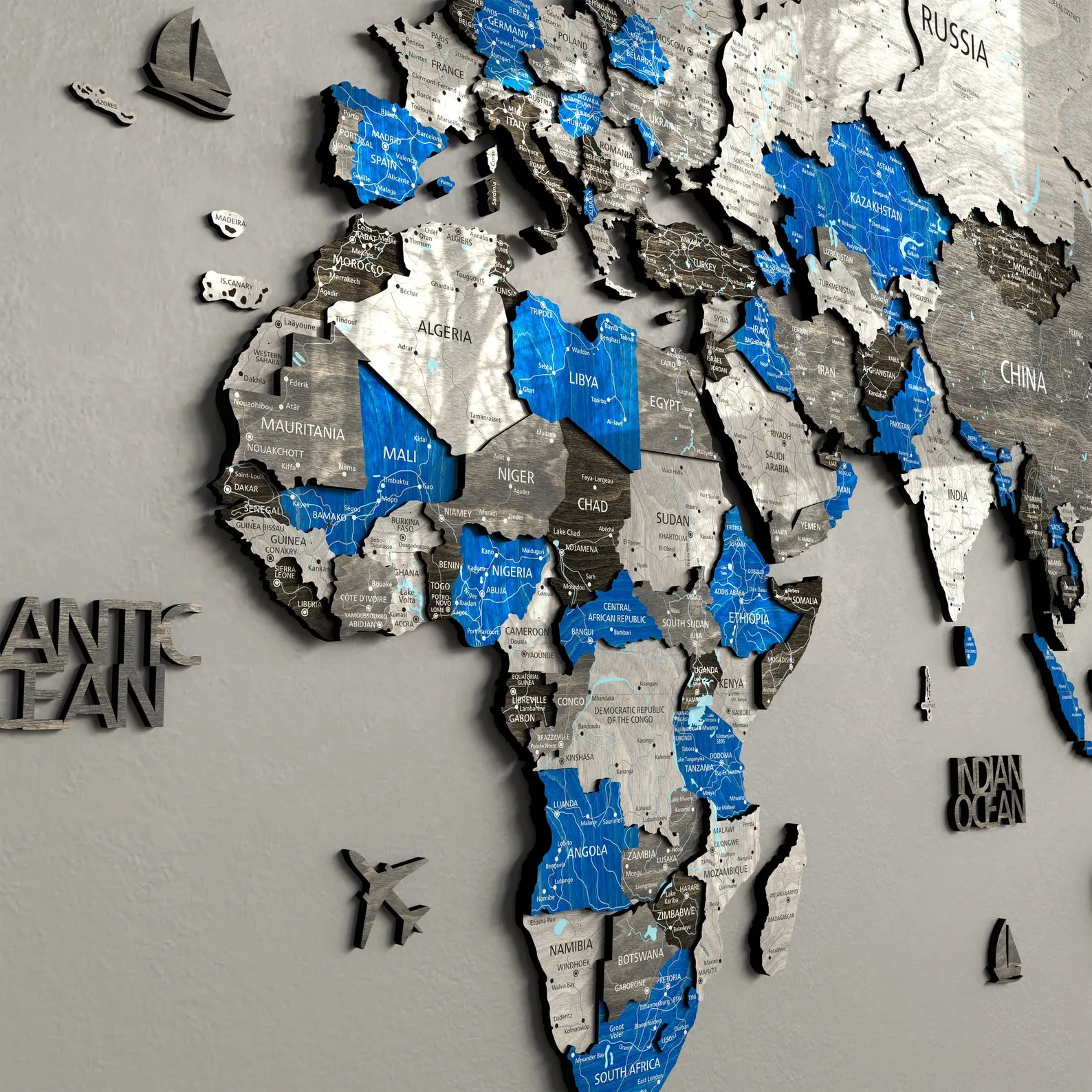 3D Wood World Map, Large Map Wall Art, Wood Travel Map, Travel Tracker Map, Detailed World Map, Map Wall Hanging, Wood Geography Art
