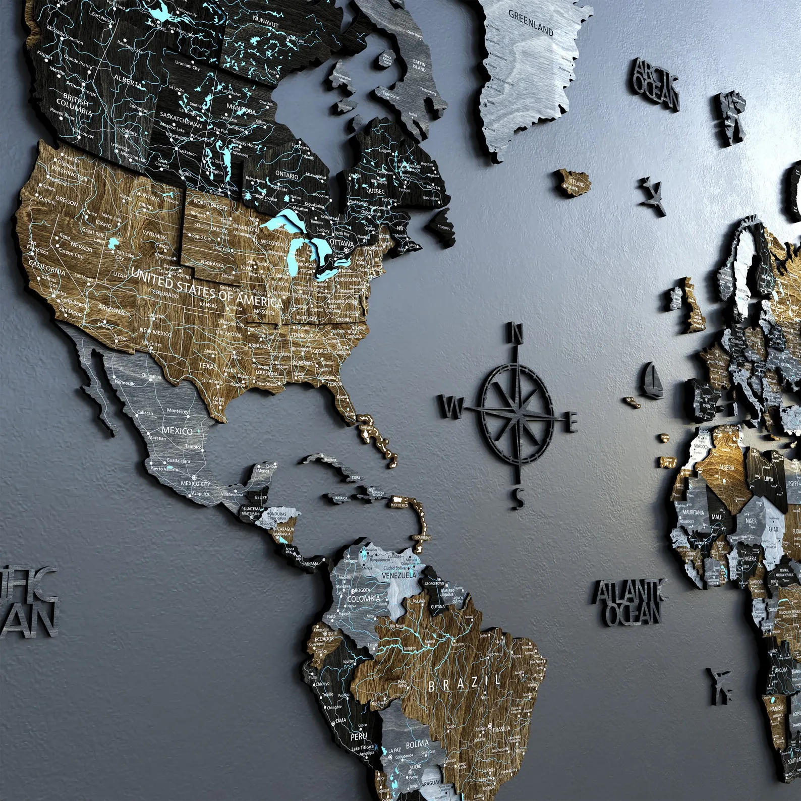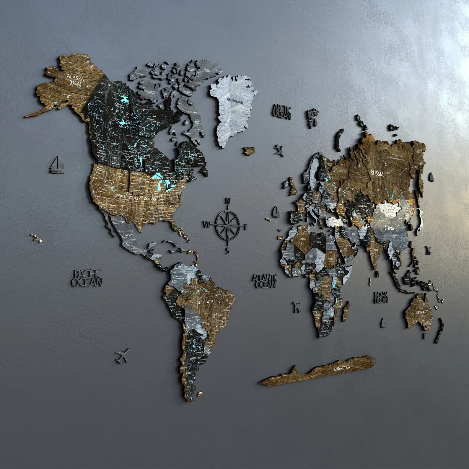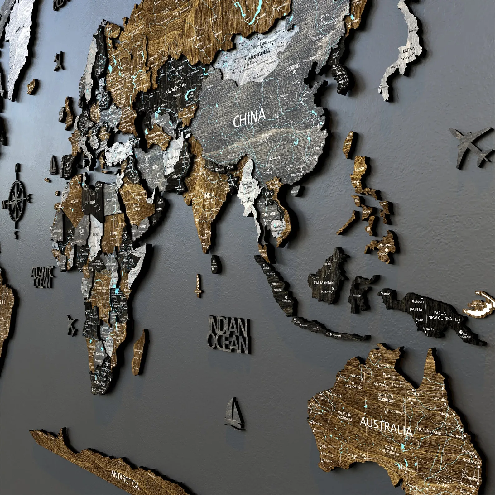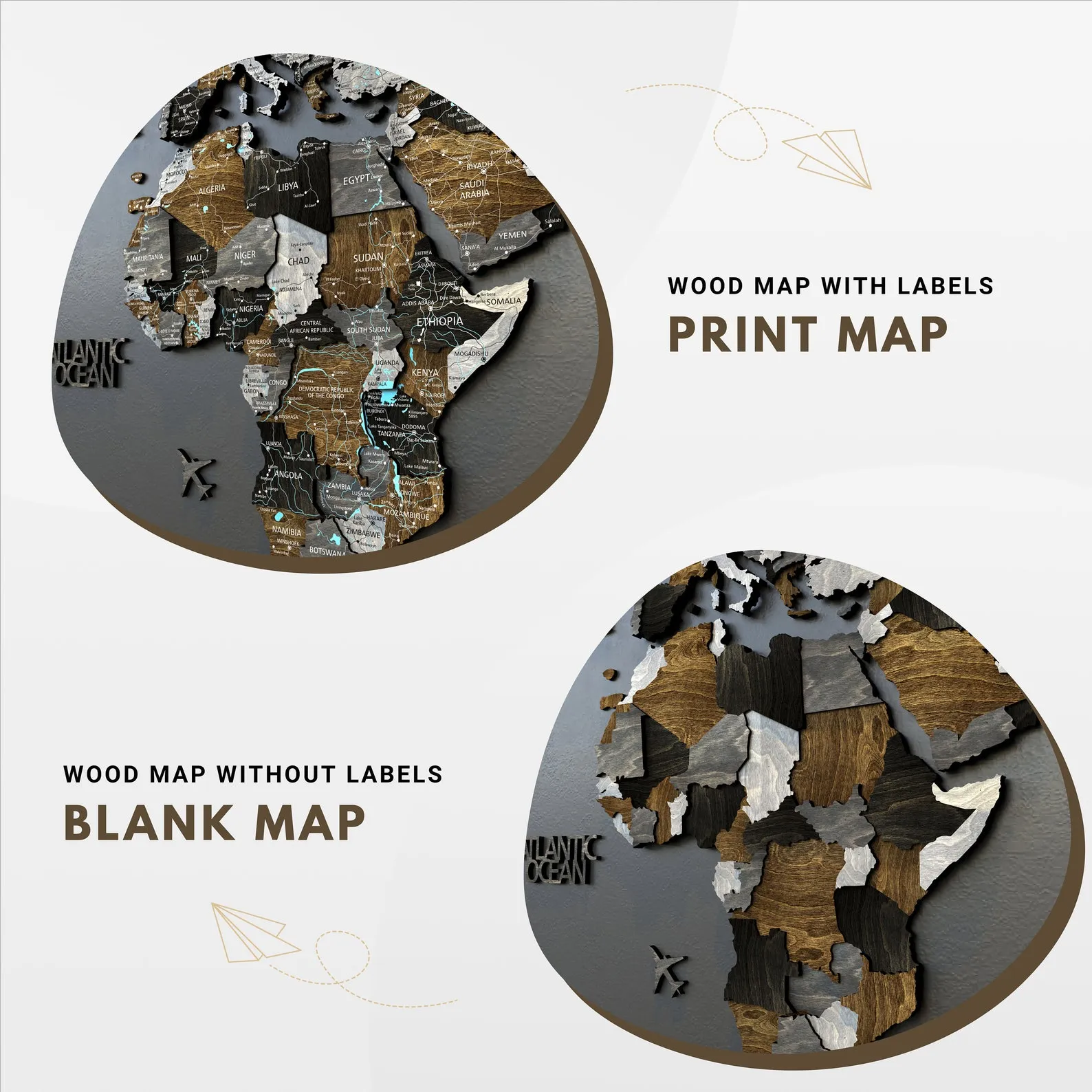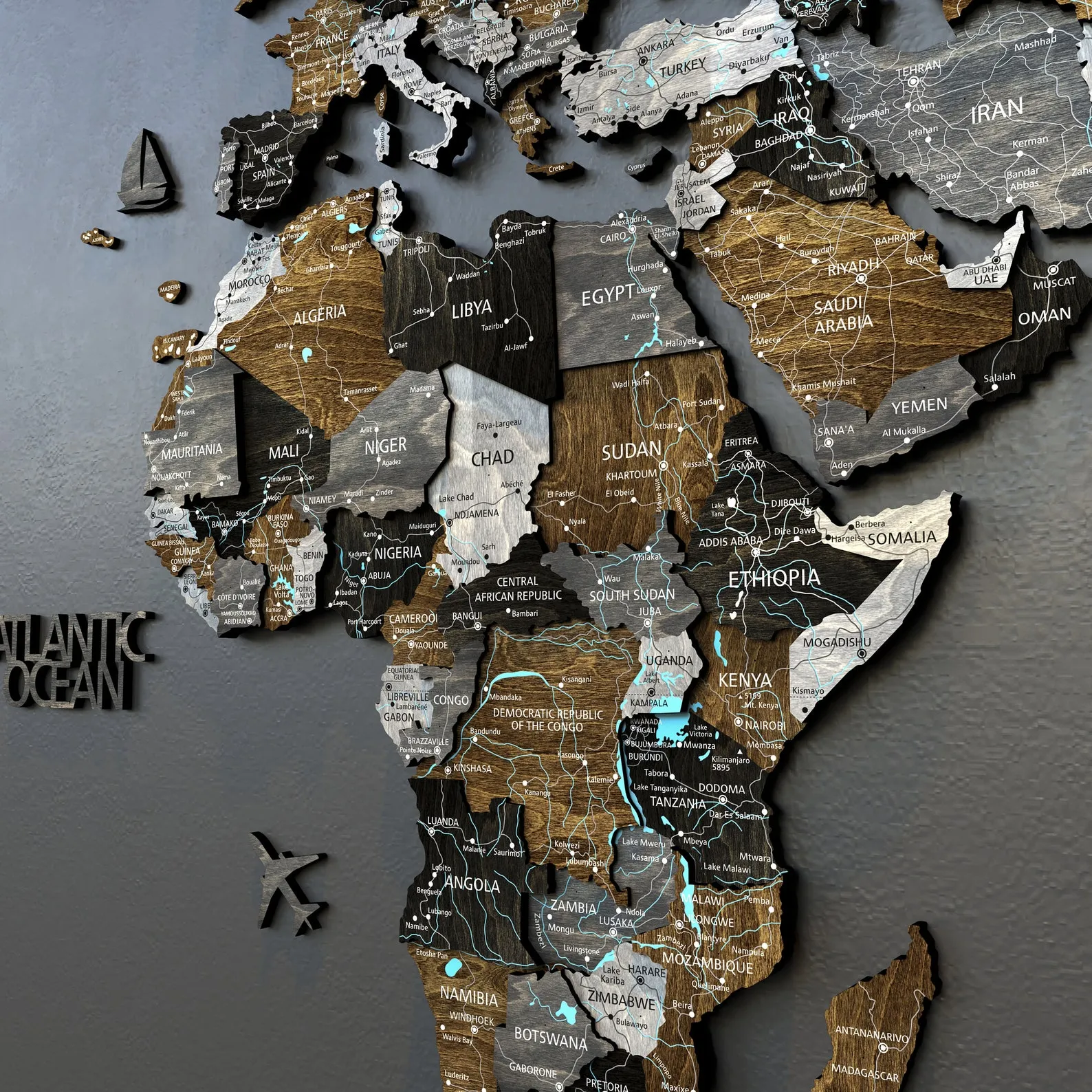 3D World Map Wall Art, Unique Birthday Gift 3D Wood Map, World Map Wall Art. Apartment Decor World Map with Countries.