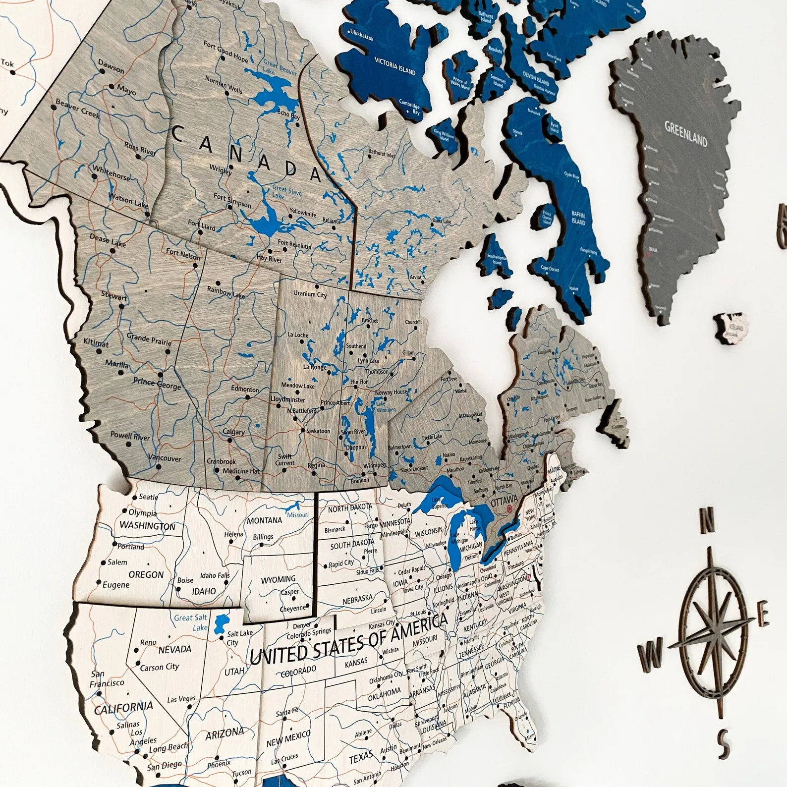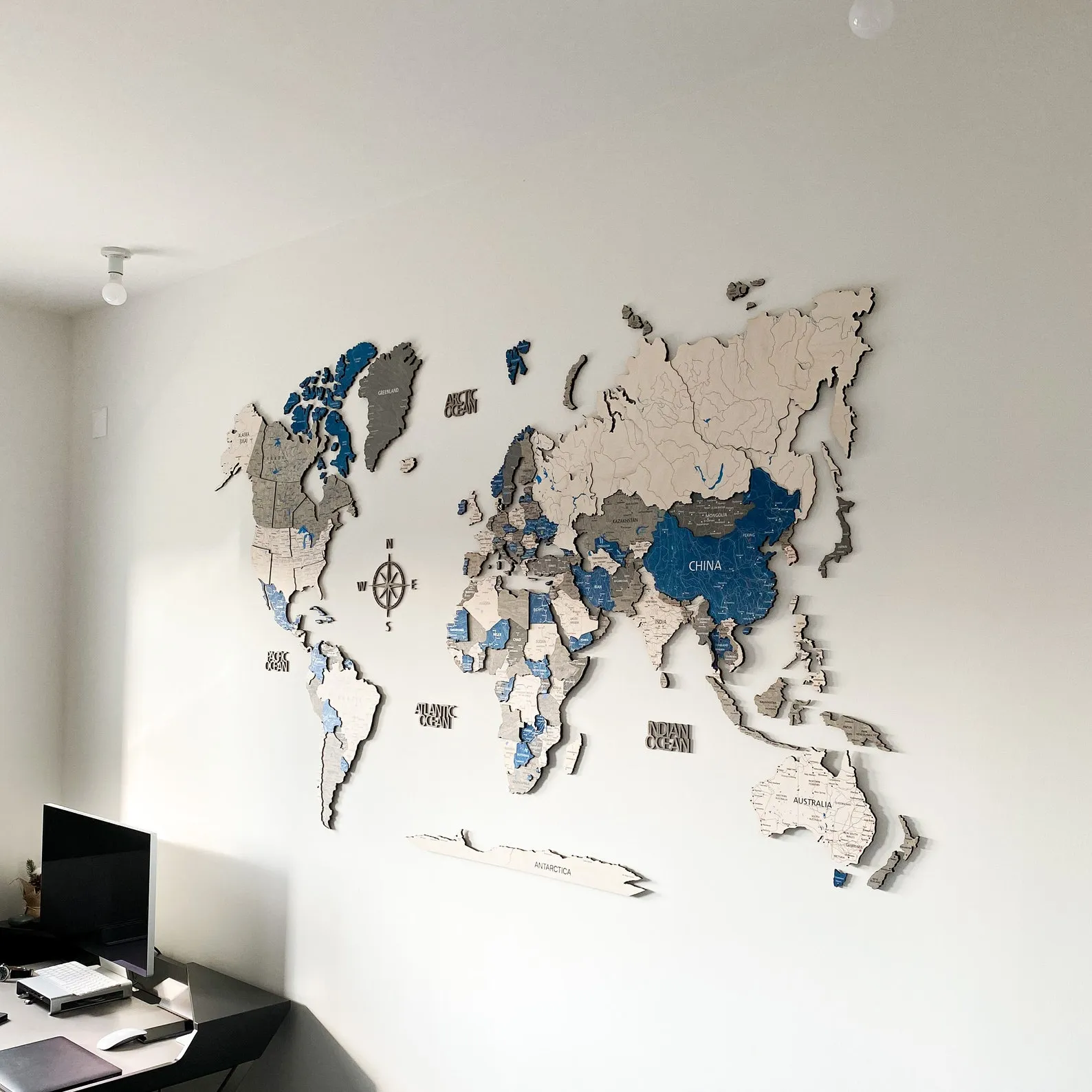 3D Wood World Map Wall Art Push Pins Housewarming Gift