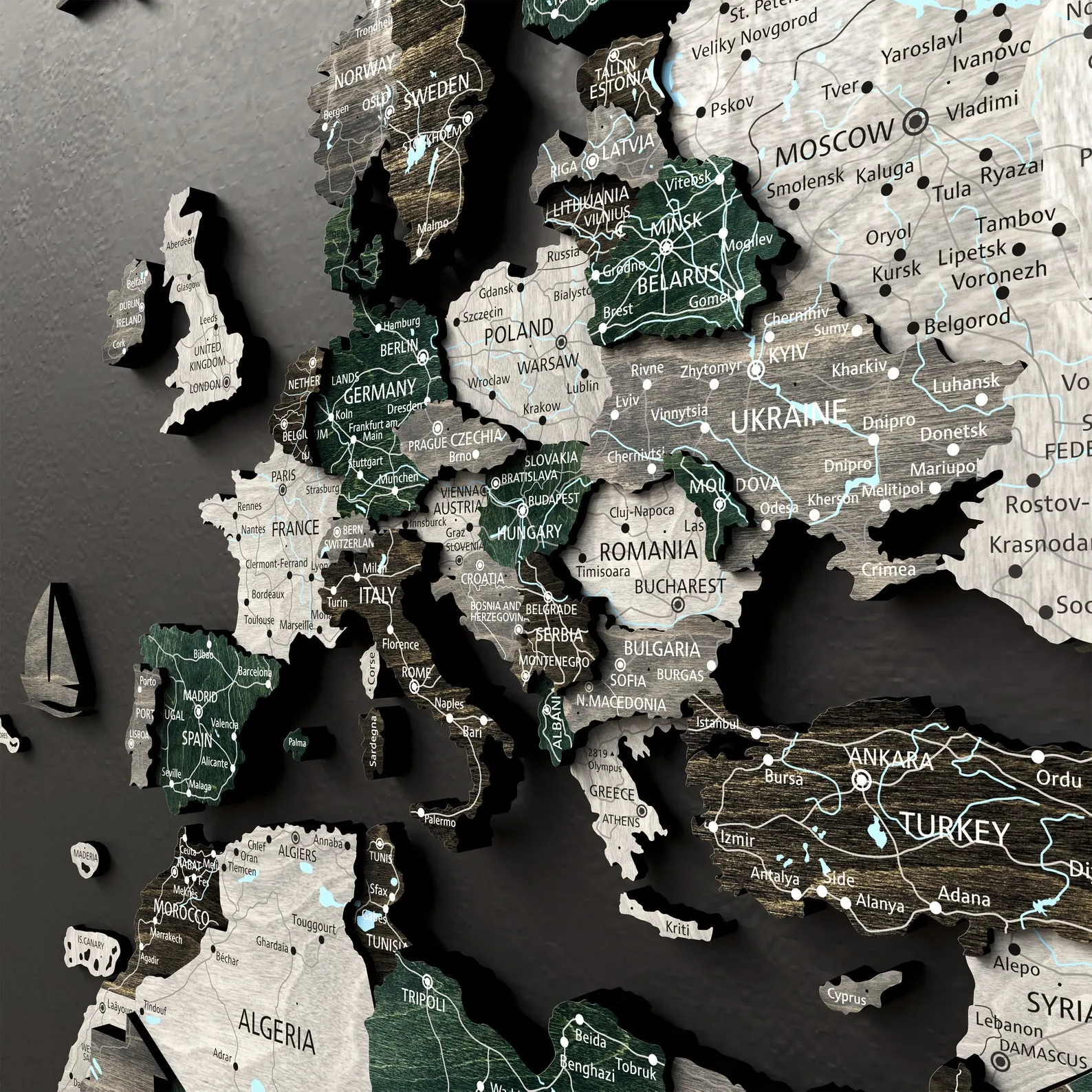 Choose the size of the map (example photo 8), the type of map, with or without inscriptions (example photo 7). Add extras to the world map in the form of national or transport pins (photo 9,10).