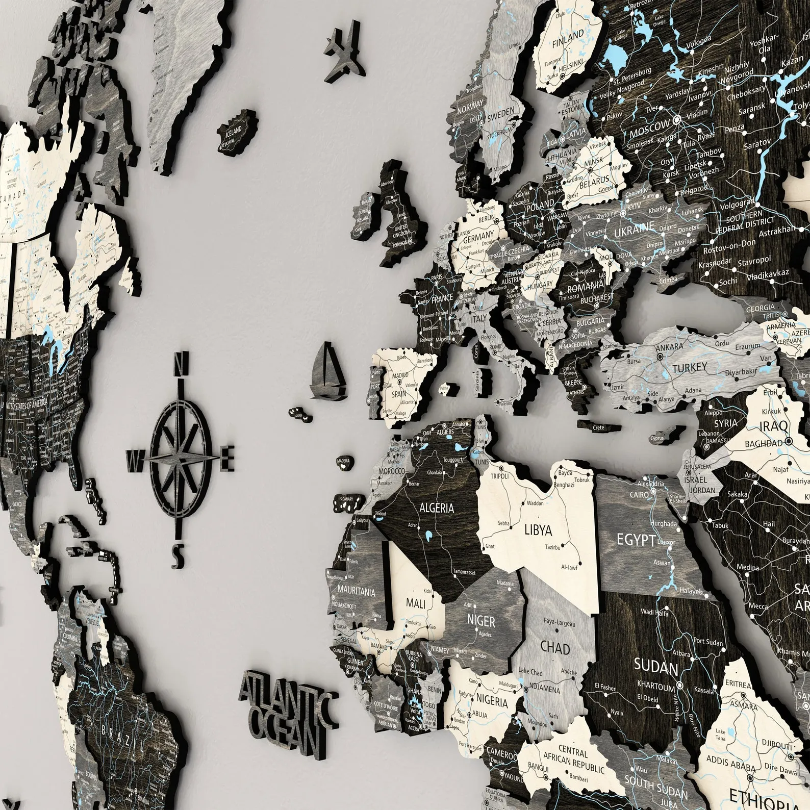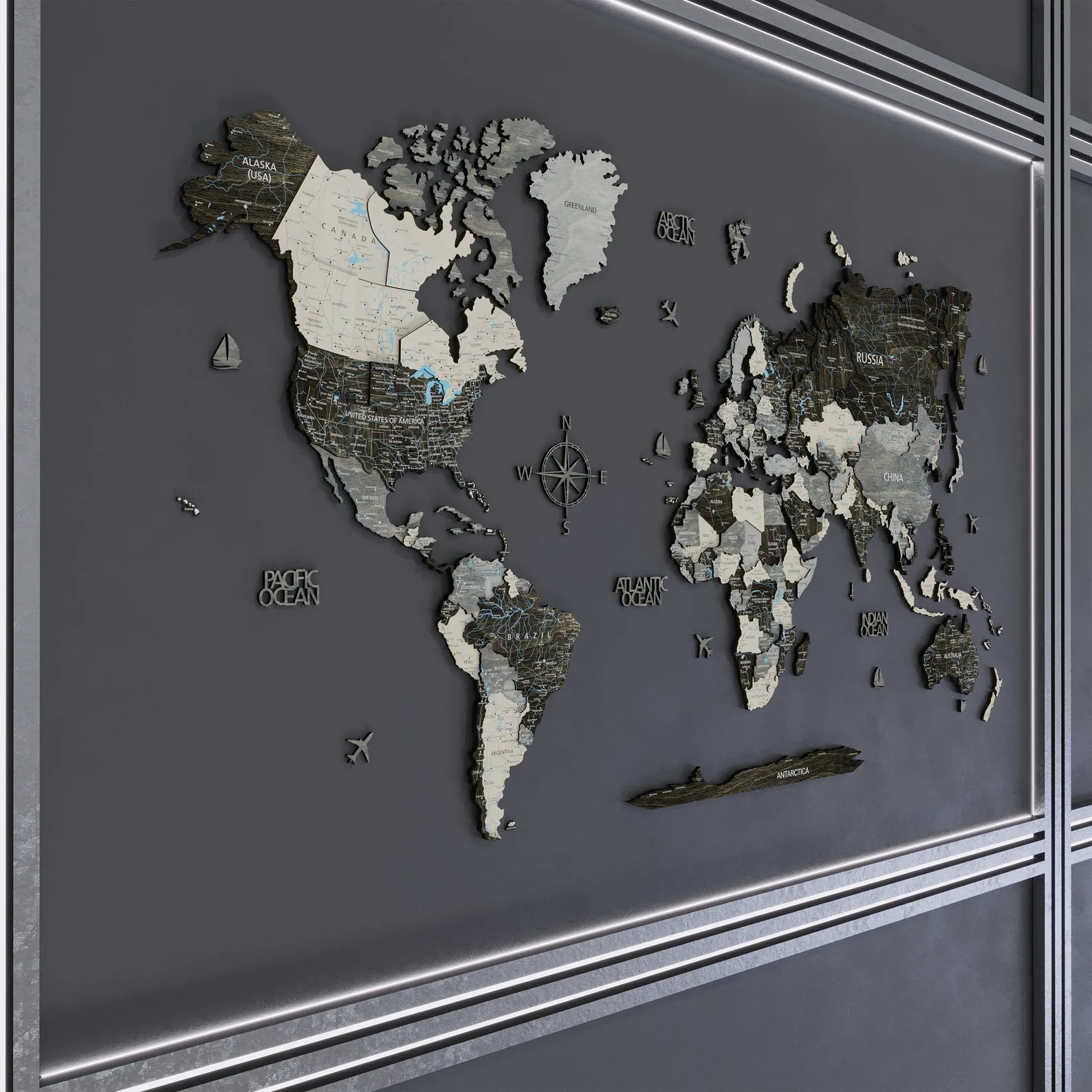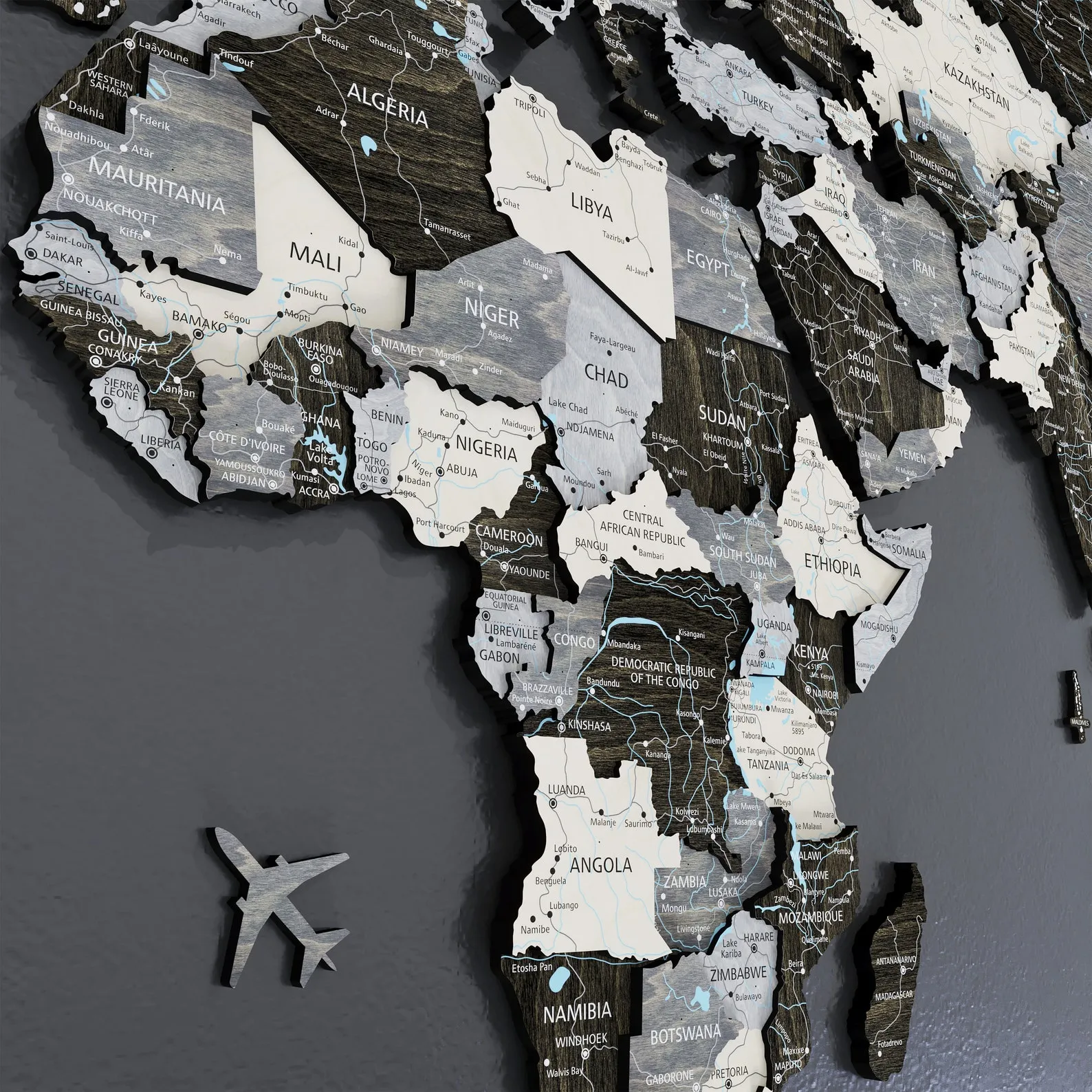 3D Wooden World Map Wall Art: Push Pin Travel Map