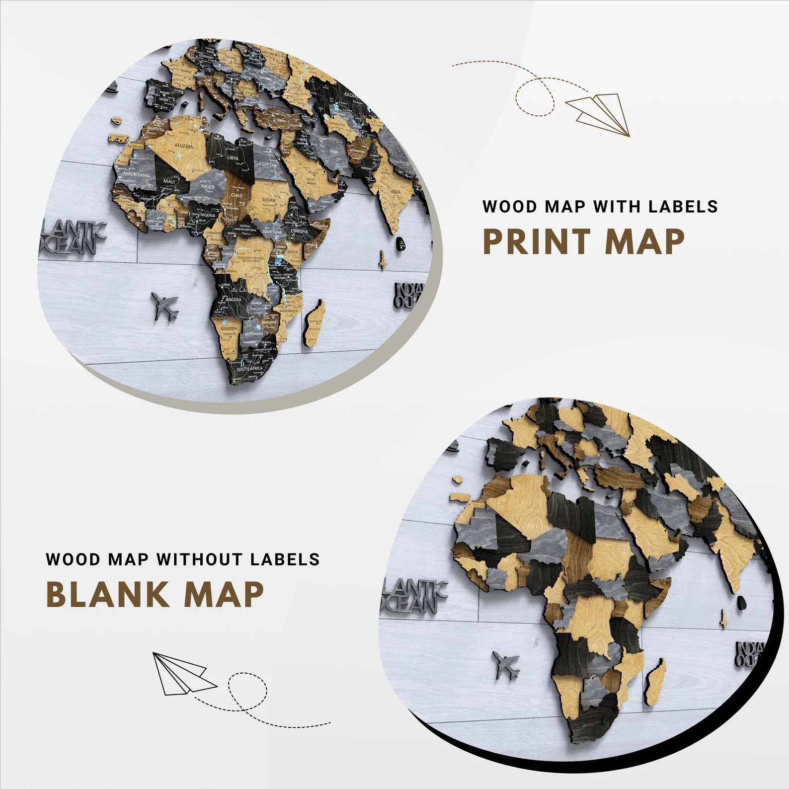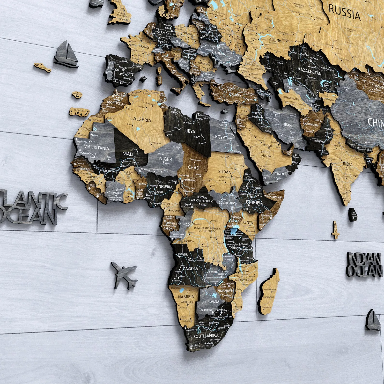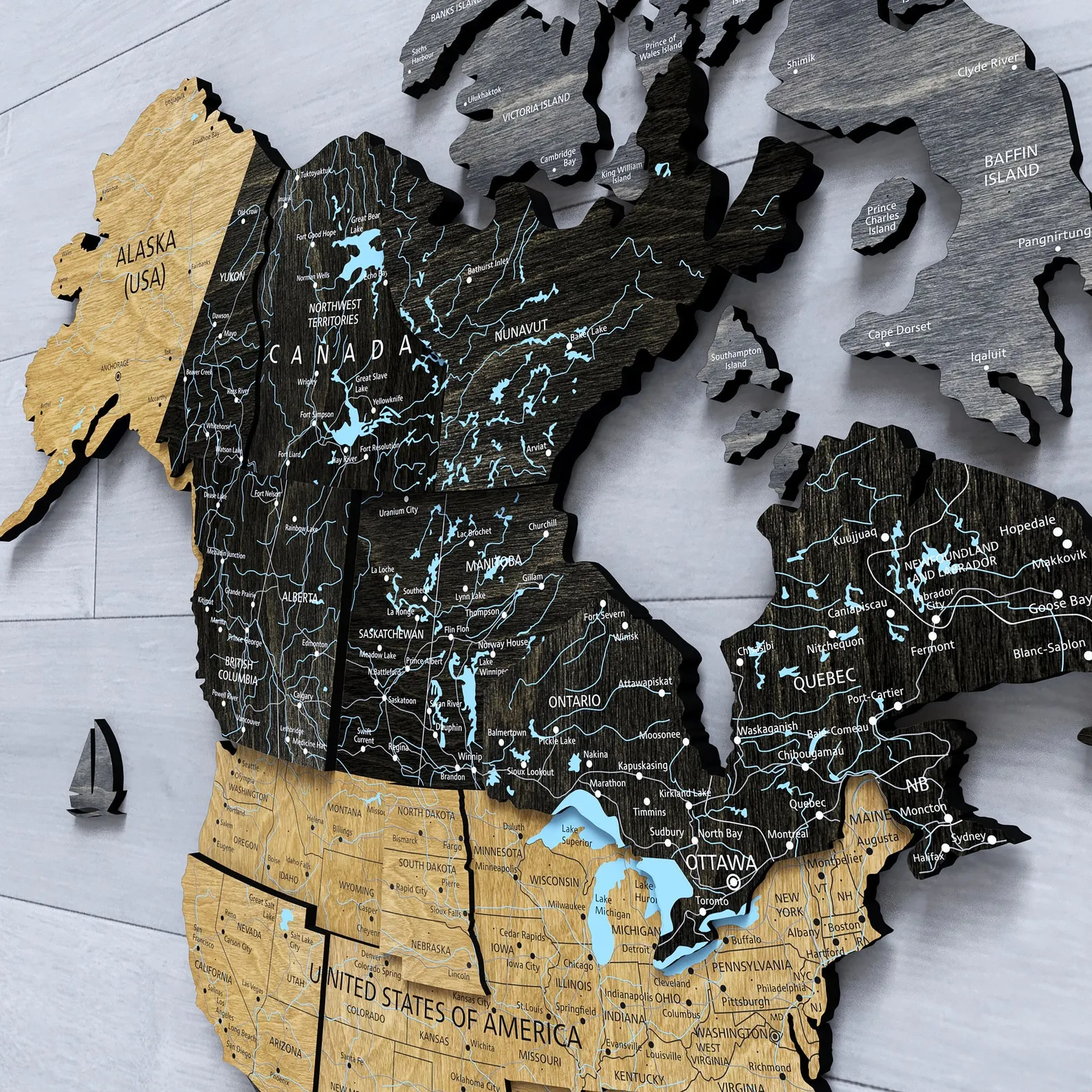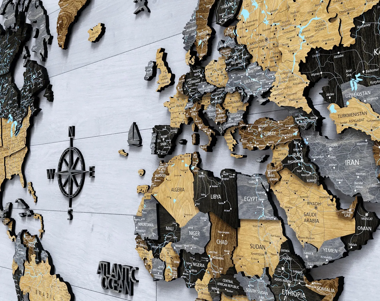 Detailed. Wood Map with detailed print.