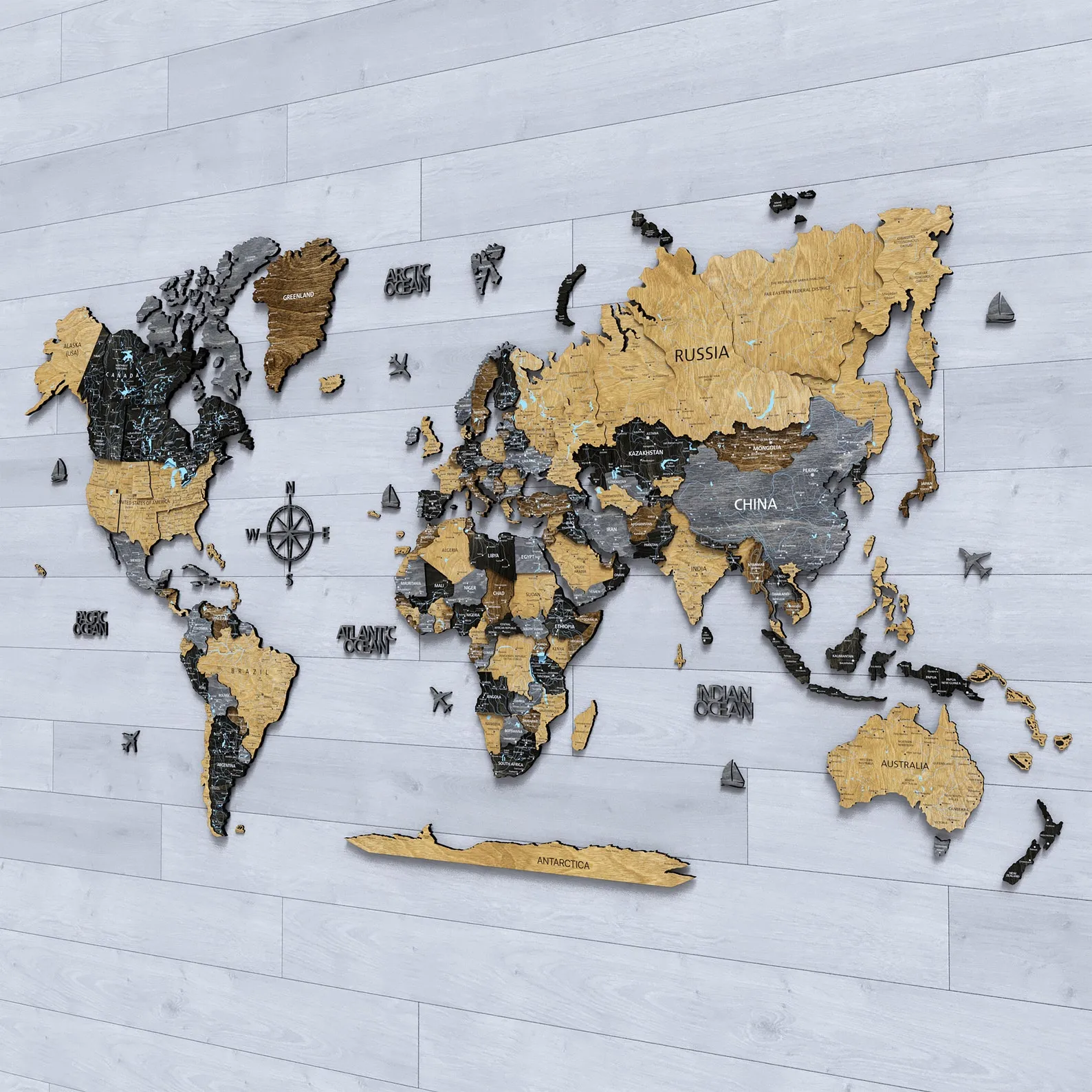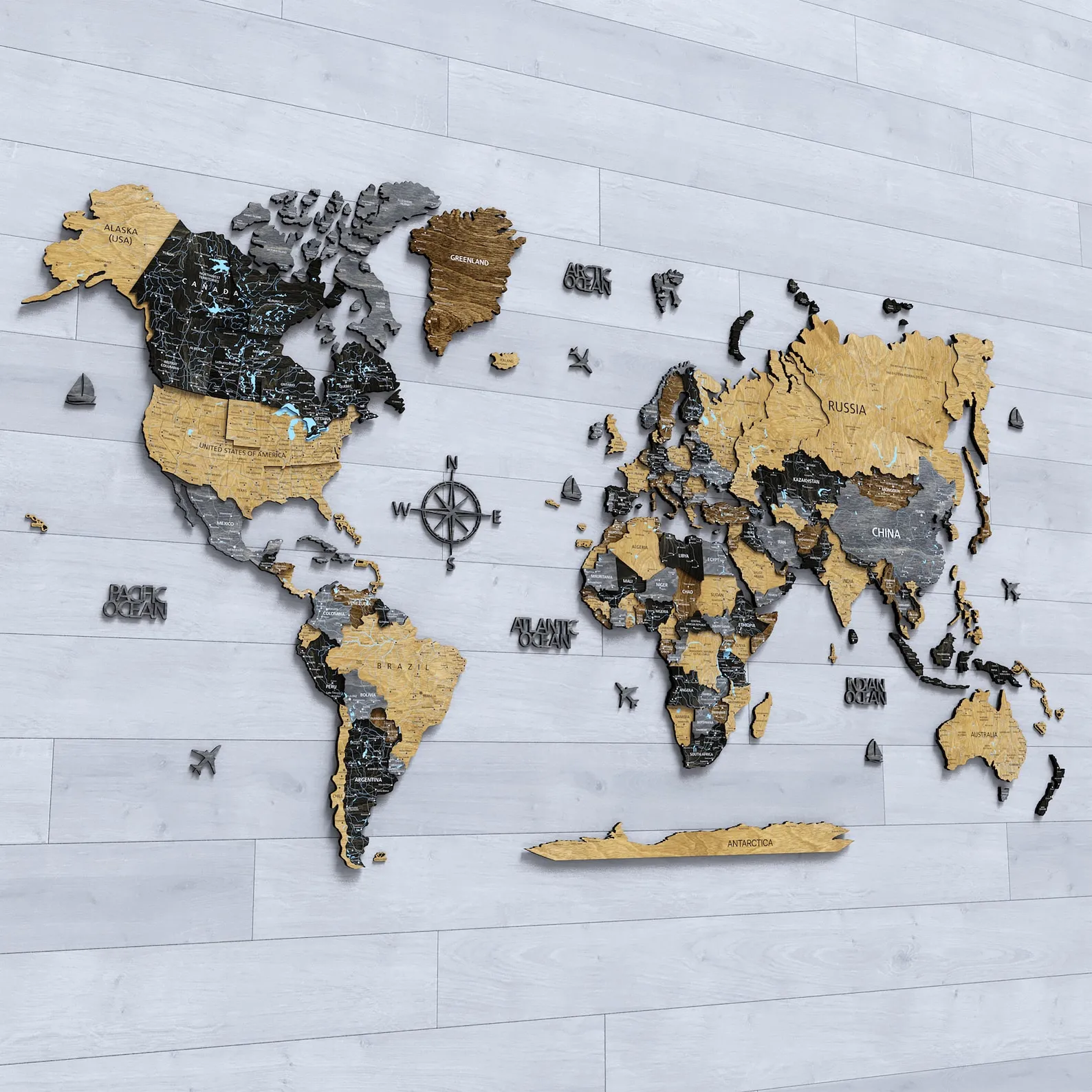 Premium 3D Wooden World Map Wall Art