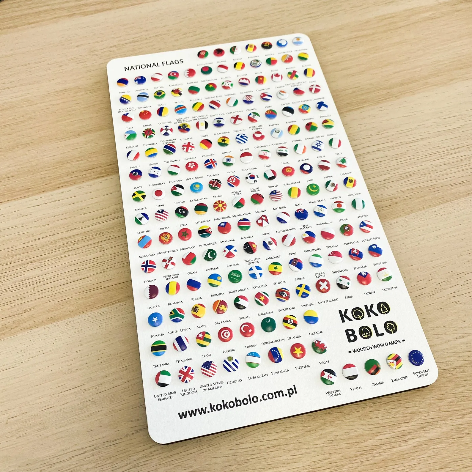 ? (Photo 9) – A set of country flags to mark places visited – 172 country flags on pins attached to the wooden tablet