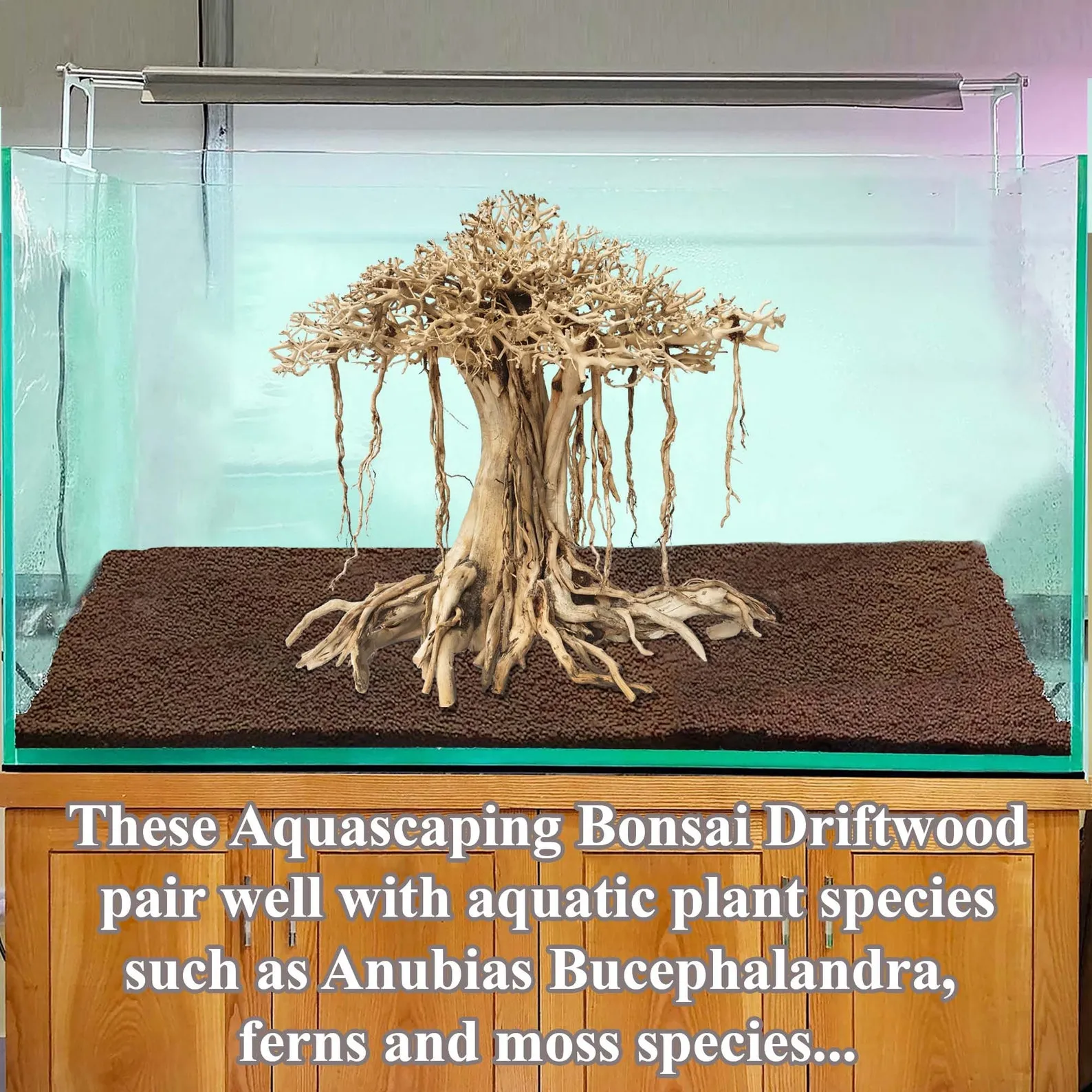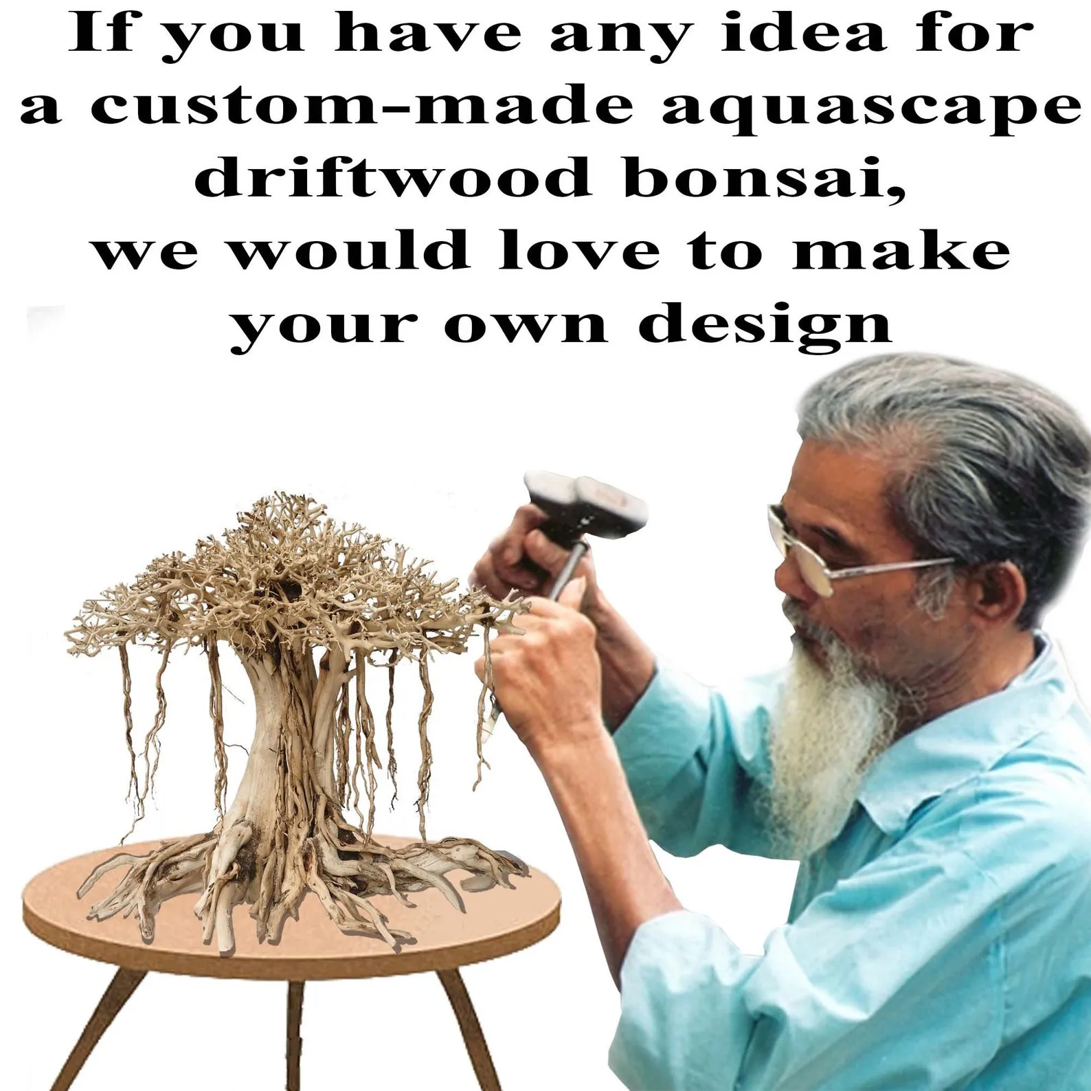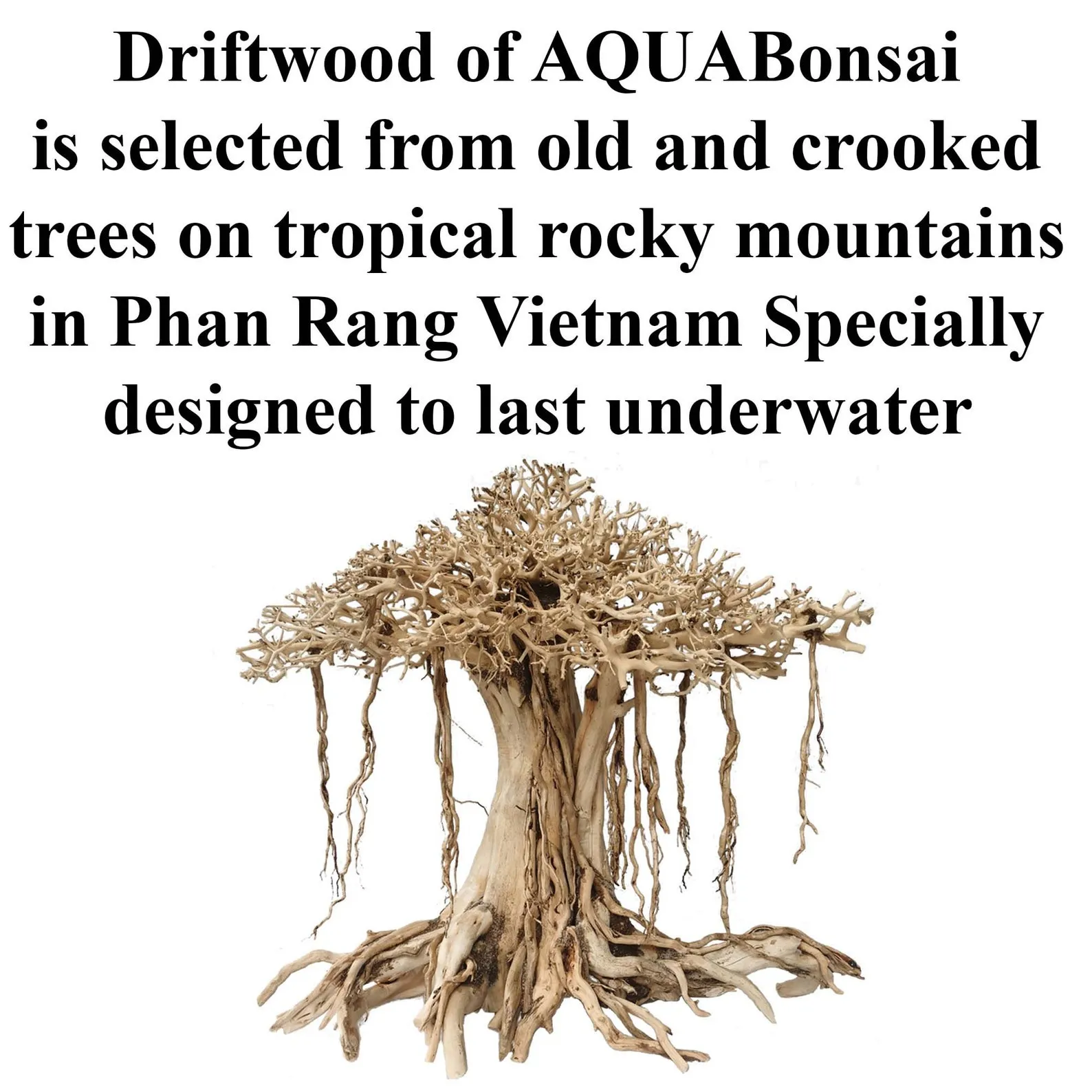 These Bonsai Driftwood Aquarium Decorations elevate regular fish/shrimps/plants tanks, making them more than just homes for your fish/shrimps. The tanks become statement pieces; beautiful miniaturized underwater forests to add an ethereal touch to your home. Fish tanks and terrariums are attention-grabbing itemsDriftwood is proud to carry unique and natural bonsai trees! These exciting product are made by hand from natural driftwood that is aquarium safe. Artisans create these underwater trees in a wide variety of shapes and sizes to fit almost all aquarium tanks. They?re versatile, perfect piece to create an instant aquascape layout.These underwater Aquarium Driftwood trees pair well with aquatic plant species such as Anubias, Bucephalandra, Ferns and aquatic moss species. Quite often, these aquatic plants are used to mimic the foliage found on natural bonsai trees.On the flip side, these Driftwood trees can be used to display an array of plants, aquatic or terrestrial such as tillandsia aka air plants or for coffee table decor and desk work…Drift wood Bonsai Aquascaping of AQUA Bonsai is carefully selected from hundreds of years old, crooked trees on tropical rocky mountains in Phan Rang Vietnam, and specially designed to last underwater for many many yearsTeam AquaBonsai is always happy to lend a hand, If you have any idea for a custom-made aquascape driftwood bonsai you see somewhere, we would love to see how we could turn them into a bonsai made just for you! Shoot us a DM on etsy, email, or send a pigeon. We?d love to hear from you and Have fun.NOTE:Our Aquascape Wood is a handmade item so please allow 1-2 inches ( with large piece ) error due to manual measurement. Thanks for your understanding.How to tied Moss to my Bonsai Driftwood ?Push moss into twigs or branches, these will be enough to hold the moss from floating away, placement of Bonsai Driftwood, Once the driftwood has been properly prepared, clean, and tied with your favourite moss. Carefully place the bonsai driftwood in your aquarium just as you designed