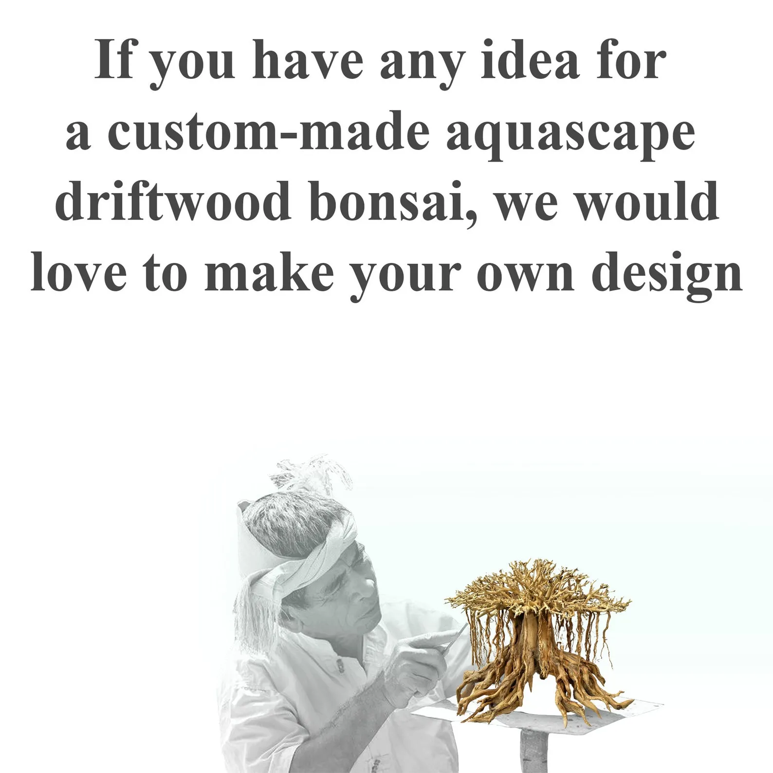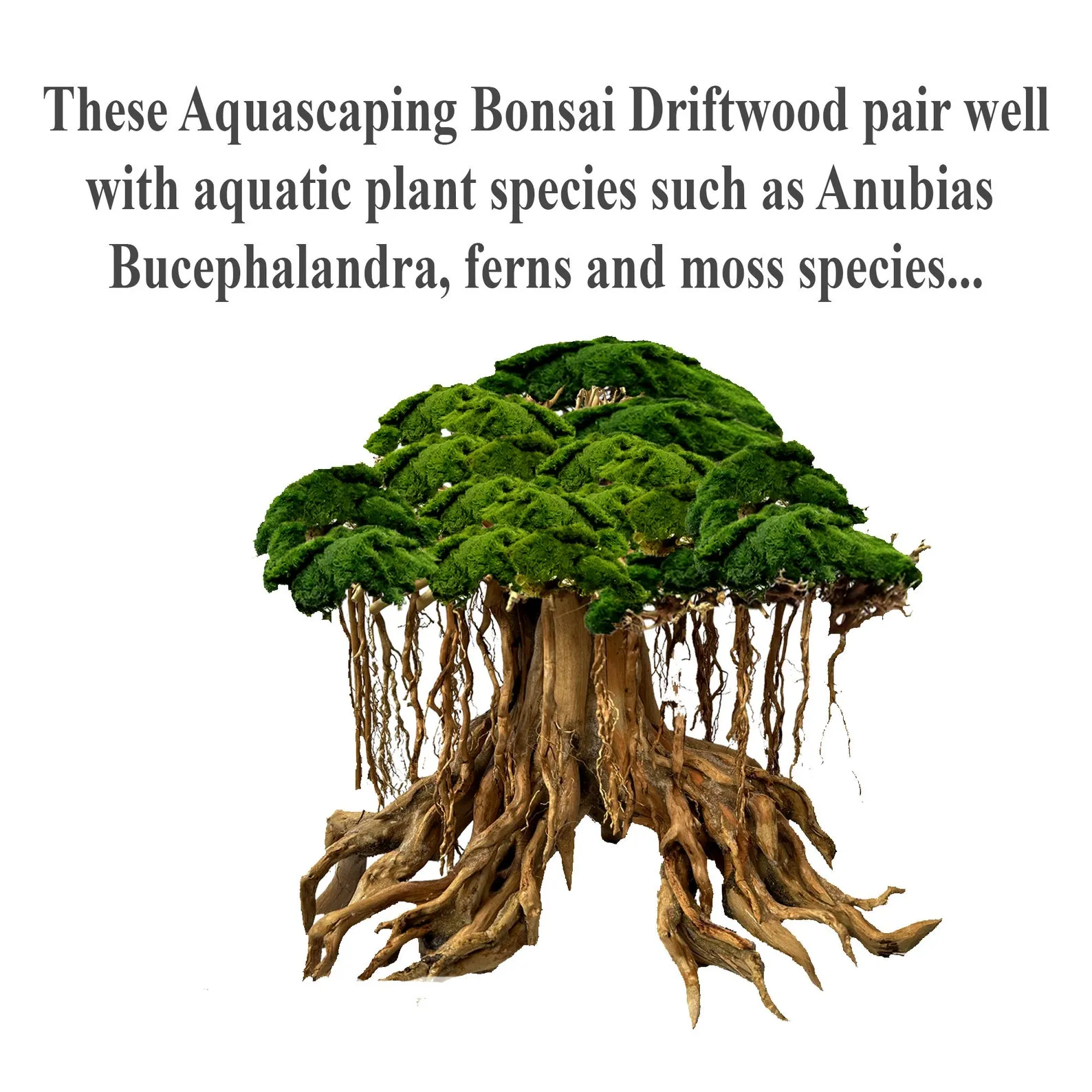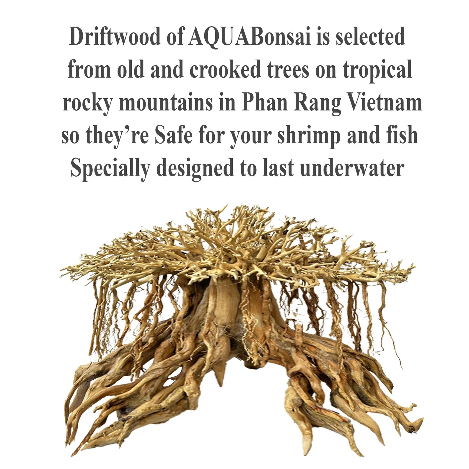 Bonsai driftwood aquarium tree is proud to carry unique and natural bonsai trees! These exciting product are made by hand from natural driftwood that is aquarium safe. Artisans create these underwater trees in a wide variety of shapes and sizes to fit almost all aquarium tanks. They?re versatile, perfect piece to create an instant aquascape layout.These unique Bonsai Driftwood decorations elevate regular fish/shrimps/plants tanks, making them more than just homes for your fish/shrimps. The tanks become statement pieces; beautiful miniaturized underwater forests to add an ethereal touch to your home. Fish tanks and terrariums are attention-grabbing itemsThese underwater Aquascape Bonsai Driftwood trees pair well with aquatic plant species such as Anubias, Bucephalandra, Ferns and aquatic moss species. Quite often, these aquatic plants are used to mimic the foliage found on natural bonsai trees.On the flip side, these Aquarium Driftwood trees can be used to display an array of plants, aquatic or terrestrial such as tillandsia aka air plants or for coffee table decor and desk work…Bonsai tree driftwood aquarium of AQUA Bonsai is carefully selected from hundreds of years old, crooked trees on tropical rocky mountains in Phan Rang Vietnam, and specially designed to last underwater for many many yearsTeam AquaBonsai is always happy to lend a hand, If you have any idea for a custom-made aquascape driftwood bonsai you see somewhere, we would love to see how we could turn them into a bonsai made just for you! Shoot us a DM on etsy, email, or send a pigeon. We?d love to hear from you and Have fun.NOTE:Our Aquascape Wood is a handmade item so please allow 1-2 inches ( with large piece ) error due to manual measurement. Thanks for your understanding.How to tied Moss to my Bonsai Driftwood ?Push moss into twigs or branches, these will be enough to hold the moss from floating away, placement of Bonsai Driftwood, Once the driftwood has been properly prepared, clean, and tied with your favourite moss. Carefully place the bonsai driftwood in your aquarium just as you designed.