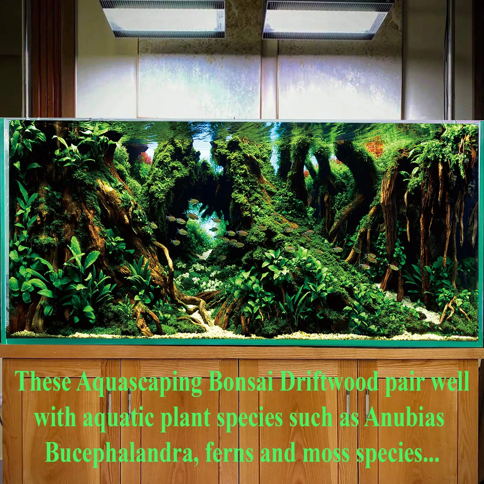 Bonsai driftwood art aquarium is proud to carry unique and natural bonsai trees! These exciting product are made by hand from natural driftwood that is aquarium safe. Artisans create these underwater trees in a wide variety of shapes and sizes to fit almost all aquarium tanks. They?re versatile, perfect piece to create an instant aquascape layout.These unique Aquascape Driftwood decorations elevate regular fish/shrimps/plants tanks, making them more than just homes for your fish/shrimps. The tanks become statement pieces; beautiful miniaturized underwater forests to add an ethereal touch to your home. Fish tanks and terrariums are attention-grabbing itemsAquascape drift wood bonsai tree pair well with aquatic plant species such as Anubias, Bucephalandra, Ferns and aquatic moss species. Quite often, these aquatic plants are used to mimic the foliage found on natural bonsai trees.On the flip side, these Aquarium Driftwood can be used to display an array of plants, aquatic or terrestrial such as tillandsia aka air plants or for coffee table decor and desk work…Aquascape drift wood bonsai tree for fish tank of Aqua Bonsai is carefully selected from hundreds of years old, crooked trees on tropical rocky mountains in Phan Rang Vietnam, and specially designed to last underwater for many many yearsTeam AquaBonsai is always happy to lend a hand, If you have any idea for a custom-made aquascape driftwood bonsai you see somewhere, we would love to see how we could turn them into a bonsai made just for you! Shoot us a DM on etsy, email, or send a pigeon. We?d love to hear from you and Have fun.SHIPPING: You DO NOT have to pay any additional Import Tax. The shipping company will delivery to your houseWith small item ( below 400$ include shipping cost ). We will ship by USPS/Singapore post or VietNam Post and the delivery time is approx 9-13 working daysWith the large item ( more than 400$ include shipping cost ). We will ship by UPS or DHL and the delivery time is approx 5-8 working daysNOTE:Our Bonsai driftwood is a handmade item so please allow 1-2 inches ( with large piece ) error due to manual measurement. Thanks for your understanding.How to tied Moss to my Bonsai Driftwood ?Push moss into twigs or branches, these will be enough to hold the moss from floating away, placement of Bonsai Driftwood, Once the driftwood has been properly prepared, clean, and tied with your favourite moss. Carefully place the bonsai driftwood in your aquarium just as you designed.