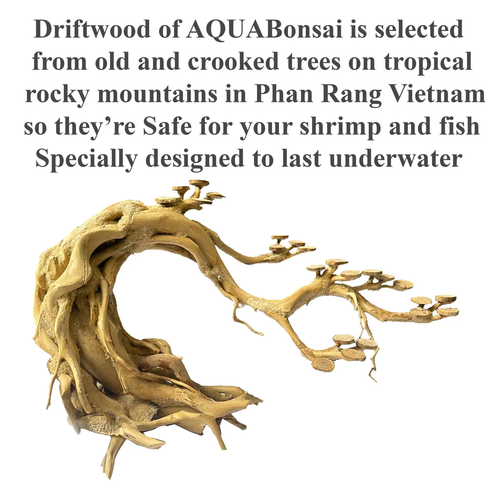 Bonzai tree driftwood is proud to carry unique and natural bonsai trees! These exciting product are made by hand from natural driftwood that is aquarium safe. Artisans create these underwater trees in a wide variety of shapes and sizes to fit almost all aquarium tanks. They?re versatile, perfect piece to create an instant aquascape layout.These unique aquarium bonsai tree aquascape elevate regular fish/shrimps/plants tanks, making them more than just homes for your fish/shrimps. The tanks become statement pieces; beautiful miniaturized underwater forests to add an ethereal touch to your home. Fish tanks and terrariums are attention-grabbing itemsDriftwood aquarium tree pair well with aquatic plant species such as Anubias, Bucephalandra, Ferns and aquatic moss species. Quite often, these aquatic plants are used to mimic the foliage found on natural bonsai trees.On the flip side, these Aquarium Driftwood can be used to display an array of plants, aquatic or terrestrial such as tillandsia aka air plants or for coffee table decor and desk work…Aquarium plants for fish tank of Aqua Bonsai is carefully selected from hundreds of years old, crooked trees on tropical rocky mountains in Phan Rang Vietnam, and specially designed to last underwater for many many yearsTeam AquaBonsai is always happy to lend a hand, If you have any idea for a custom-made aquascape driftwood bonsai you see somewhere, we would love to see how we could turn them into a bonsai made just for you! Shoot us a DM on etsy, email, or send a pigeon. We?d love to hear from you and Have fun.SHIPPING: *** You DO NOT have to pay any additional Import Tax. The shipping company will delivery to your house*** With small item ( below 400$ include shipping cost ). We will ship by USPS/Singapore post or VietNam Post and the delivery time is approx 9-13 working days*** With the large item ( more than 400$ include shipping cost ). We will ship by UPS or DHL and the delivery time is approx 5-8 working daysNOTE:Our Bonsai driftwood is a handmade item so please allow 1-2 inches ( with large piece ) error due to manual measurement. Thanks for your understanding.How to tied Moss to my Bonsai Driftwood ?Push moss into twigs or branches, these will be enough to hold the moss from floating away, placement of Bonsai Driftwood, Once the driftwood has been properly prepared, clean, and tied with your favourite moss. Carefully place the bonsai driftwood in your aquarium just as you designed!