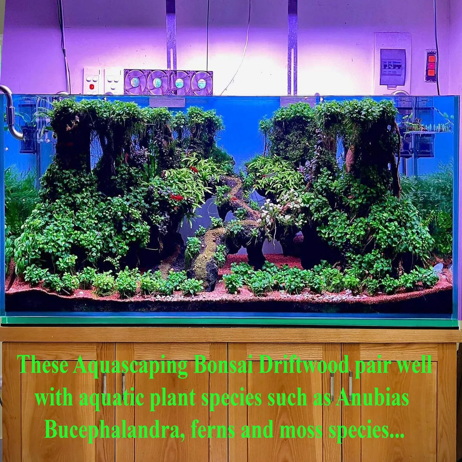 Bonsai Aquascaping Driftwood decorations elevate regular fish/shrimps/plants tanks, making them more than just homes for your fish/shrimps. The tanks become statement pieces; beautiful miniaturized underwater forests to add an ethereal touch to your home. Fish tanks and terrariums are attention-grabbing items