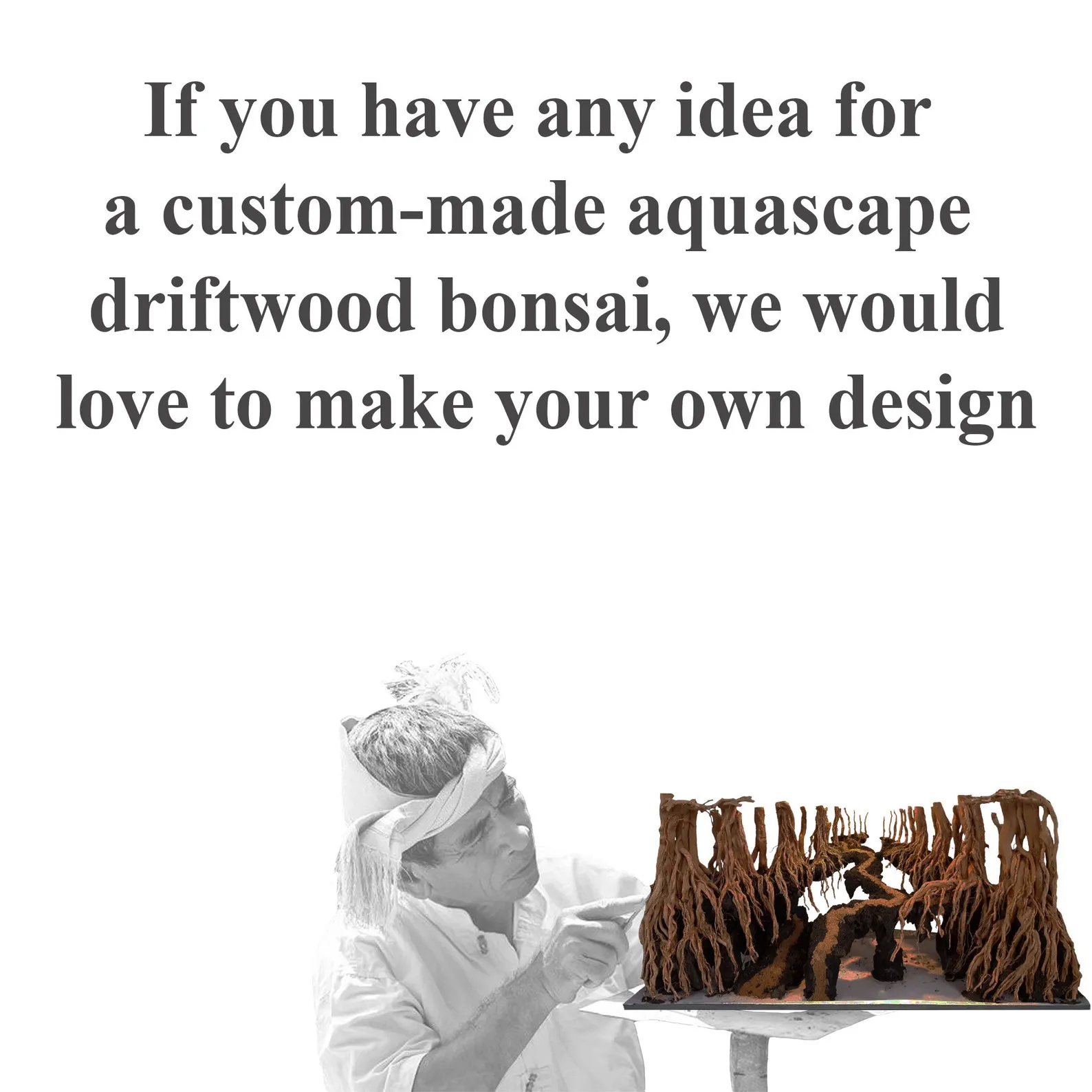 Team AquaBonsai is always happy to lend a hand, If you have any idea for a custom-made aquascape driftwood bonsai you see somewhere, we would love to see how we could turn them into a bonsai made just for you! Shoot us a DM on etsy, email, or send a pigeon. We?d love to hear from you and Have fun.