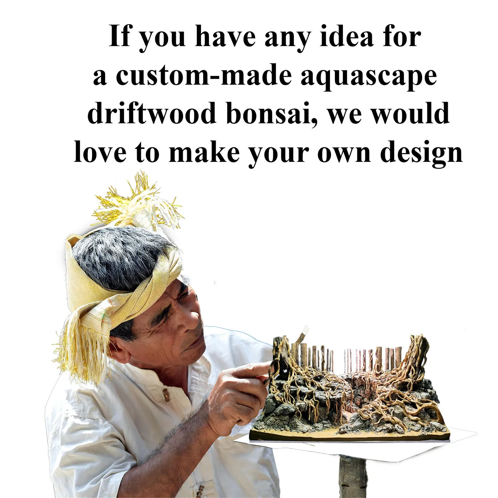 Aquascaping Driftwood Bonsai takes pride in offering a distinctive collection of handcrafted, natural bonsai trees. Each unique piece is meticulously created from aquarium-safe driftwood, ensuring a stunning and safe addition to aquatic environments. Crafted by skilled artisans, these underwater trees come in a variety of shapes and sizes, catering to nearly all aquarium tanks and providing a versatile and instant aquascape layout.The Bonsai Aquascape wood decorations transcend the traditional role of fish, shrimp, and plant tanks. They transform ordinary tanks into statement pieces, resembling beautiful miniature underwater forests that bring an ethereal touch to any home. These aquariums and terrariums become captivating focal points.Aquarium Driftwood Bonsai Trees complement various aquatic plant species, including Anubias, Bucephalandra, ferns, and aquatic moss, often mimicking the foliage found on natural bonsai trees. Conversely, these Aquascape Aquarium creations can be utilized to showcase an array of plants, both aquatic and terrestrial, such as tillandsia (air plants), serving as exquisite coffee table decor or desk ornaments.The driftwood used in Aqua Bonsai is meticulously chosen from centuries-old, twisted trees in the tropical rocky mountains of Phan Rang, Vietnam. Specially designed to endure underwater conditions for many years, these pieces bring a touch of nature to aquariums.Team AquaBonsai is always ready to assist. If you have a concept for a custom-made aquascape driftwood bonsai, they welcome your ideas. Whether through Etsy, email, or carrier pigeon, reach out to them; they are eager to turn your vision into a unique bonsai crafted just for you.SHIPPING:No additional Import Tax is required; the shipping company handles the delivery to your doorstep.For small items (under $400, including shipping costs), shipping is via USPS/Singapore Post or VietNam Post, with an approximate delivery time of 9-13 working days.Large items (over $400, including shipping costs) are shipped via UPS or DHL, with an estimated delivery time of 5-8 working days.NOTE:Due to the handmade nature of Bonsai driftwood, there may be a 1-2 inch error (with large pieces) in measurements. Your understanding is appreciated.Explore more similar items here: https://rg.link/hwk8Iwr