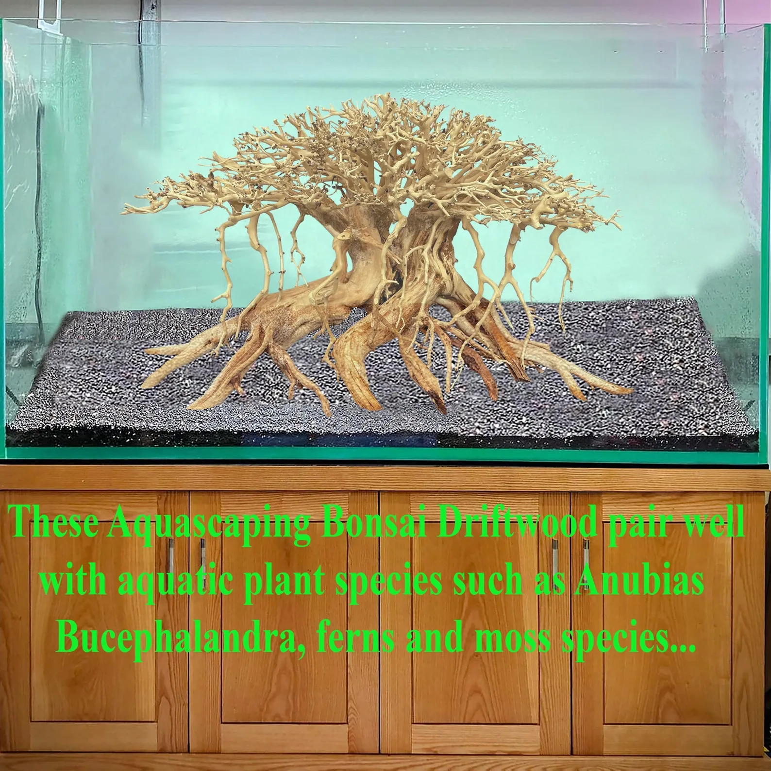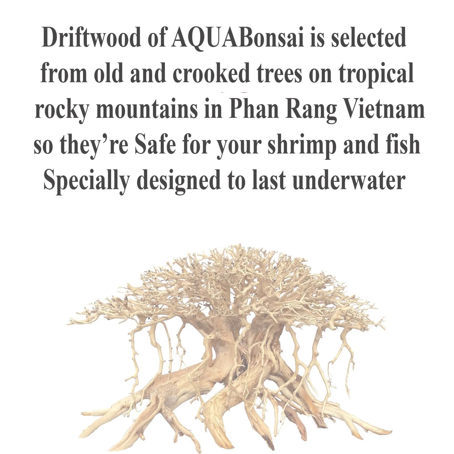 These Bonsai Driftwood Aquarium Decorations elevate regular fish/shrimps/plants tanks, making them more than just homes for your fish/shrimps. The tanks become statement pieces; beautiful miniaturized underwater forests to add an ethereal touch to your home. Fish tanks and terrariums are attention-grabbing itemsDriftwood is proud to carry unique and natural bonsai trees! These exciting product are made by hand from natural driftwood that is aquarium safe. Artisans create these underwater trees in a wide variety of shapes and sizes to fit almost all aquarium tanks. They?re versatile, perfect piece to create an instant aquascape layout.These underwater Aquarium Driftwood trees pair well with aquatic plant species such as Anubias, Bucephalandra, Ferns and aquatic moss species. Quite often, these aquatic plants are used to mimic the foliage found on natural bonsai trees.On the flip side, these Driftwood trees can be used to display an array of plants, aquatic or terrestrial such as tillandsia aka air plants or for coffee table decor and desk work…Drift wood Bonsai Aquascaping of AQUA Bonsai is carefully selected from hundreds of years old, crooked trees on tropical rocky mountains in Phan Rang Vietnam, and specially designed to last underwater for many many yearsTeam AquaBonsai is always happy to lend a hand, If you have any idea for a custom-made aquascape driftwood bonsai you see somewhere, we would love to see how we could turn them into a bonsai made just for you! Shoot us a DM on etsy, email, or send a pigeon. We?d love to hear from you and Have fun.NOTE:Our Aquascape Wood is a handmade item so please allow 1-2 inches ( with large piece ) error due to manual measurement. Thanks for your understanding.How to tied Moss to my Bonsai Driftwood ?Push moss into twigs or branches, these will be enough to hold the moss from floating away, placement of Bonsai Driftwood, Once the driftwood has been properly prepared, clean, and tied with your favourite moss. Carefully place the bonsai driftwood in your aquarium just as you designed