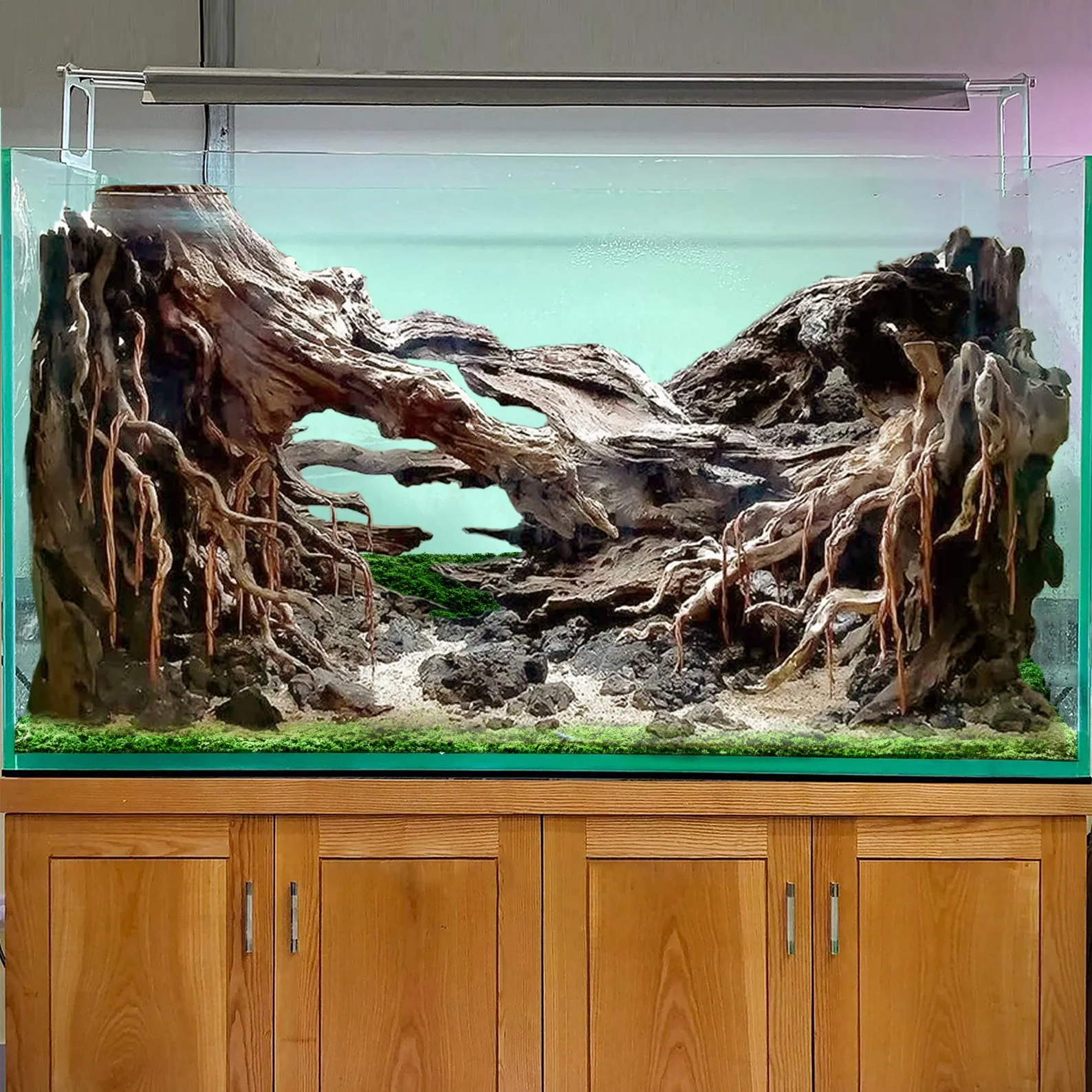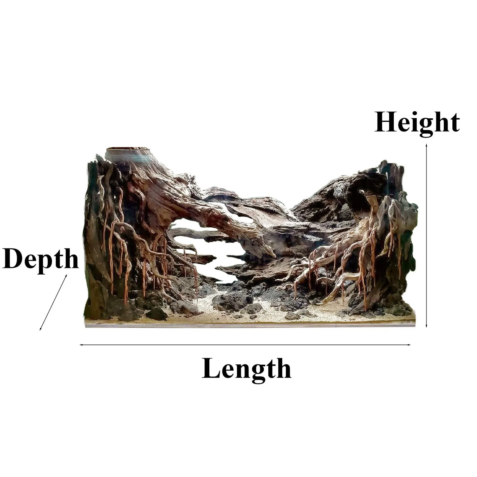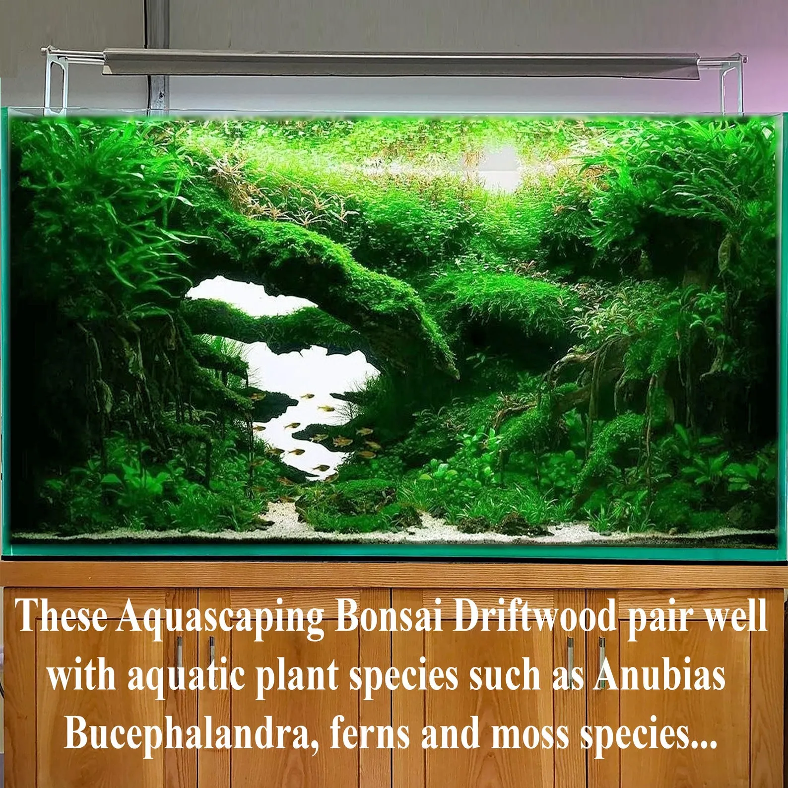 Transform your aquarium into a mesmerizing underwater oasis with our driftwood aquascape. Each piece is meticulously chosen to serve as more than just an aquarium decoration; it becomes a focal point, creating a landscape aquarium that mirrors the beauty of nature. The driftwood stumps, in particular, offer a distinctive touch, providing large aquarium caves and shelters for your fish to explore and seek refuge.