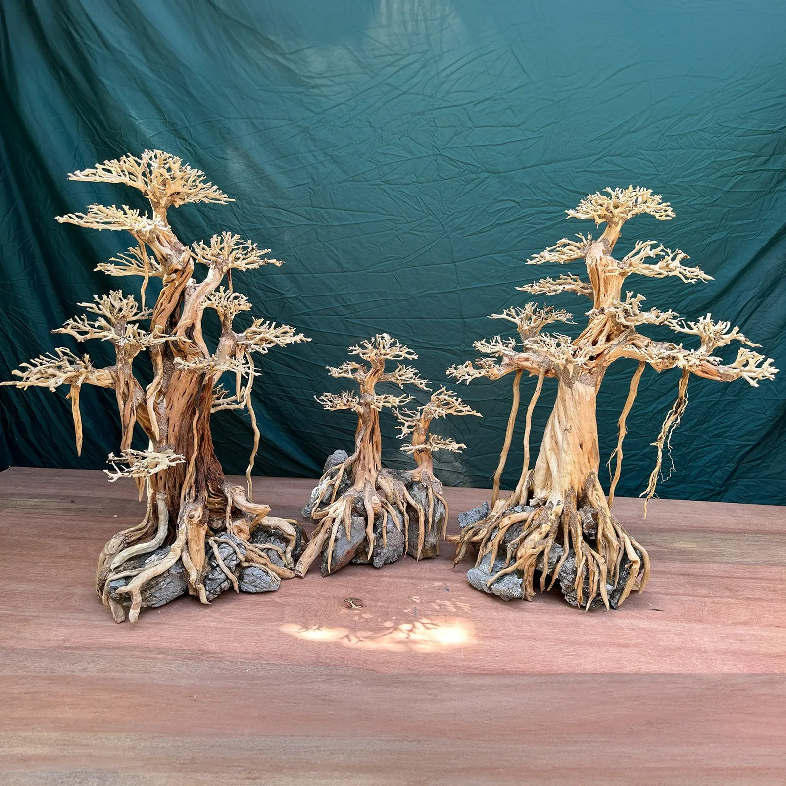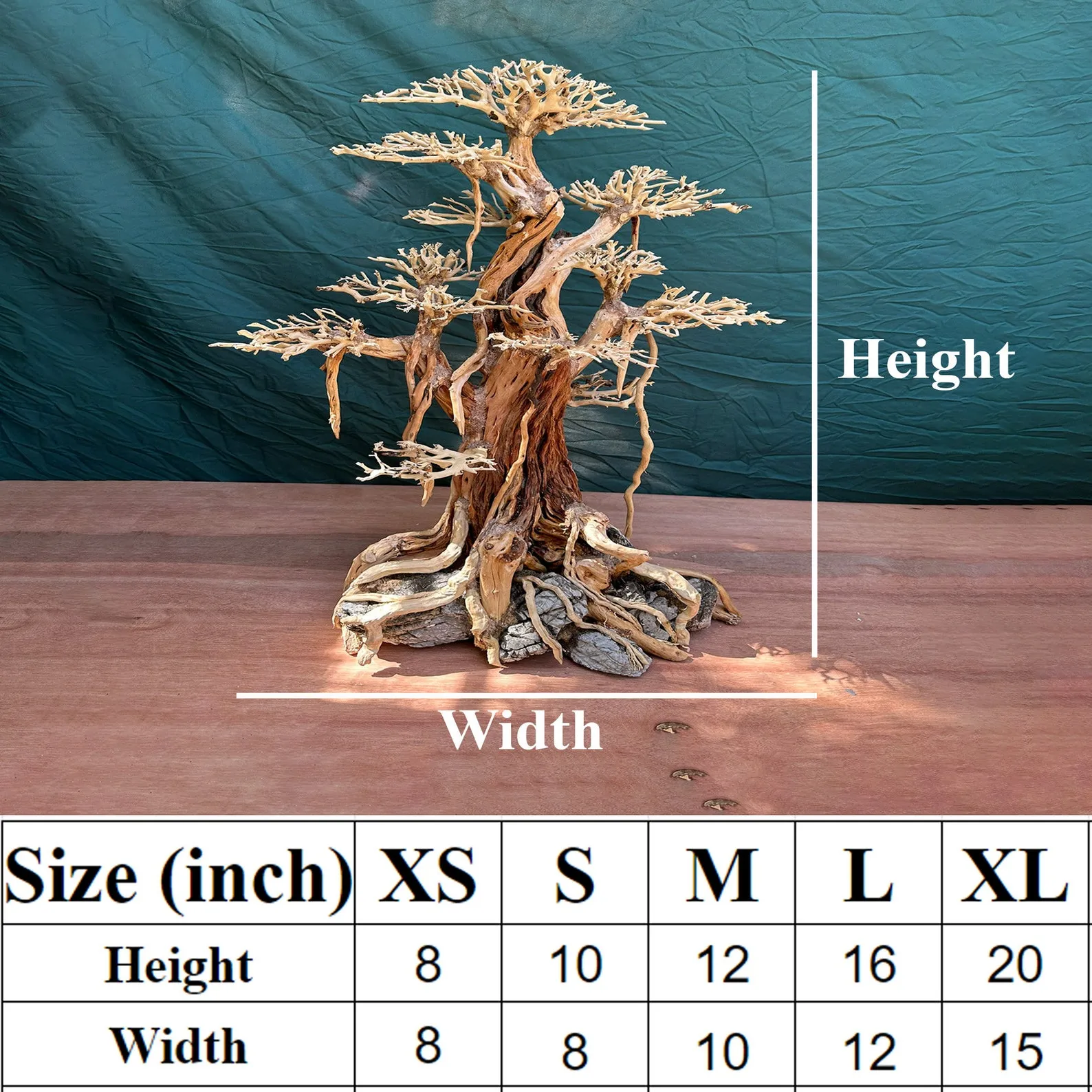 Our exquisite bonsai aquascape aquarium driftwood stump, a stunning centerpiece for your aquatic oasis. Handcrafted with meticulous attention to detail, this enchanting piece combines the natural beauty of driftwood with the art of drift wood aquarium centerpiece to create a truly unique and captivating decor item for your aquarium.At its core, this masterpiece is a carefully selected driftwood piece, shaped and sculpted to resemble a cave-like structure. The negative space aquascape design technique is expertly employed, allowing for the creation of fascinating nooks and crannies within the wood and aquarium rock, offering a harmonious blend of open spaces and intricate textures. This balance not only enhances the aesthetics of your aquarium but also provides shelter and hiding spots for your aquatic pets.This driftwood aquarium cave doubles as a bonsai driftwood decor, infusing your aquatic haven with a touch of Zen and tranquility. Its versatile design allows it to seamlessly integrate into various aquarium styles, from freshwater planted tanks to biotope setups, providing a focal point that effortlessly elevates your overall aquascape.As a standout product in the Etsy market, our aquarium driftwood large is a testament to the creativity and skill of our artisans. It is a one-of-a-kind piece that will surely be the envy of fellow aquarists and art enthusiasts alike. With its elegant and distinct presence, it makes for a remarkable addition to your personal collection or a thoughtful gift for any aquarium enthusiast.Transform your aquarium into a captivating underwater world with our bonzai driftwood quarium aquascape. Experience the beauty of negative space aquascaping and allow the artistry of our handmade bonsai driftwood decor to enhance the serenity of your aquatic realm.Team Aqua Bonsai is always happy to lend a hand, If you have any idea for a custom-made aquascape driftwood bonsai you see somewhere, we would love to see how we could turn them into a bonsai made just for you! Shoot us a DM on etsy, email, or send a pigeon. We?d love to hear from you and Have fun.