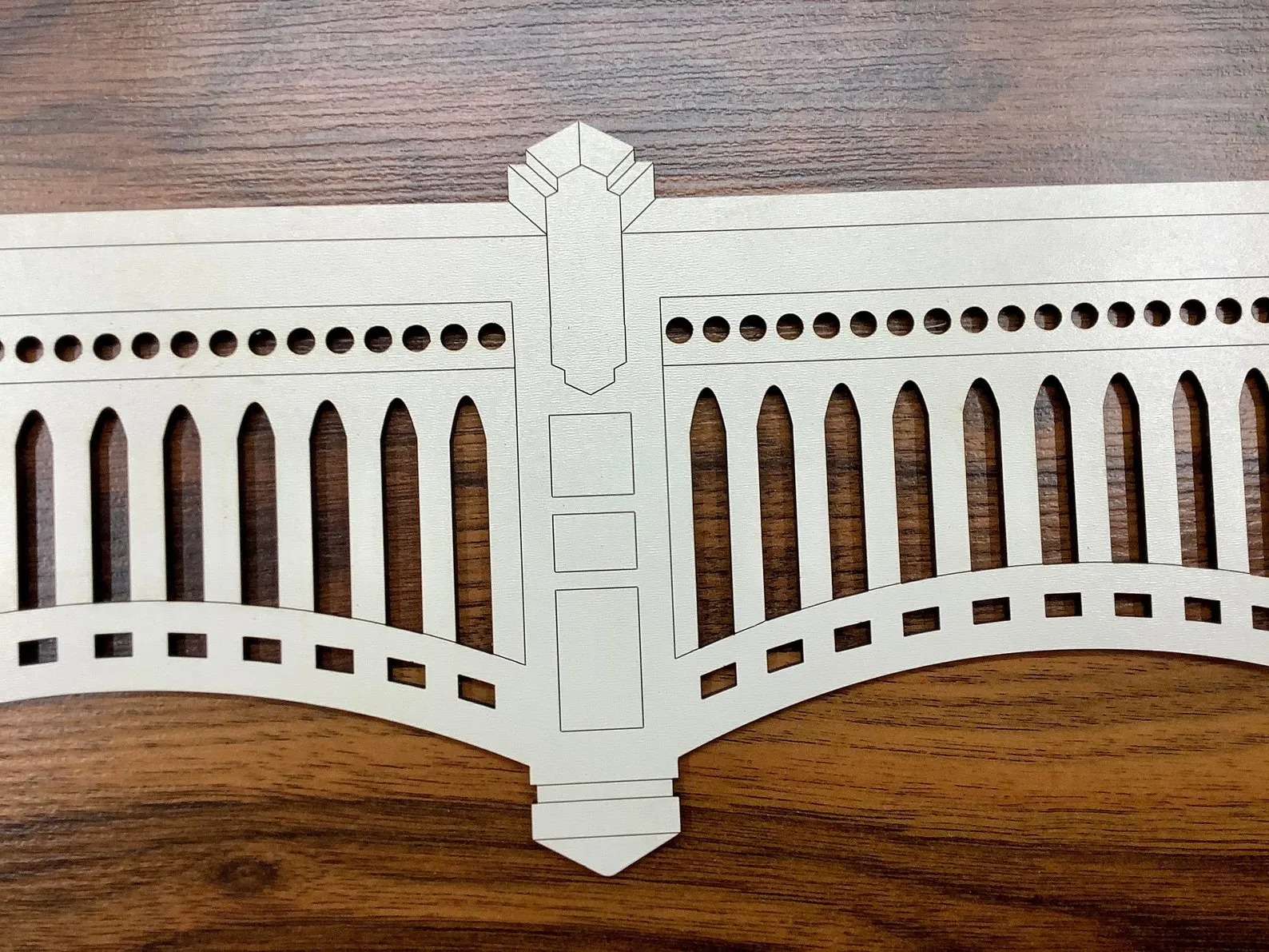 We have been making premium baseball stadium facades from ?? thick cast white acrylic for many years. We also make a solid wood version, typically oak. These are beautiful and 100% accurate with regards to scale. IMPORTANT NOTE:WHEN PLACING YOUR ORDER PLEASE LET US KNOW IF: You plan to string the facades together (all on the same wall) or hang any of them separately(Around any corners/different parts of the room). It will make a difference in the post placement. IF WE DO NOT HAVE A RESPONSE FROM YOU IN 2 DAYS TIME WE WILL MAKE THEM AS IF THE WILL ALL BE HUNG ON THE SAME WALL (STRING THEM TOGETHER).Some people love the idea but don?t have the budget for the premium models.So, I am pleased to offer this economy model to our lineup. It is made from a white hardboard material, 1/8? thick, called Eucatile. It?s a pressed wood product typically but used for walls. It?s cost effective ( about 40% cheaper than the premium acrylic models) but laser cut to the same exact specs as our premium models. It looks really good! It is for indoor use only as this material does not like to get wet.Each section is to scale and contains the exact number of slots and holes as the original facade of old baseball stadiums. We have lasered some details on the facade as you will see in the pics. We will provide some double sided foam tape for mounting and also a couple NY logos made from excess material under the arches.There are 3 standard sizes available. Please select one with your order. If you need a non standard size, please contact me and we can make to your specs40? long x 5.2? high (as measured by post height)72? long x 7? high82? long x 10.6? high It is very important that if you are ordering more than 1 fa?ade that you tell me if they will be hung separately or as one long string. It makes a difference in post placement.Typically we will custom make these to your exact length and come as close as possible to the scale you desire. (as determined by post height). Contact me with your needs. There is no upcharge for custom lengths and scales.These are all custom made in our Florida shop. Please contact me at DJ51 [!at] aol.com custom work