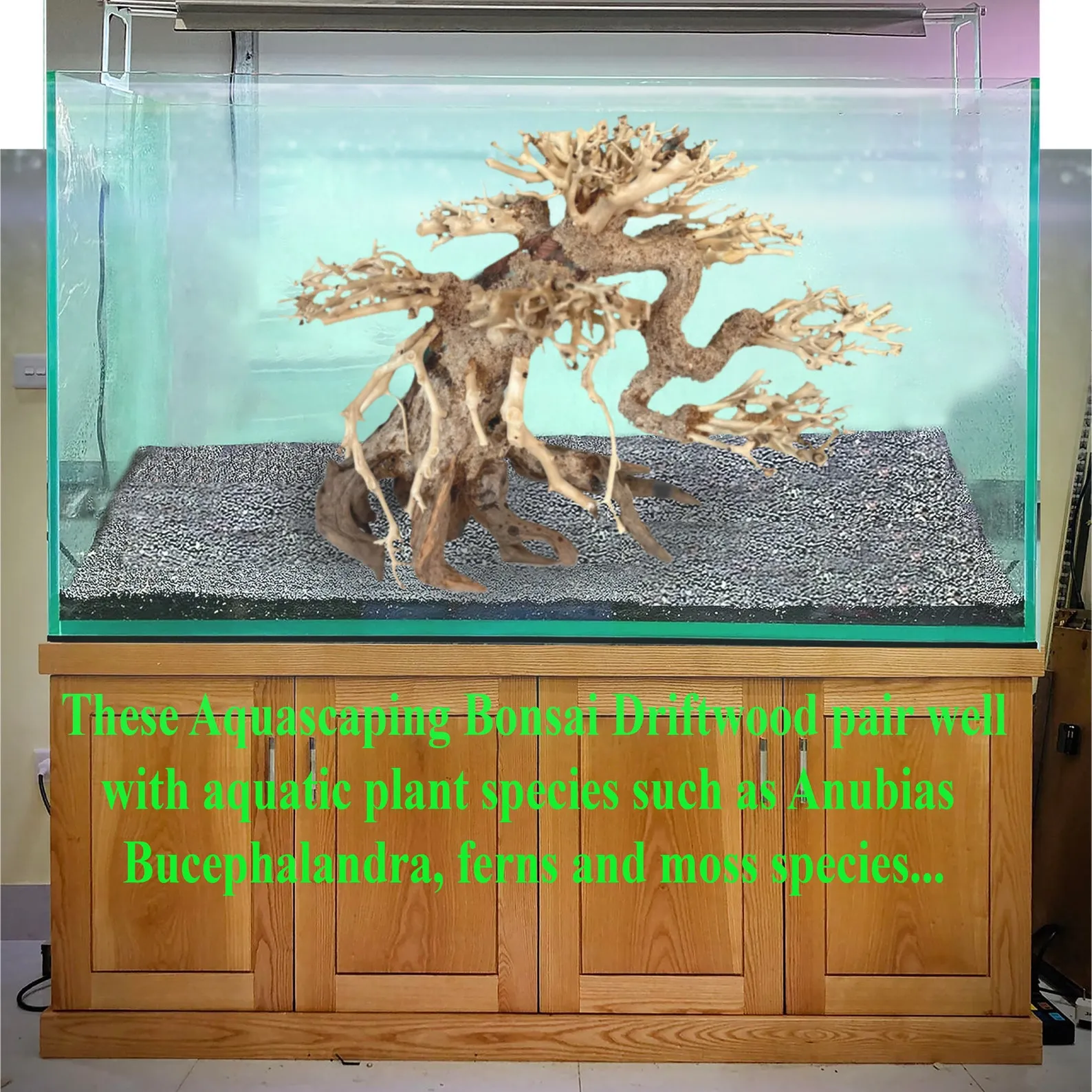 These aquarium driftwood freshwater elevate regular fish/shrimps/plants tanks, making them more than just homes for your fish/shrimps. The tanks become statement pieces; beautiful miniaturized underwater forests to add an ethereal touch to your home. Fish tanks and terrariums are attention-grabbing itemsaquarium bonsai driftwood is proud to carry unique and natural bonsai trees! These exciting product are made by hand from natural driftwood that is aquarium safe. Artisans create these underwater trees in a wide variety of shapes and sizes to fit almost all aquarium tanks. They?re versatile, perfect piece to create an instant aquascape layout.These underwater real driftwood for fish tanks pair well with aquatic plant species such as Anubias, Bucephalandra, Ferns and aquatic moss species. Quite often, these aquatic plants are used to mimic the foliage found on natural bonsai trees.On the flip side, these Driftwood trees can be used to display an array of plants, aquatic or terrestrial such as tillandsia aka air plants or for coffee table decor and desk work…Driftwood Bonsai Aquascaping decor of AQUA Bonsai is carefully selected from hundreds of years old, crooked trees on tropical rocky mountains in Phan Rang Vietnam, and specially designed to last underwater for many many yearsTeam Aqua Bonsai is always happy to lend a hand, If you have any idea for a custom-made aquascape driftwood bonsai you see somewhere, we would love to see how we could turn them into a bonsai made just for you! Shoot us a DM on etsy, email, or send a pigeon. We?d love to hear from you and Have fun.NOTE:Our Aquascape Wood is a handmade item so please allow 1-2 inches ( with large piece ) error due to manual measurement. Thanks for your understanding.How to tied Moss to my Bonsai Driftwood ?Push moss into twigs or branches, these will be enough to hold the moss from floating away, placement of Bonsai Driftwood, Once the driftwood has been properly prepared, clean, and tied with your favourite moss. Carefully place the bonsai driftwood in your aquarium just as you designed