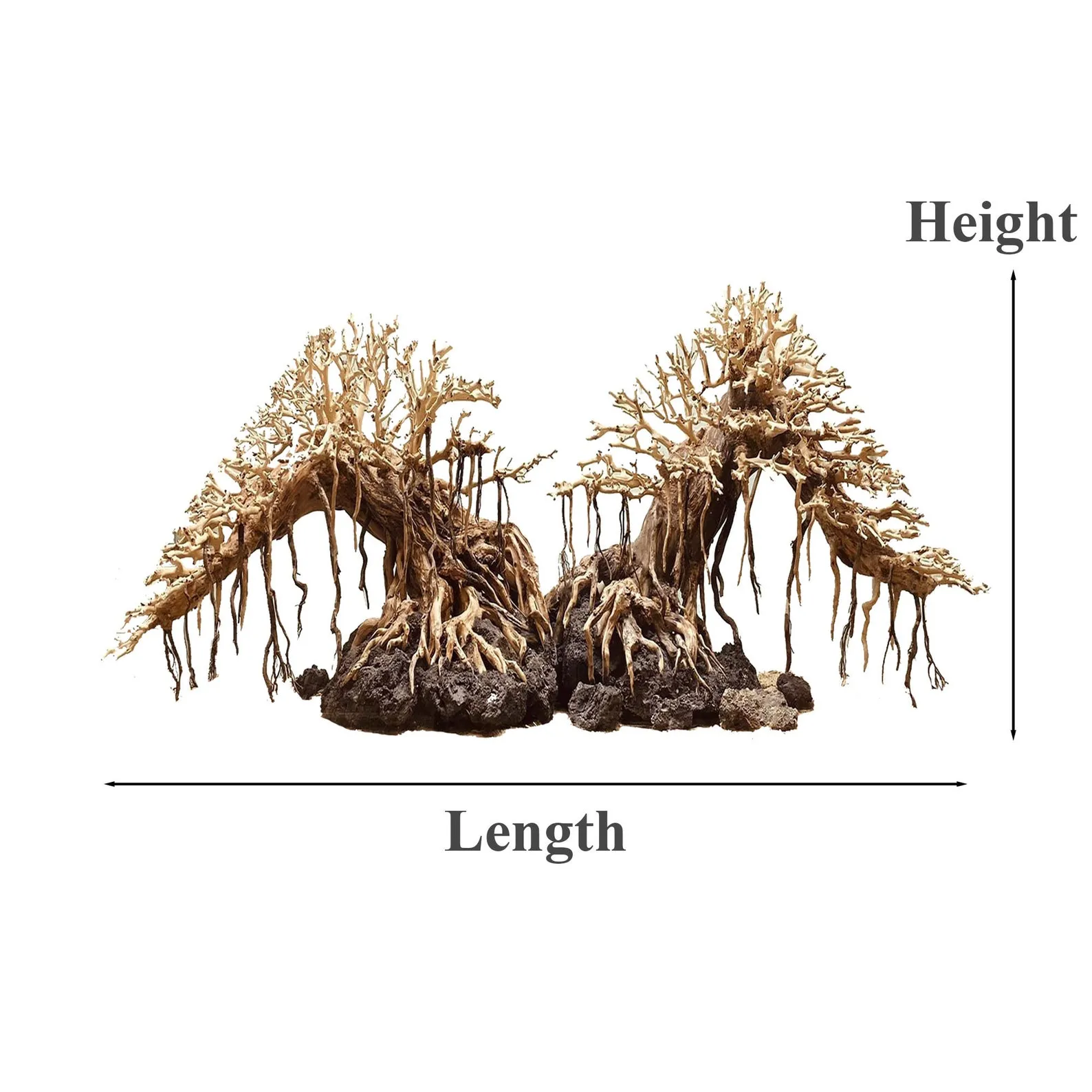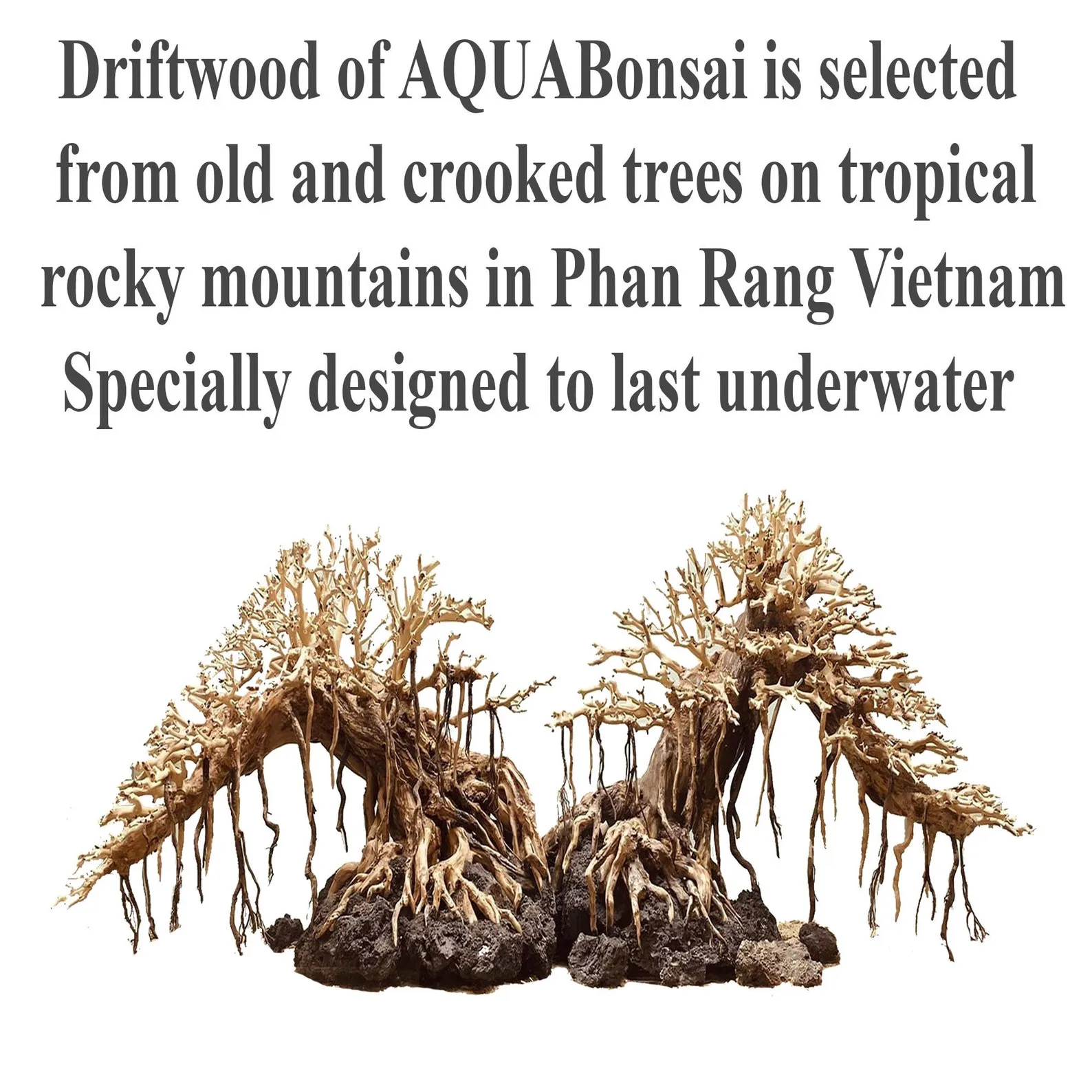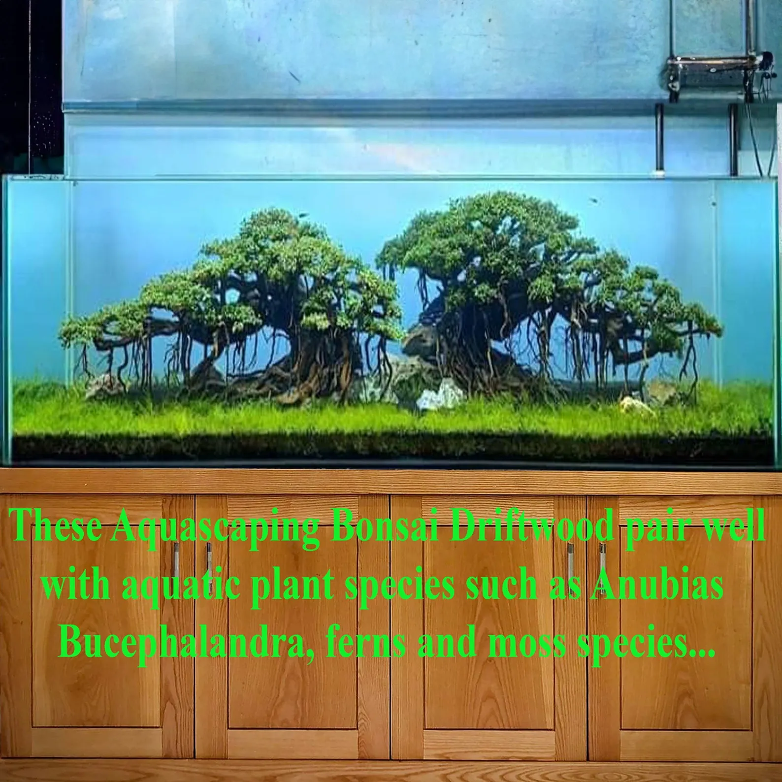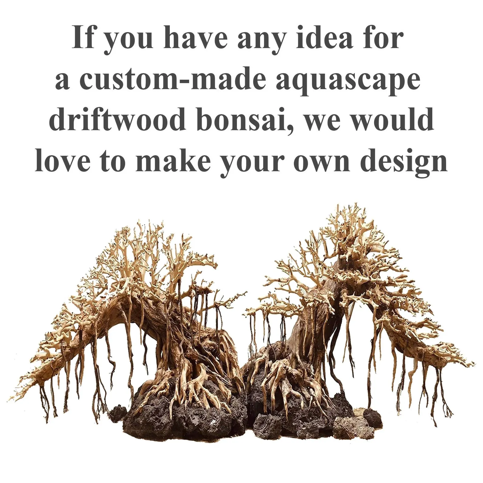 Driftw wood bonsai tree aquarium is proud to carry unique and natural bonsai trees! These exciting product are made by hand from natural driftwood that is aquarium safe. Artisans create these underwater trees in a wide variety of shapes and sizes to fit almost all aquarium tanks. They?re versatile, perfect piece to create an instant aquascape layout.These fish tank bonsai tree elevate regular fish/shrimps/plants tanks, making them more than just homes for your fish/shrimps. The tanks become statement pieces; beautiful miniaturized underwater forests to add an ethereal touch to your home. Fish tanks and terrariums are attention-grabbing itemsThese underwater aquarium driftwood bonsai pair well with aquatic plant species such as Anubias, Bucephalandra, Ferns and aquatic moss species. Quite often, these aquatic plants are used to mimic the foliage found on natural bonsai trees.On the flip side, these Driftwood trees can be used to display an array of plants, aquatic or terrestrial such as tillandsia aka air plants or for coffee table decor and desk work…Bonzai tree driftwood of AQUA Bonsai is carefully selected from hundreds of years old, crooked trees on tropical rocky mountains in Phan Rang Vietnam, and specially designed to last underwater for many many yearsTeam AquaBonsai is always happy to lend a hand, If you have any idea for a custom-made aquascape driftwood bonsai you see somewhere, we would love to see how we could turn them into a bonsai made just for you! Shoot us a DM on etsy, email, or send a pigeon. We?d love to hear from you and Have fun.NOTE:Our aquarium driftwood tree freshwater is a handmade item so please allow 1-2 inches ( with large piece ) error due to manual measurement. Thanks for your understanding.How to tied Moss to my Bonsai Driftwood ?Push moss into twigs or branches, these will be enough to hold the moss from floating away, placement of Bonsai Driftwood, Once the driftwood has been properly prepared, clean, and tied with your favourite moss. Carefully place the bonsai driftwood in your aquarium just as you designed.
