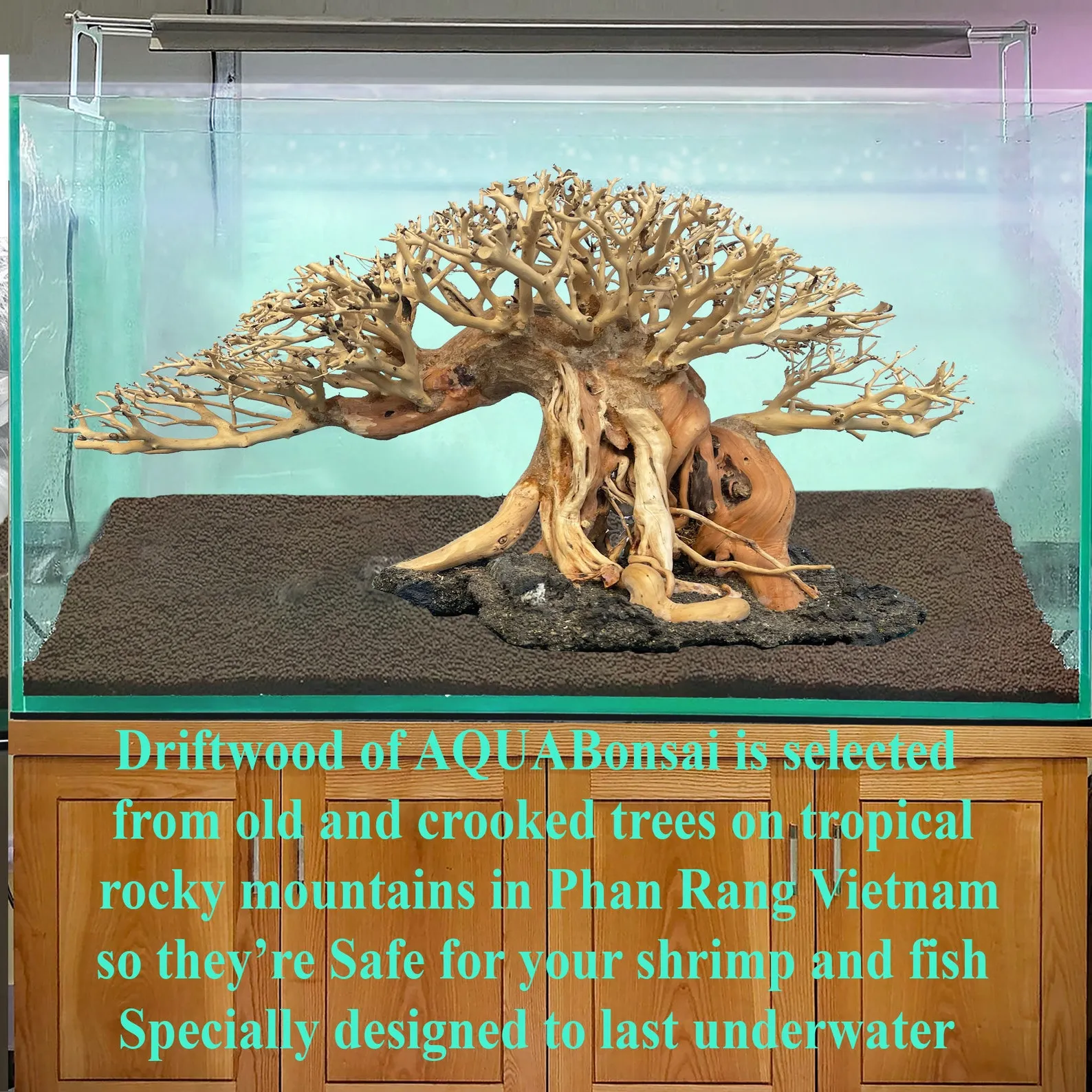 Bonsai Driftwood Aquarium Tree is proud to carry unique and natural bonsai trees! These exciting product are made by hand from natural driftwood that is aquarium safe. Artisans create these underwater trees in a wide variety of shapes and sizes to fit almost all aquarium tanks. They?re versatile, perfect piece to create an instant aquascape layout.These unique Driftwood Bonsai decorations elevate regular fish/shrimps/plants tanks, making them more than just homes for your fish/shrimps. The tanks become statement pieces; beautiful miniaturized underwater forests to add an ethereal touch to your home. Fish tanks and terrariums are attention-grabbing itemsAquascaping Driftwood Tree pair well with aquatic plant species such as Anubias, Bucephalandra, Ferns and aquatic moss species. Quite often, these aquatic plants are used to mimic the foliage found on natural bonsai trees.On the flip side, these Aquarium Driftwood Bonsai Tree can be used to display an array of plants, aquatic or terrestrial such as tillandsia aka air plants or for coffee table decor and desk work…Drift wood for fish tank of Aqua Bonsai is carefully selected from hundreds of years old, crooked trees on tropical rocky mountains in Phan Rang Vietnam, and specially designed to last underwater for many many yearsTeam AquaBonsai is always happy to lend a hand, If you have any idea for a custom-made aquascape driftwood bonsai you see somewhere, we would love to see how we could turn them into a bonsai made just for you! Shoot us a DM on etsy, email, or send a pigeon. We?d love to hear from you and Have fun.SHIPPING: *** You DO NOT have to pay any additional Import Tax. The shipping company will delivery to your house*** With small item ( below 400$ include shipping cost ). We will ship by USPS/Singapore post or VietNam Post and the delivery time is approx 9-13 working days*** With the large item ( more than 400$ include shipping cost ). We will ship by UPS or DHL and the delivery time is approx 5-8 working daysNOTE:Our Bonsai driftwood is a handmade item so please allow 1-2 inches ( with large piece ) error due to manual measurement. Thanks for your understanding.How to tied Moss to my Bonsai Driftwood ?Push moss into twigs or branches, these will be enough to hold the moss from floating away, placement of Bonsai Driftwood, Once the driftwood has been properly prepared, clean, and tied with your favourite moss. Carefully place the bonsai driftwood in your aquarium just as you designed!
