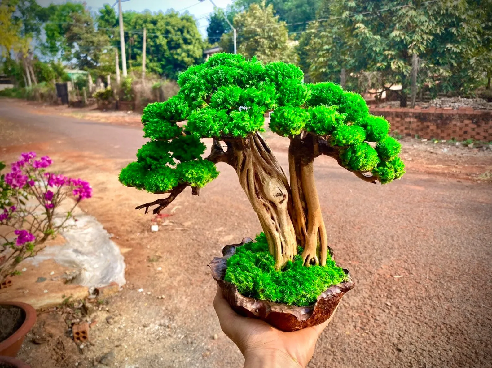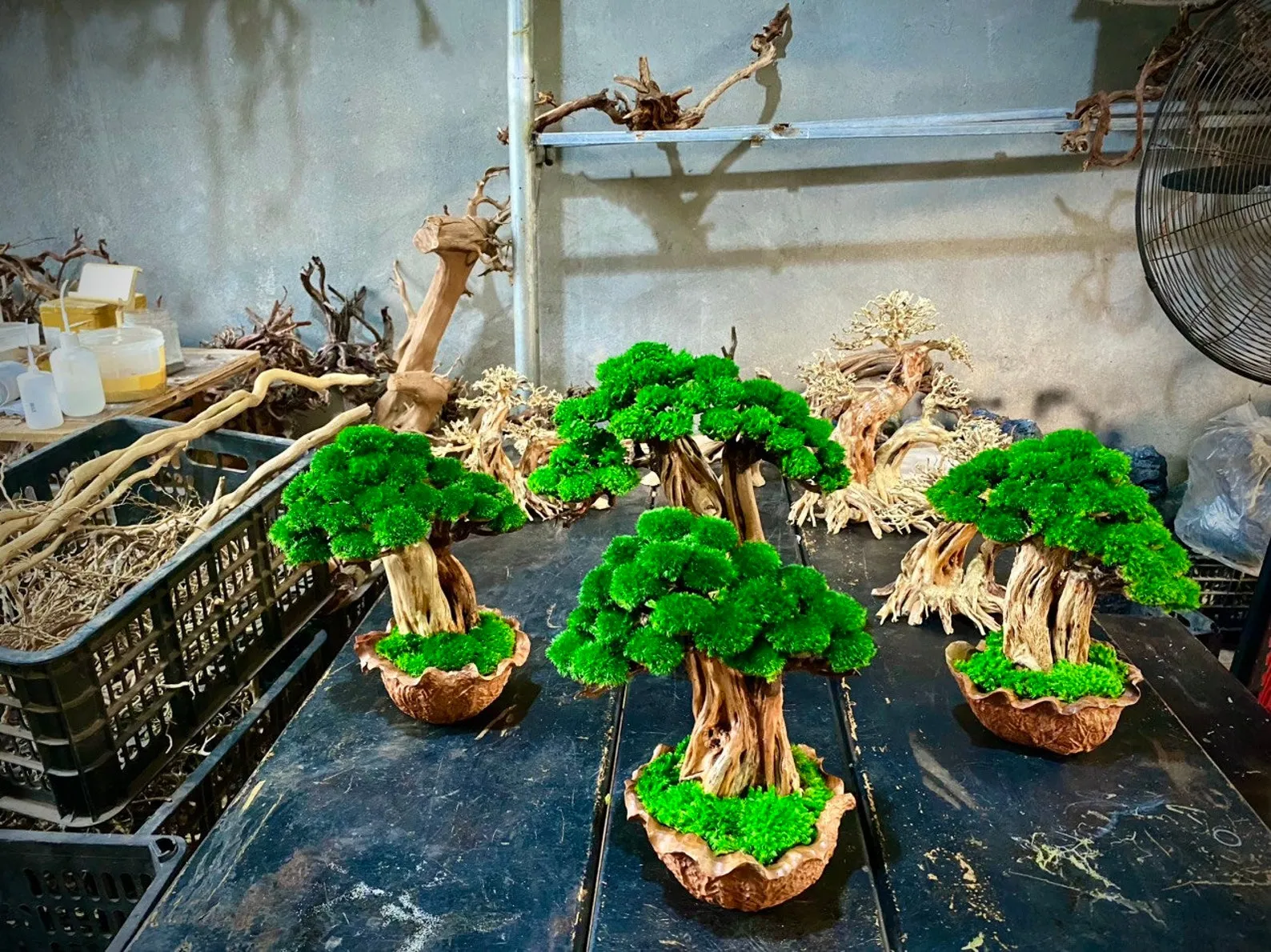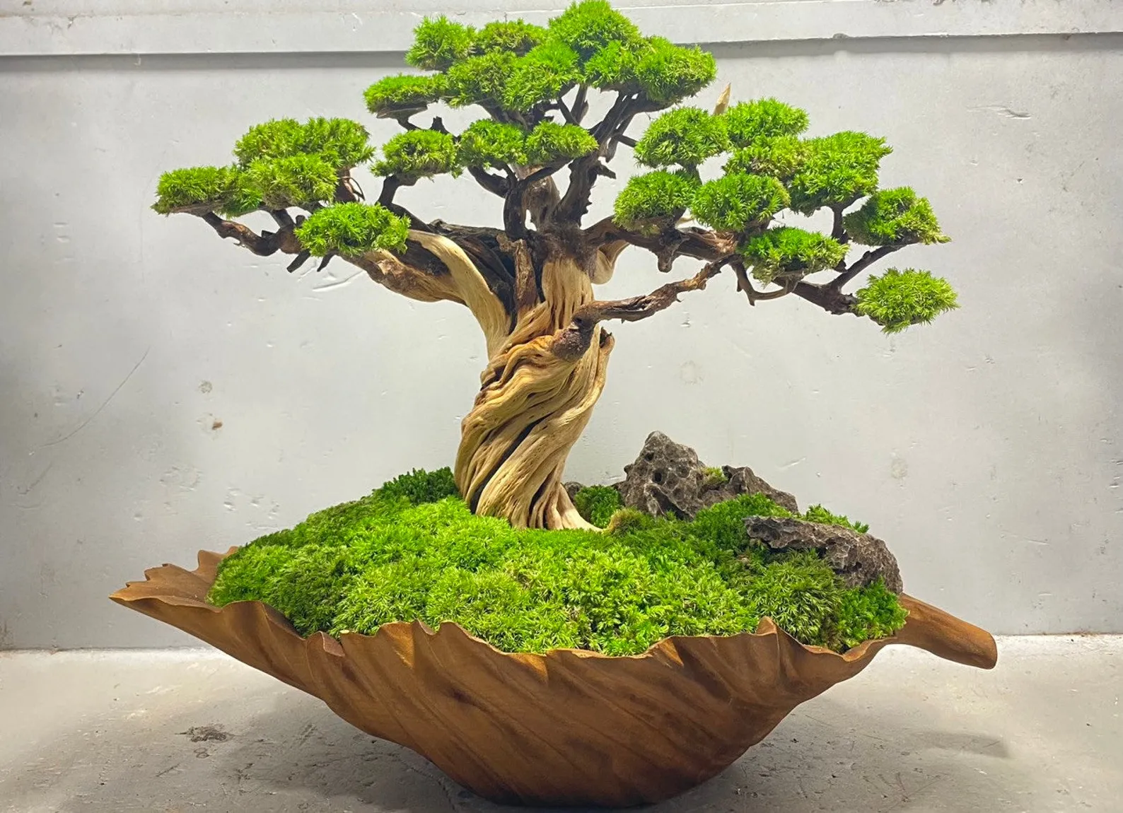 Bonsai driftwood preserved moss wood sculpture pot handmade for coffee table home decor