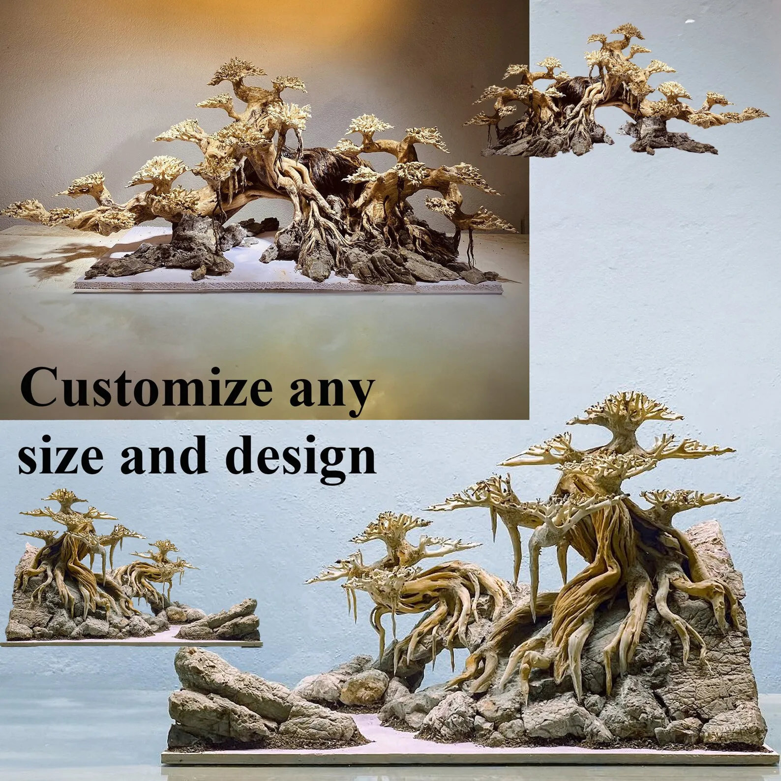 Aquarium rocks large aquascaping elevate regular fish/shrimps/plants tanks, making them more than just homes for your fish/shrimps. The tanks become statement pieces; beautiful miniaturized underwater forests to add an ethereal touch to your home. Fish tanks and terrariums are attention-grabbing itemsBonsai Handcraft is proud to carry unique and natural bonsai trees! These exciting product are made by hand from natural driftwood that is aquarium safe. Artisans create these underwater trees in a wide variety of shapes and sizes to fit almost all aquarium tanks. They?re versatile, perfect piece to create an instant aquascape layout.These underwater driftwood bonsai aquascape hardscape pair well with aquatic plant species such as Anubias, Bucephalandra, Ferns and aquatic moss species. Quite often, these aquatic plants are used to mimic the foliage found on natural bonsai trees.On the other hand, these aquarium driftwood extra large can be used to display an array of plants, aquatic or terrestrial such as tillandsia aka air plants or for coffee table decor and desk work…Bonsai driftwood for fish tank of AQUA Bonsai is carefully selected from hundreds of years old, crooked trees on tropical rocky mountains in Phan Rang Vietnam, and specially designed to last underwater for many many yearsTeam AquaBonsai is always happy to lend a hand, If you have any idea for a custom-made aquascape driftwood bonsai you see somewhere, we would love to see how we could turn them into a bonsai made just for you! Shoot us a DM on etsy, email, or send a pigeon. We?d love to hear from you and Have fun.NOTE:Our Aquascape Wood is a handmade item so please allow 1-2 inches ( with large piece ) error due to manual measurement. Thanks for your understanding.