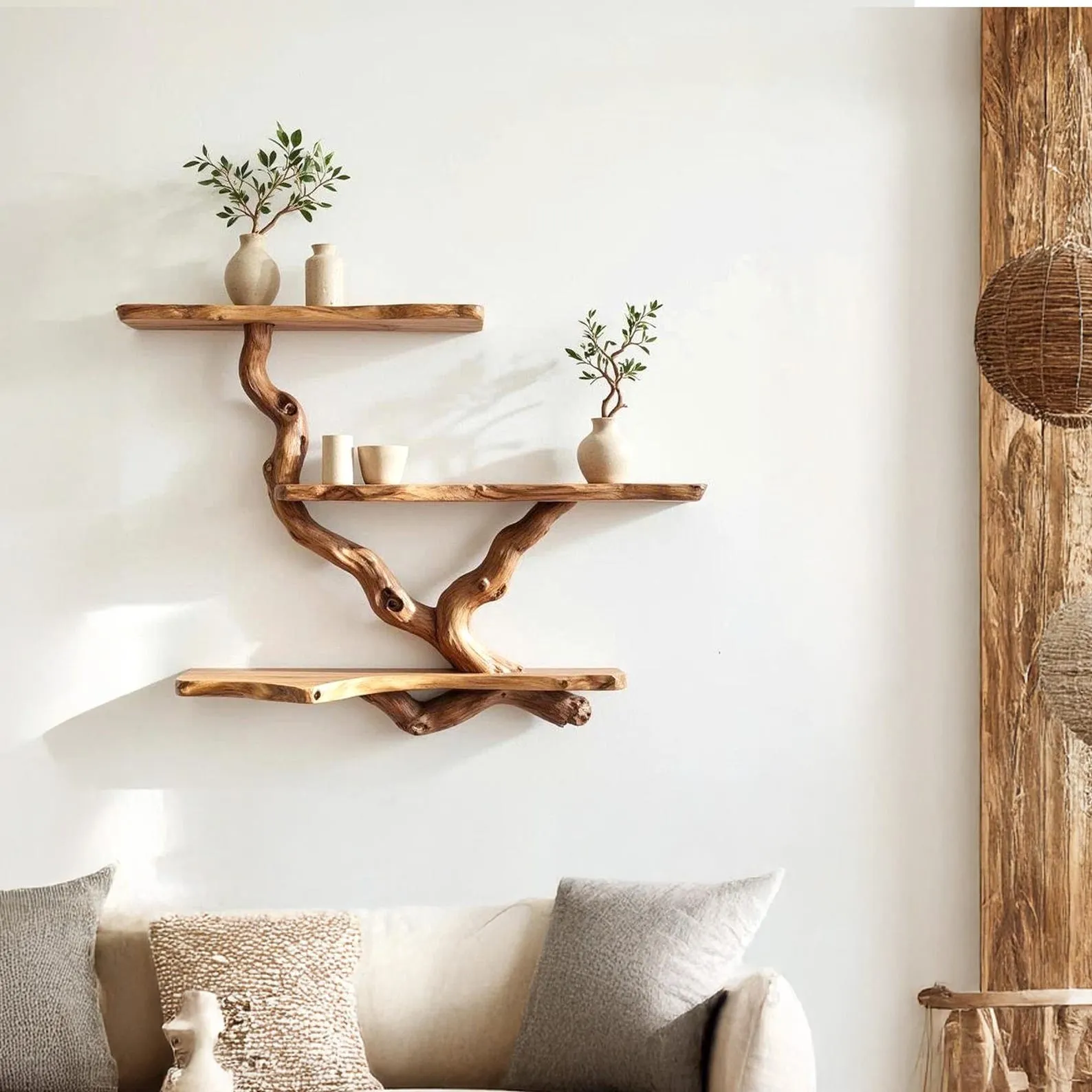 This wall mount tree branch bookshelf decor is lovingly made from carefully selected driftwood branches collected from rocky mountain regions, this natural wood bookshelf combines natural beauty with durability. Each tree branch is handpicked for its shape, grain, and textureensuring termite resistance, structural strength, and a truly one-of-a-kind look that resembles a real tree.