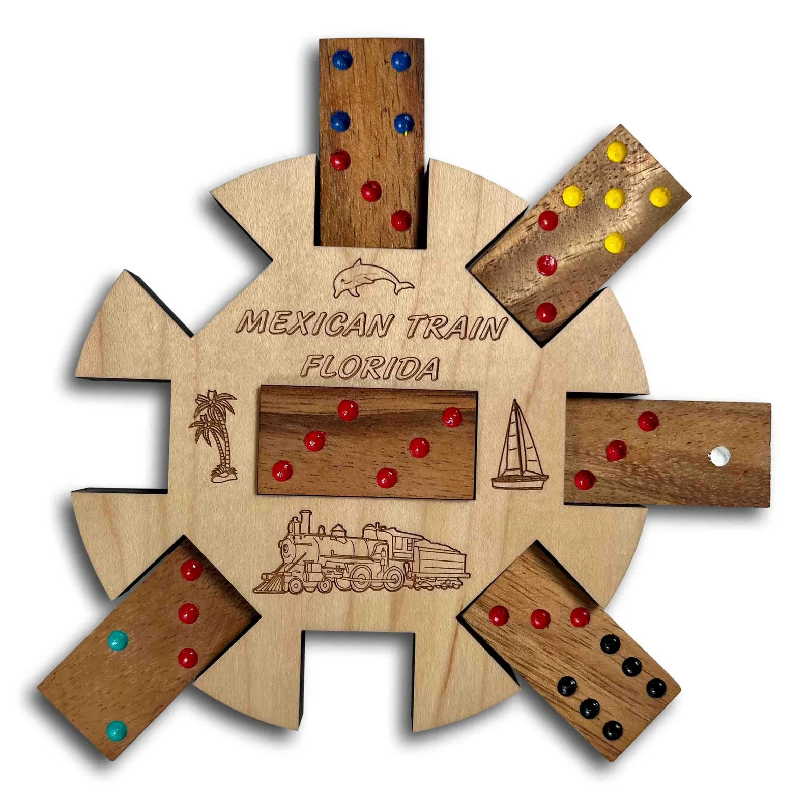 Mexican Train Hub, Florida Train Dominoes Set, Family Game Night Gift, Wooden Board Game, Handcrafted Wood Game, Mexican Gift For Friend