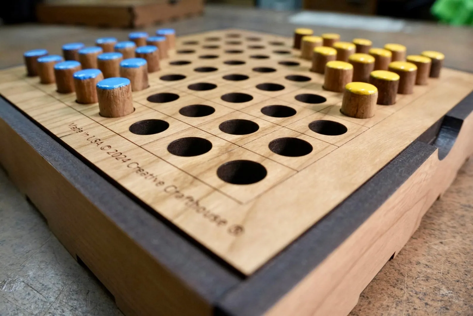 Welcome to the epitome of craftsmanship ? our Artisanal Wooden Chinese Checkers game, a masterpiece of design and skill brought to you by Creative Crafthouse in scenic Hudson, Florida.Crafted with passion and precision, this Chinese Checkers set is unlike any other. Measuring a compact 6×6 inches, it boasts a unique design that stands out from the crowd. Each piece is lovingly handmade with the utmost attention to detail, ensuring both beauty and functionality.But that’s not all ? our game comes complete with a stylish travel cover, making it the perfect companion for adventures near and far. Whether you’re hitting the road, taking to the skies, or simply enjoying a cozy night in, our Chinese Checkers set is ready to join you on your journey.Immerse yourself in the timeless fun of Chinese Checkers, whether you’re challenging friends and family or enjoying a solo game. With its exquisite craftsmanship and portable design, this set is sure to become a cherished addition to your collection.Elevate your game night experience with our Artisanal Wooden Chinese Checkers ? order now and experience the difference that quality craftsmanship makes.