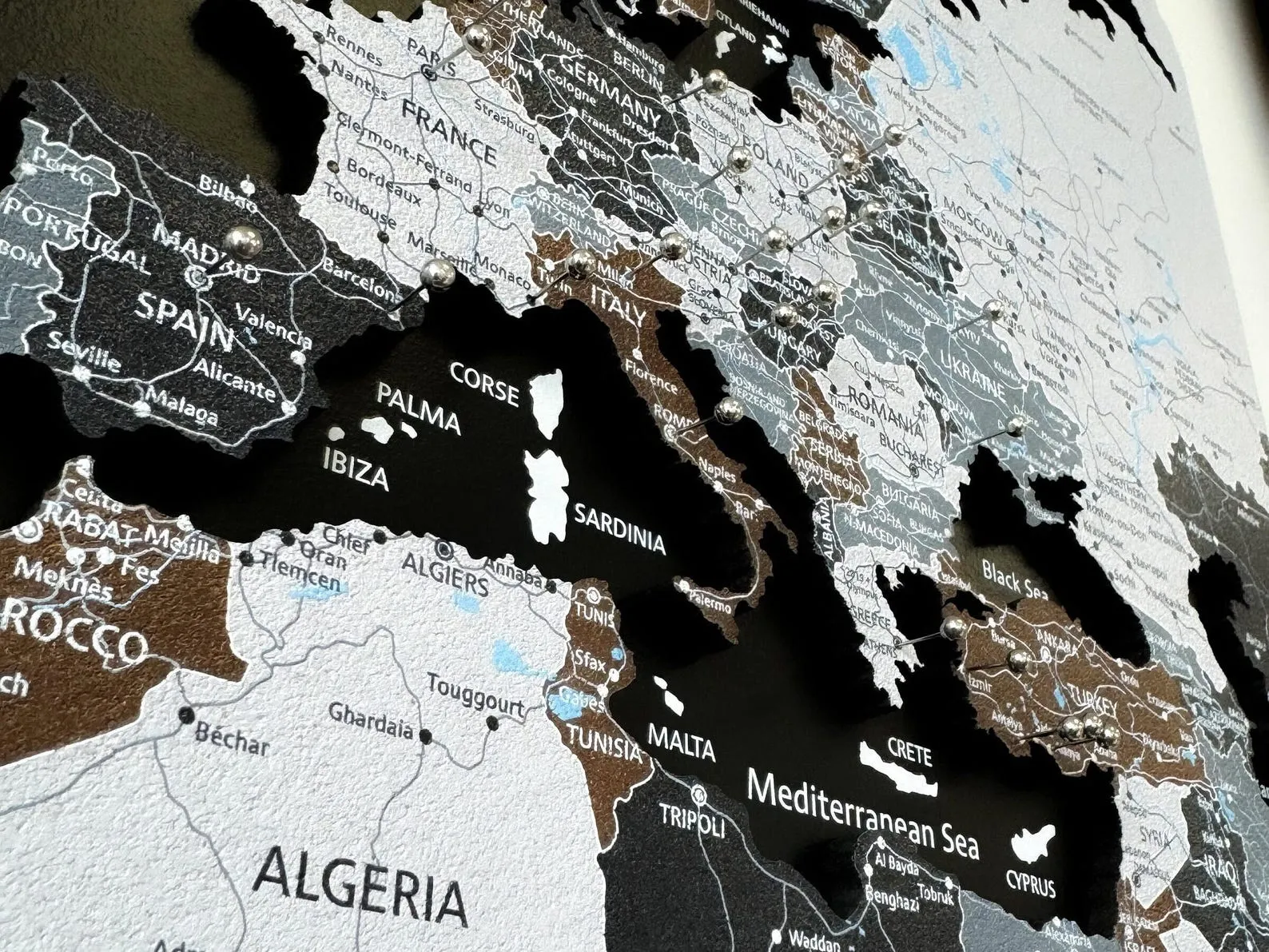 Crafted with durable cork and MDF boards, this map is printed with premium UF Ink from Nazdar (USA) ensuring longevity and the vibrancy of its details over time.