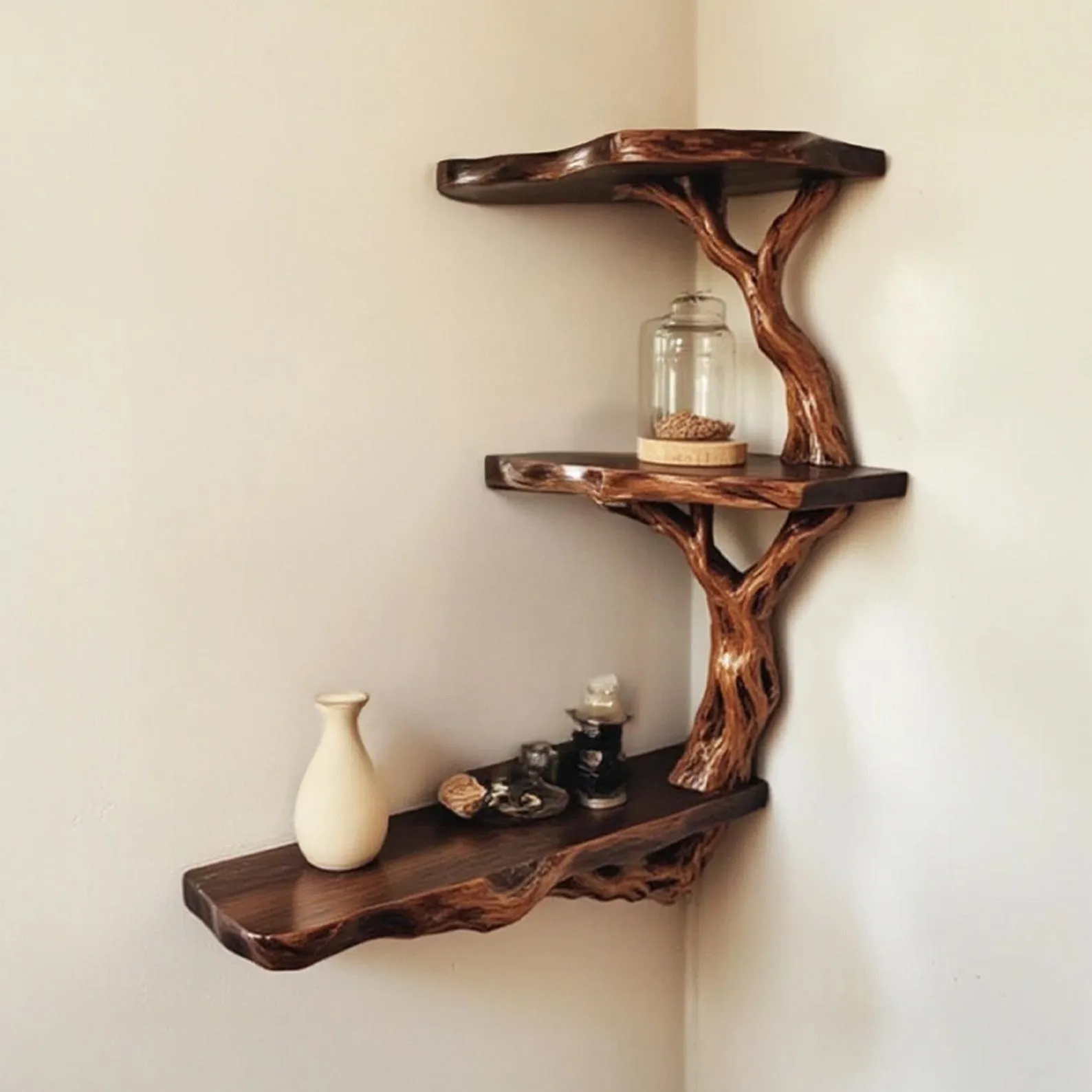 Corner tree branch wall shelves solid wood bookshelf wall mount floating shelf art decor for home