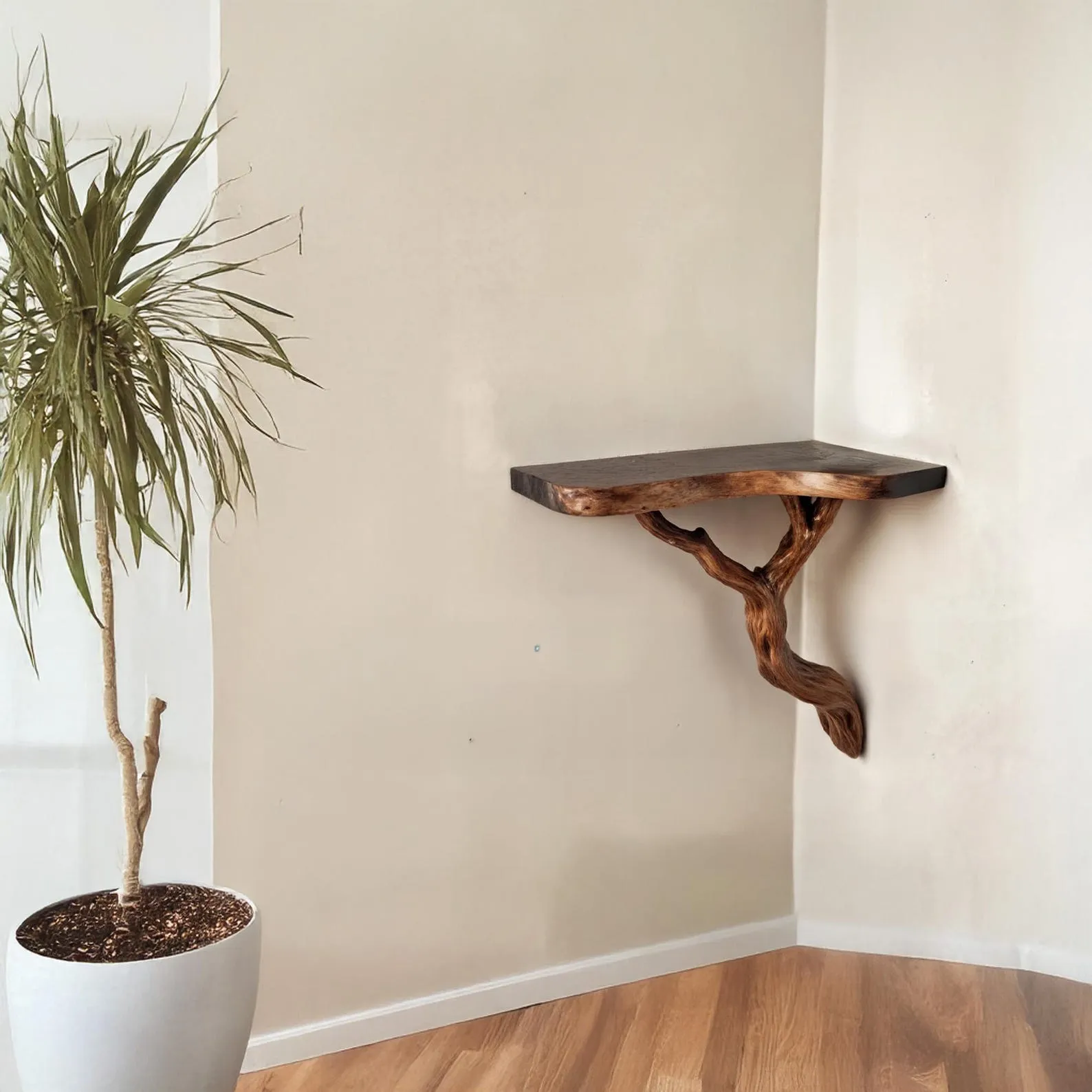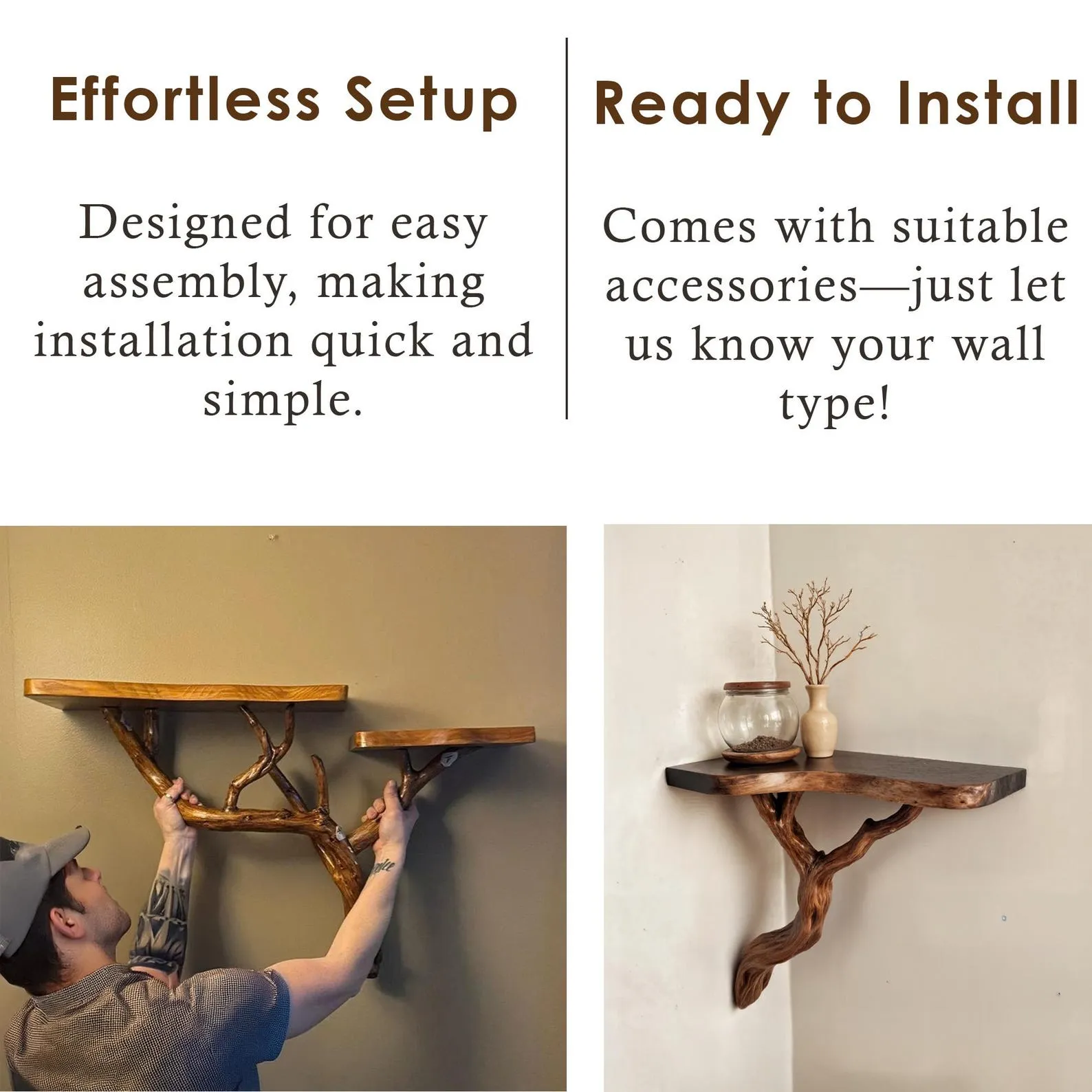 Corner floating shelf natural solid wood bookshelf art tree driftwood branch bookshelves unique wall mount handmade furniture home decor