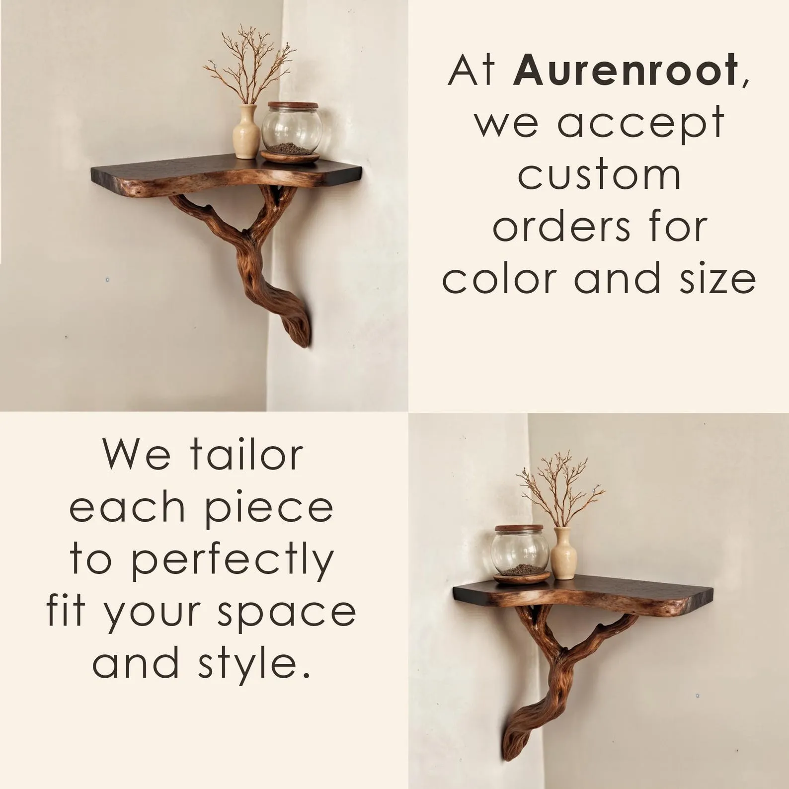 Aurenroot made thisdriftwood branch bookshelf from handcarved solid wood, with the branch crafted from natural driftwood branch and the shelves are made from natural solid wood. This natural wood bookshelf is a stunning example of handmade furniture, designed to bring the beauty of nature into your home. Each piece is meticulously handmade, ensuring no two bookshelves are exactly the same every tree branch shelving unit features its own unique natural characteristics.We offer customizable sizes and colors, so just share your idea with us, and we’ll bring it to life. Need help selecting the right accessories for your wall type? Message us, and we’ll guide you through the options.After your purchase, please check your email and messages, as we may send a photo of your custom piece before shipping to ensure it meets your expectations.Looking forward to serving you, we cherish the opportunity to create something as unique and special as your home.