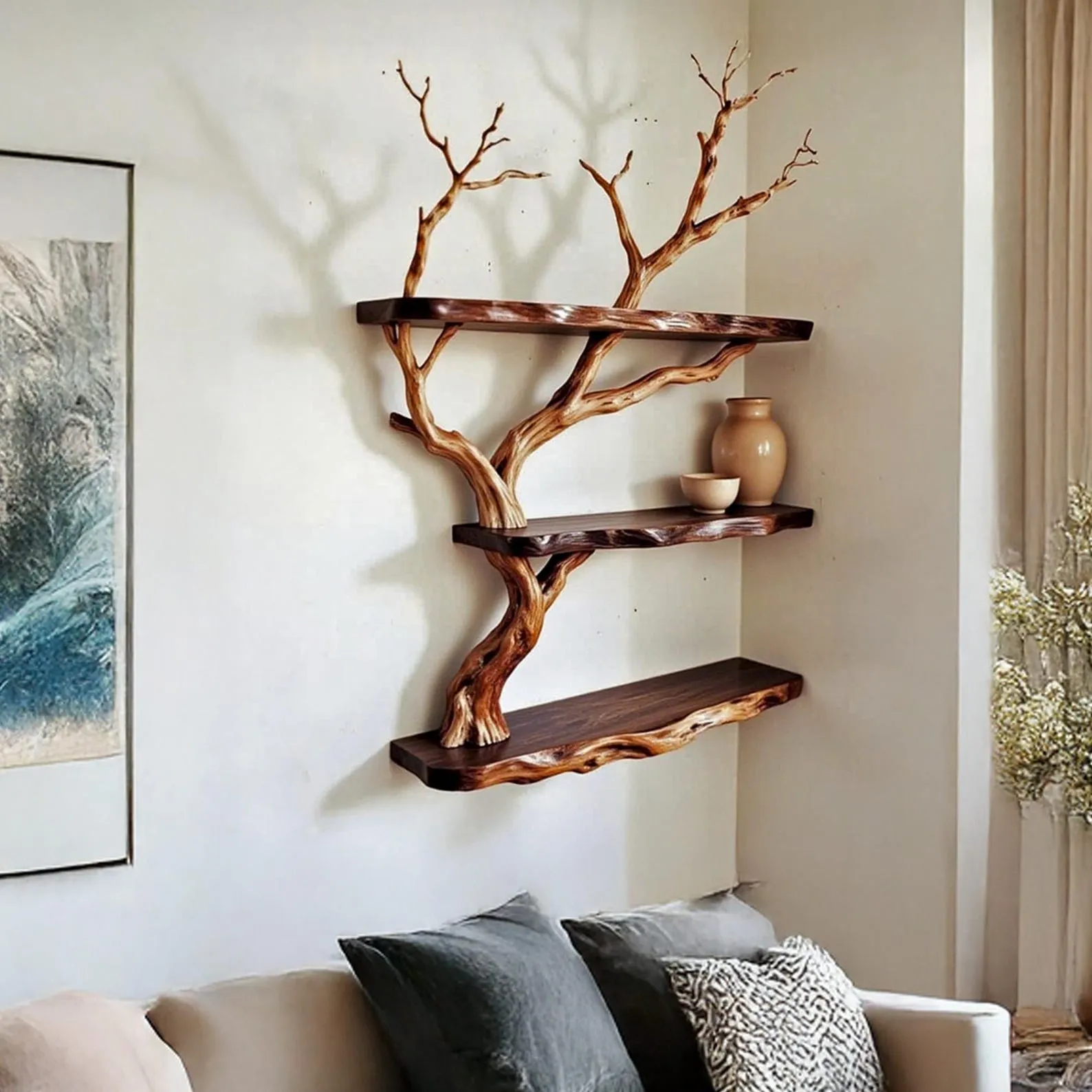 Corner floating shelf tree branch dirftwood wall mount bookshelf solid wood tree shelf art rustic home decoration gifts for mom