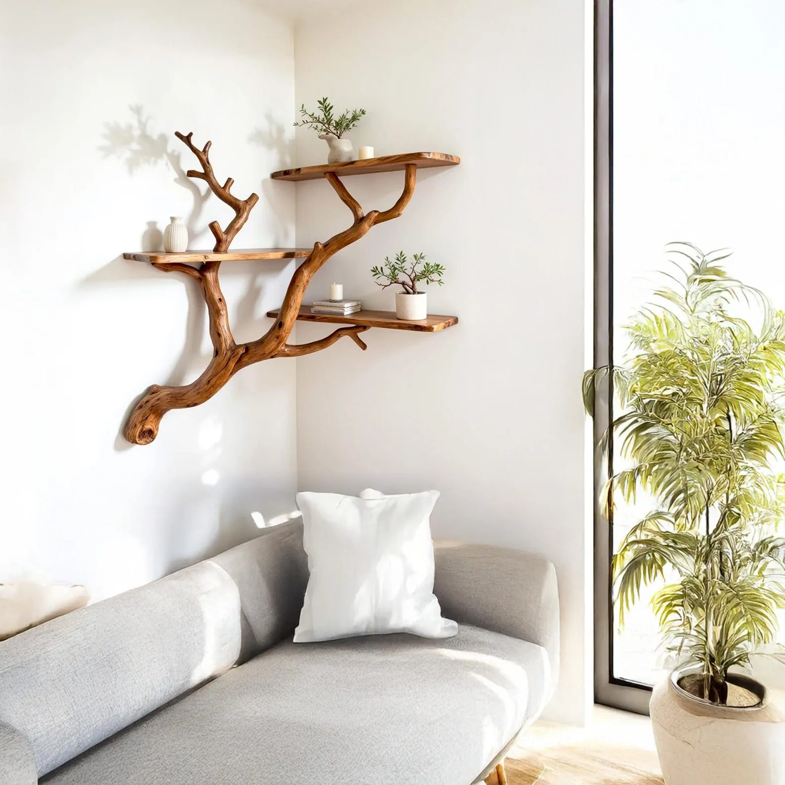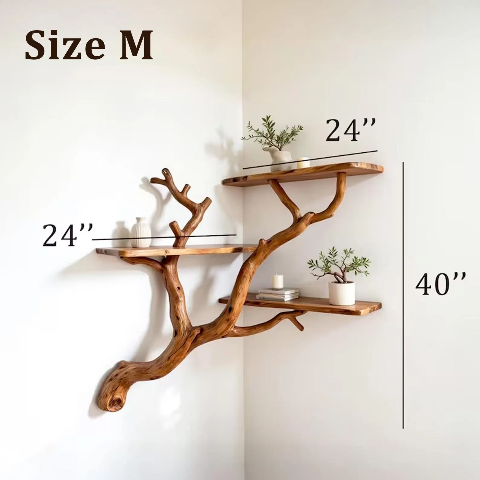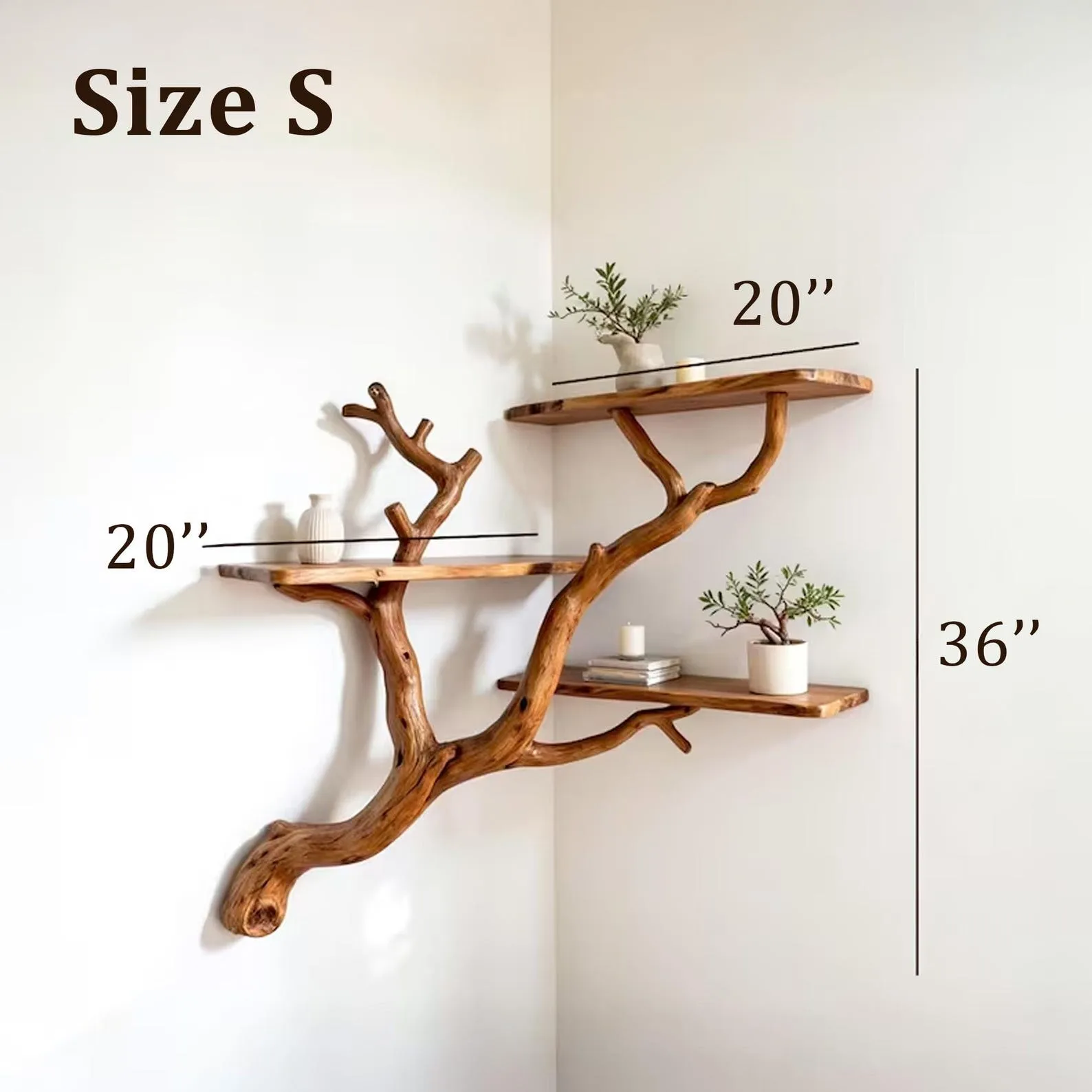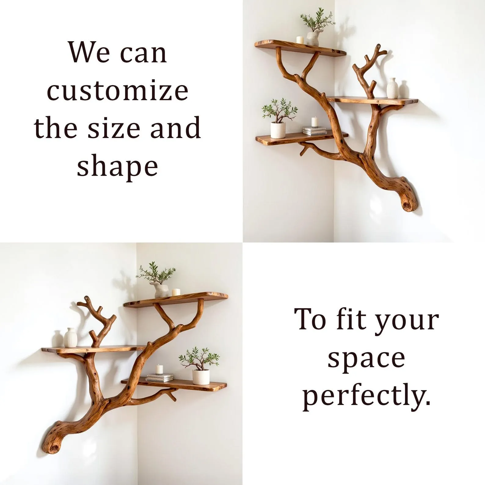 Corner tree floating bookshelf driftwood branch wall shelf hanging tree bookshelf wall mount art corner furniture decoration