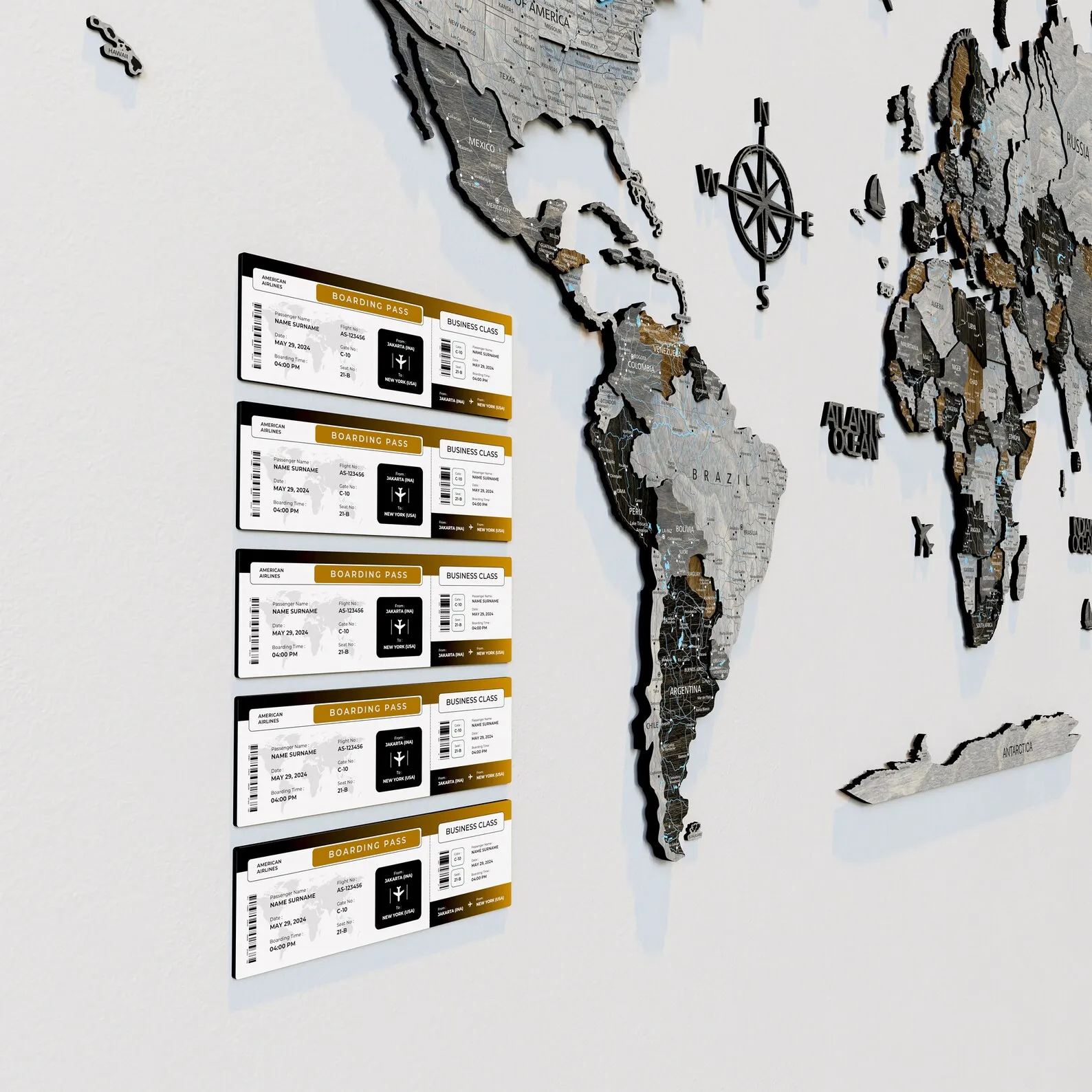 Celebrate your travels with a distinctive and personalized addition to your wooden world map. Order your Custom Wooden Boarding Pass today and create a beautiful display of your adventures!
