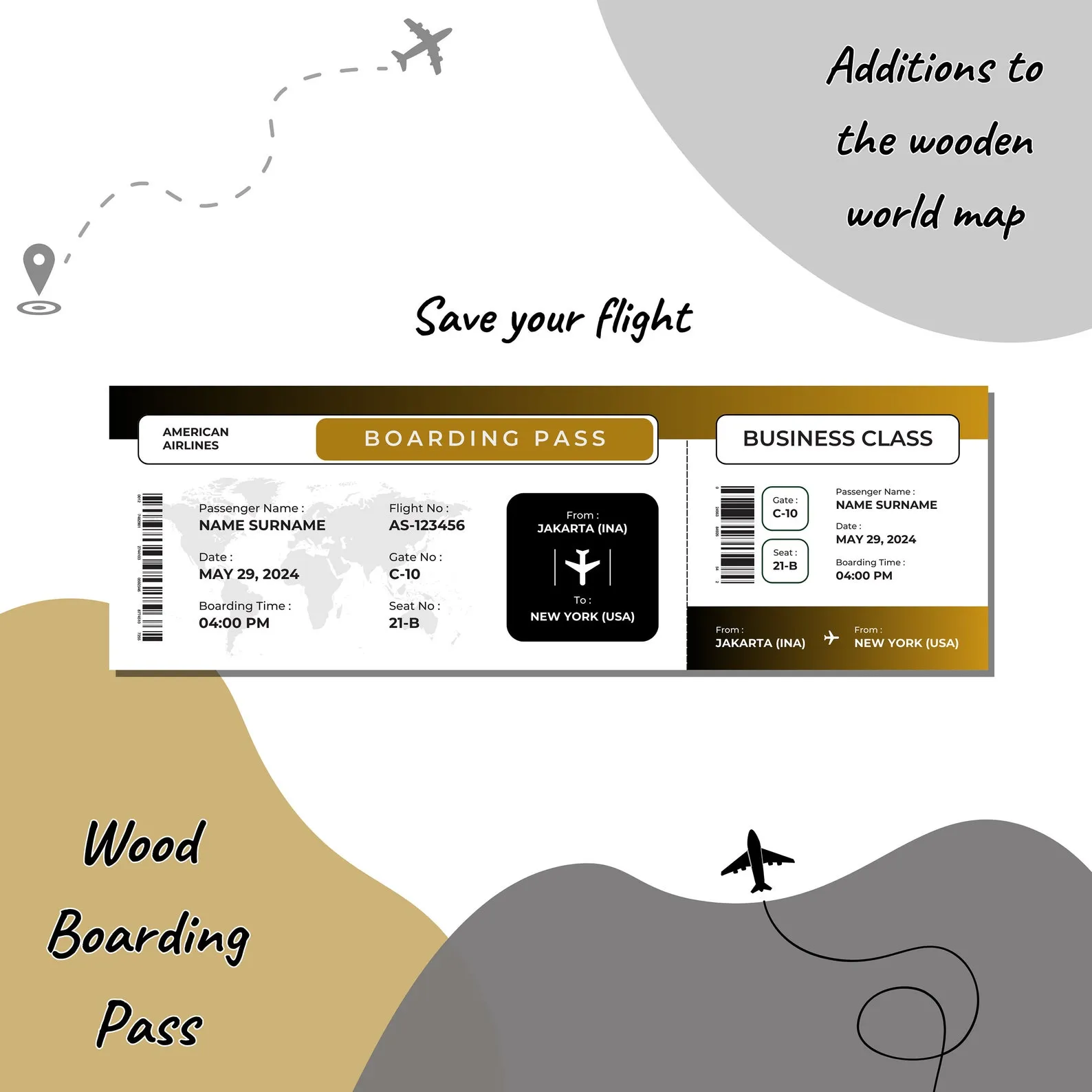 Add a unique touch to your travel memories with our Custom Wooden Boarding Pass. Made from high-quality wood and printed with your personalized details, this bespoke boarding pass is designed to complement your wooden world map, marking your journeys across the globe.