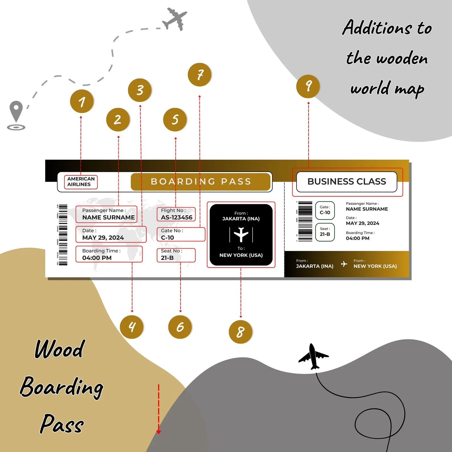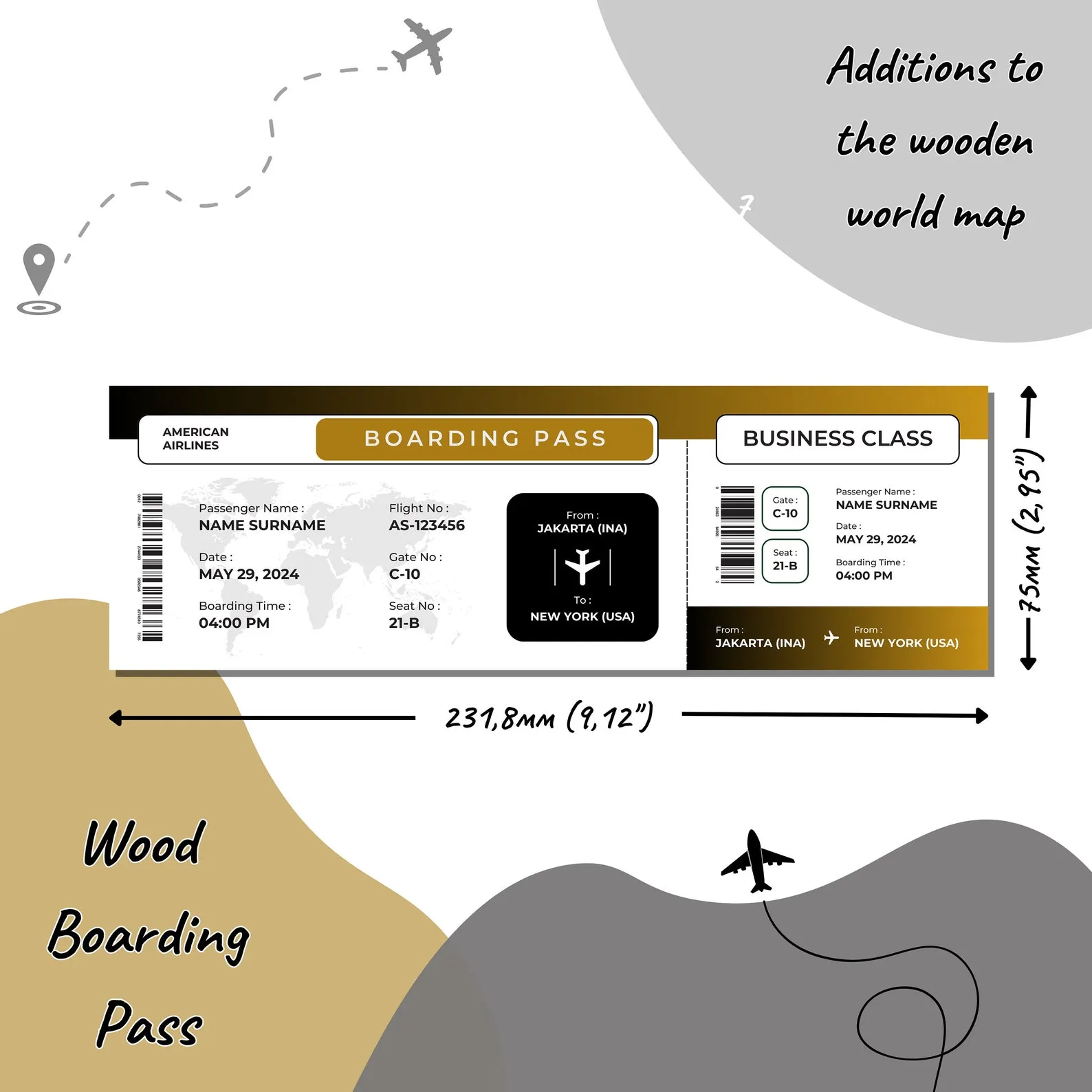 Wooden Boarding Pass For Wooden World Map, Save the Dates on your World Map, Holiday Gift Idea, Flight Ticket, Plane Ticket, Airline Ticket