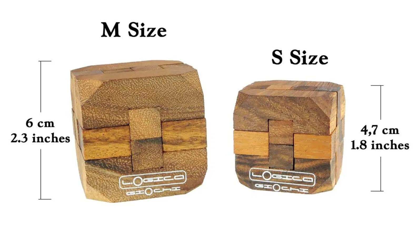 A real diamond in our puzzle collection!CHALLENGE: Disassemble and reassemble the cube composed of 12 piecesAvailable sizes:Large: 6 x 6 x 6 cmSmall: 4.8 x 4.8 x 4.8 cmDifficulty: 4/6 EXTREME. Average solution time: 30 min – 30 daysPACKED IN THE BOX OF THE SERIES LEONARDO DA VINCIBox dimensions: 10 x 10 x 10 cmBox sizes (small version): 7 x 7 x 7 cmLEONARDO SERIES: A new series of LOGICA GIOCHI puzzles that brings together the classic 3D cubes of large and small sizes. The puzzles are made of dark Teak wood and packaged in an original box with Leonardo’s drawings