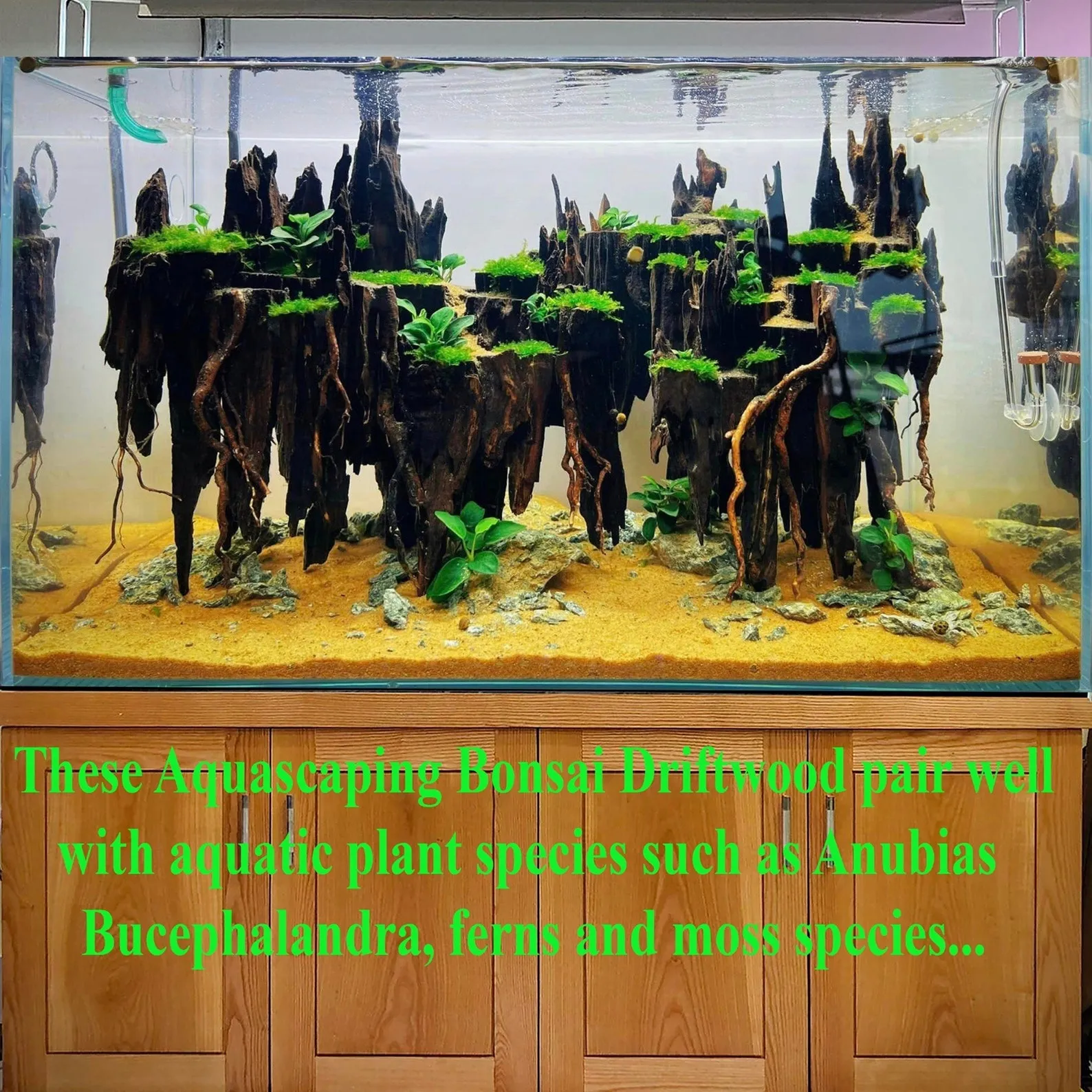 Drift wood Aquascaping bonsai is proud to carry unique and natural bonsai trees! These special product are made by hand from natural driftwood that is tank safe. These underwater trees in a wide variety of shapes and sizes to fit almost all aquarium tanks are created by artisans. They?re versatile, perfect piece to create an instant aquascape layout.Aquarium Drift wood Decor elevate regular fish/shrimps/plants tanks, making them more than just homes for your fish/shrimps. The tanks become statement pieces; beautiful miniaturized underwater forests to add an ethereal touch to your home. Fish tanks and terrariums are attention-grabbing itemsAquascape Driftwood pair well with aquatic plant species such as Anubias, Bucephalandra, Ferns and aquatic moss species. Normally, these aquatic plants are used to mimic the foliage found on natural bonsai trees.On the other hand, these Aquarium Driftwood can be used to display an array of plants, aquatic or terrestrial such as tillandsia aka air plants or for coffee table decor and desk work…Bonsai driftwood aquarium plants for fish tank is carefully selected from hundreds of years old, crooked trees on tropical rocky mountains in Phan Rang Vietnam, and specially designed to last underwater for many many yearsTeam AquaBonsai is always happy to lend a hand, If you have any idea for a custom-made aquascape driftwood bonsai you see somewhere, we would love to see how we could turn them into a bonsai made just for you! Shoot us a DM on etsy, email, or send a pigeon. We?d love to hear from you and Have fun.SHIPPING: *** You DO NOT have to pay any additional Import Tax. The shipping company will delivery to your house*** With small item ( below 400$ include shipping cost ). We will ship by USPS/Singapore post or VietNam Post and the delivery time is approx 9-13 working days*** With the large item ( more than 400$ include shipping cost ). We will ship by UPS or DHL and the delivery time is approx 5-8 working daysNOTE:Our Bonsai driftwood is a handmade item so please allow 1-2 inches ( with large piece ) error due to manual measurement. Thanks for your understanding.