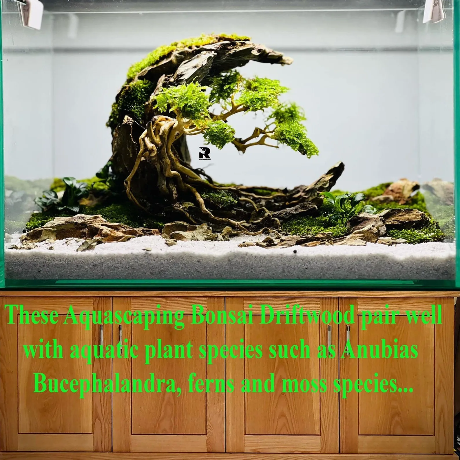Driftwood Bonsai for Aquarium is proud to carry unique and natural bonsai trees! These exciting product are made by hand from natural driftwood that is aquarium safe. Artisans create these underwater trees in a wide variety of shapes and sizes to fit almost all aquarium tanks. They?re versatile, perfect piece to create an instant aquascape layout.Driftwood Bonsai decorations elevate regular fish/shrimps/plants tanks, making them more than just homes for your fish/shrimps. The tanks become statement pieces; beautiful miniaturized underwater forests to add an ethereal touch to your home. Fish tanks and terrariums are attention-grabbing itemsDriftwood large aquarium hide pair well with aquatic plant species such as Anubias, Bucephalandra, Ferns and aquatic moss species. Quite often, these aquatic plants are used to mimic the foliage found on natural bonsai trees.On the other hand, this Aquarium Driftwood can be used to display an array of plants, aquatic or terrestrial such as tillandsia aka air plants or for coffee table decor and desk work…Team AquaBonsai is always happy to lend a hand, If you have any idea for a custom-made aquascape driftwood bonsai you see somewhere, we would love to see how we could turn them into a bonsai made just for you! Shoot us a DM on etsy, email, or send a pigeon. We?d love to hear from you and Have fun.??SHIPPING: You DO NOT have to pay any additional Import Tax. The shipping company will delivery to your house??With small item ( below 400$ include shipping cost ). We will ship by USPS/Singapore post or VietNam Post and the delivery time is approx 9-13 working days??With the large item ( more than 400$ include shipping cost ). We will ship by UPS or DHL and the delivery time is approx 5-8 working days??NOTE:Our Bonsai driftwood tree is a handmade item so please allow 1-2 inches ( with large piece ) error due to manual measurement. Thanks for your understanding.??How to tied Moss to my Bonsai Driftwood ?Push moss into twigs or branches, these will be enough to hold the moss from floating away, placement of Bonsai Driftwood, Once the driftwood has been properly prepared, clean, and tied with your favourite moss. Carefully place the bonsai driftwood in your aquarium just as you designed.