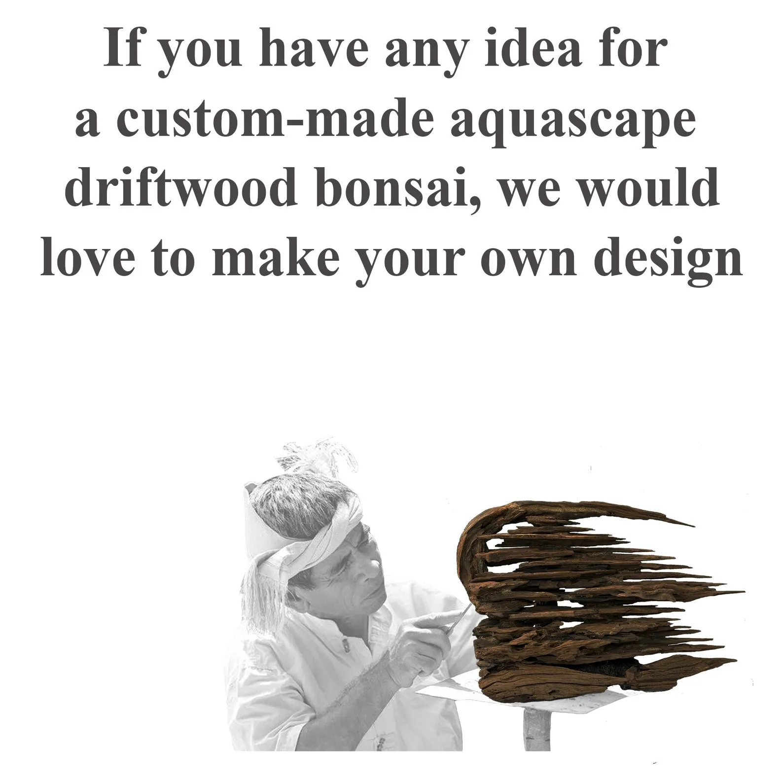 Team AquaBonsai is always happy to lend a hand, If you have any idea for a custom-made aquascape driftwood bonsai you see somewhere, we would love to see how we could turn them into a bonsai made just for you! Shoot us a DM on etsy, email, or send a pigeon. We?d love to hear from you and Have fun.