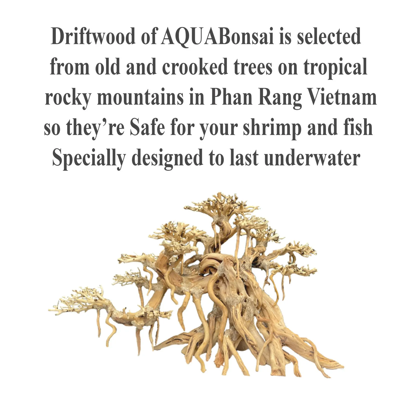 Our exquisite bonzai tree driftwood aquascape, a stunning centerpiece for your aquatic oasis. Handcrafted with meticulous attention to detail, this enchanting piece combines the natural beauty of driftwood with the art of bonsai aquarium tree stump to create a truly unique and captivating decor item for your aquarium.This masterpiece is a carefully selected driftwood piece, shaped and sculpted to resemble a cave-like structure. The negative space aquascape design technique is expertly employed, allowing for the creation of fascinating nooks and crannies within the wood and aquarium rock, offering a harmonious blend of open spaces and intricate textures. This balance not only enhances the aesthetics of your aquarium but also provides shelter and hiding spots for your aquatic pets.This drift wood bonsai tree aquascaping wood doubles as a bonsai driftwood decor, infusing your aquatic haven with a touch of Zen and tranquility. Its versatile design allows it to seamlessly integrate into various aquarium styles, from freshwater planted tanks to biotope setups, providing a focal point that effortlessly elevates your overall aquascape.As a standout product in the Etsy market, our bonsai aquarium driftwood centerpiece is a testament to the creativity and skill of our artisans. It is a one-of-a-kind piece that will surely be the envy of fellow aquarists and art enthusiasts alike. With its elegant and distinct presence, it makes for a remarkable addition to your personal collection or a thoughtful gift for any aquarium enthusiast.Transform your aquarium into a captivating underwater world with our Aquarium aquascape. Experience the beauty of negative space aquascaping and allow the artistry of our handmade bonsai driftwood decor to enhance the serenity of your aquatic realm.Team Aqua Bonsai is always happy to lend a hand, If you have any idea for a custom-made aquascape driftwood bonsai you see somewhere, we would love to see how we could turn them into a bonsai made just for you! Shoot us a DM on etsy, email, or send a pigeon. We?d love to hear from you and Have fun.