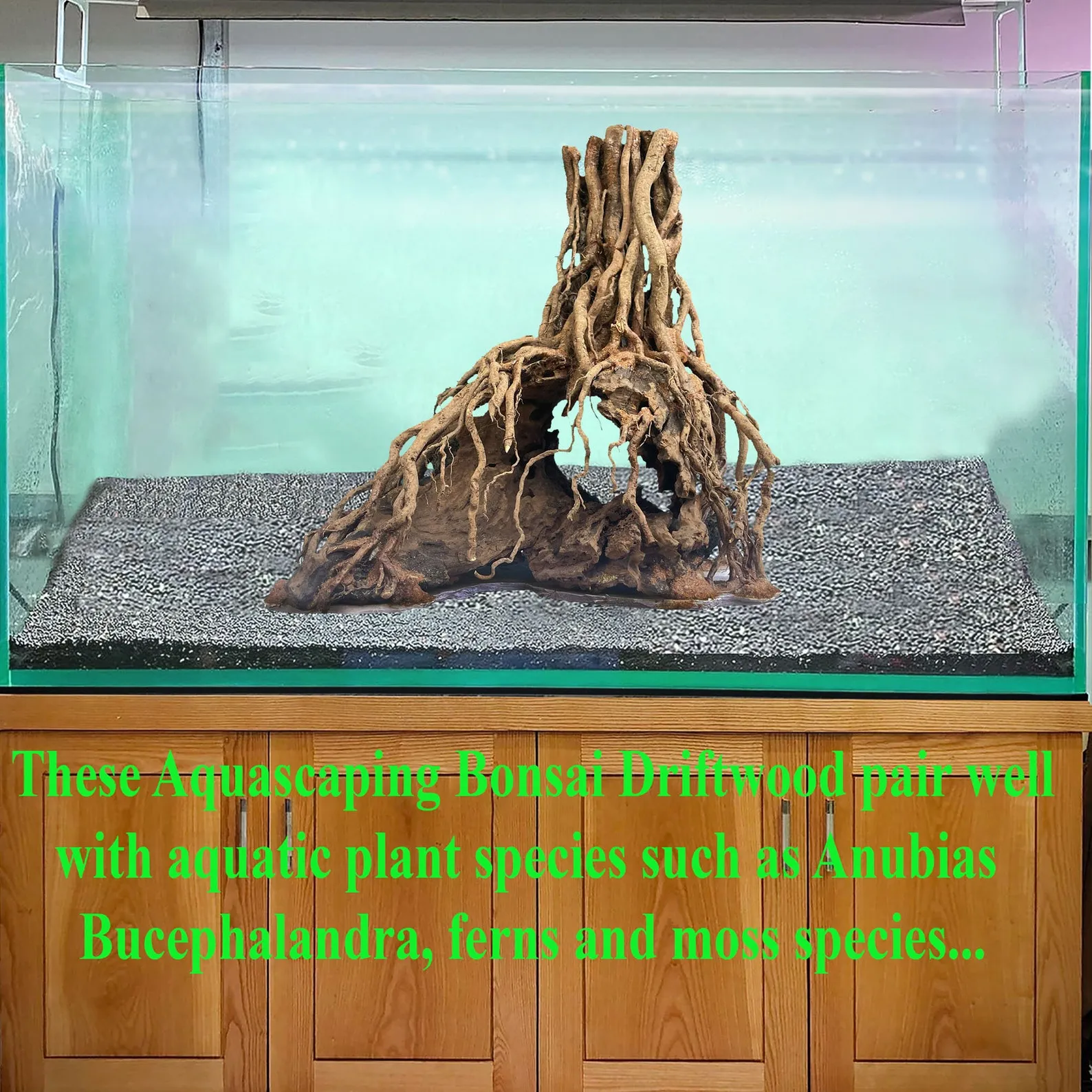 Driftwood aquarium tree stump is proud to carry unique and natural bonsai trees! These exciting product are made by hand from natural driftwood that is aquarium safe. Artisans create these underwater trees in a wide variety of shapes and sizes to fit almost all aquarium tanks. They?re versatile, perfect piece to create an instant aquascape layout.These unique bonzai tree driftwood elevate regular fish/shrimps/plants tanks, making them more than just homes for your fish/shrimps. The tanks become statement pieces; beautiful miniaturized underwater forests to add an ethereal touch to your home. Fish tanks and terrariums are attention-grabbing itemsThese underwater Aquarium driftwood stump pair well with aquatic plant species such as Anubias, Bucephalandra, Ferns and aquatic moss species. Quite often, these aquatic plants are used to mimic the foliage found on natural bonsai trees.On the flip side, these Aquarium Driftwood trees can be used to display an array of plants, aquatic or terrestrial such as tillandsia aka air plants or for coffee table decor and desk work…DriftWood Aquascape Decor of AQUA Bonsai is carefully selected from hundreds of years old, crooked trees on tropical rocky mountains in Phan Rang Vietnam, and specially designed to last underwater for many many yearsTeam Aqua Bonsai is always happy to lend a hand, If you have any idea for a custom-made aquascape driftwood bonsai you see somewhere, we would love to see how we could turn them into a bonsai made just for you! Shoot us a DM on etsy, email, or send a pigeon. We?d love to hear from you and Have fun.NOTE:Our Aquascape Wood is a handmade item so please allow 1-2 inches ( with large piece ) error due to manual measurement. Thanks for your understanding.How to tied Moss to my Bonsai Driftwood ?Push moss into twigs or branches, these will be enough to hold the moss from floating away, placement of Bonsai Driftwood, Once the driftwood has been properly prepared, clean, and tied with your favourite moss. Carefully place the bonsai driftwood in your aquarium just as you designed.