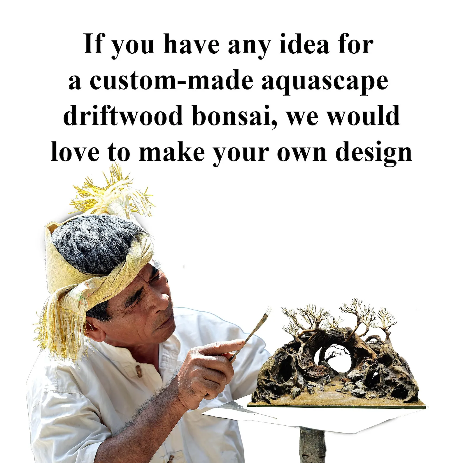 Driftwood aquarium aquascape cave rock d?cor elevate regular fish/shrimps/plants tanks, making them more than just homes for your fish/shrimps. The tanks become statement pieces; beautiful miniaturized underwater forests to add an ethereal touch to your home. Fish tanks and terrariums are attention-grabbing itemsAquascape driftwood aquarium cave is proud to carry unique and natural bonsai trees! These exciting product are made by hand from natural driftwood that is aquarium safe. Artisans create these underwater trees in a wide variety of shapes and sizes to fit almost all aquarium tanks. They?re versatile, perfect piece to create an instant aquascape layout.These underwater bonsai aquascape aquarium tree stump pair well with aquatic plant species such as Anubias, Bucephalandra, Ferns and aquatic moss species. Quite often, these aquatic plants are used to mimic the foliage found on natural bonsai trees.On the other hand, these aquarium driftwood extra large can be used to display an array of plants, aquatic or terrestrial such as tillandsia aka air plants or for coffee table decor and desk work…Bonsai driftwood for aquarium is carefully selected from hundreds of years old, crooked trees on tropical rocky mountains in Phan Rang Vietnam, and specially designed to last underwater for many many yearsTeam AquaBonsai is always happy to lend a hand, If you have any idea for a custom-made aquascape driftwood bonsai you see somewhere, we would love to see how we could turn them into a bonsai made just for you! Shoot us a DM on Etsy, email, or send a pigeon. We?d love to hear from you and Have fun.NOTE:Our Aquascape Wood is a handmade item so please allow 1-2 inches ( with large piece ) error due to manual measurement. Thanks for your understanding.