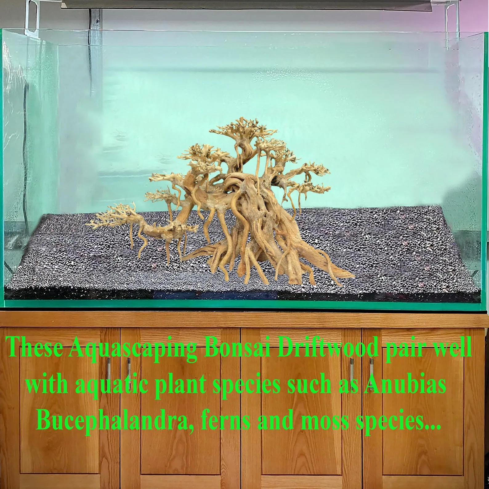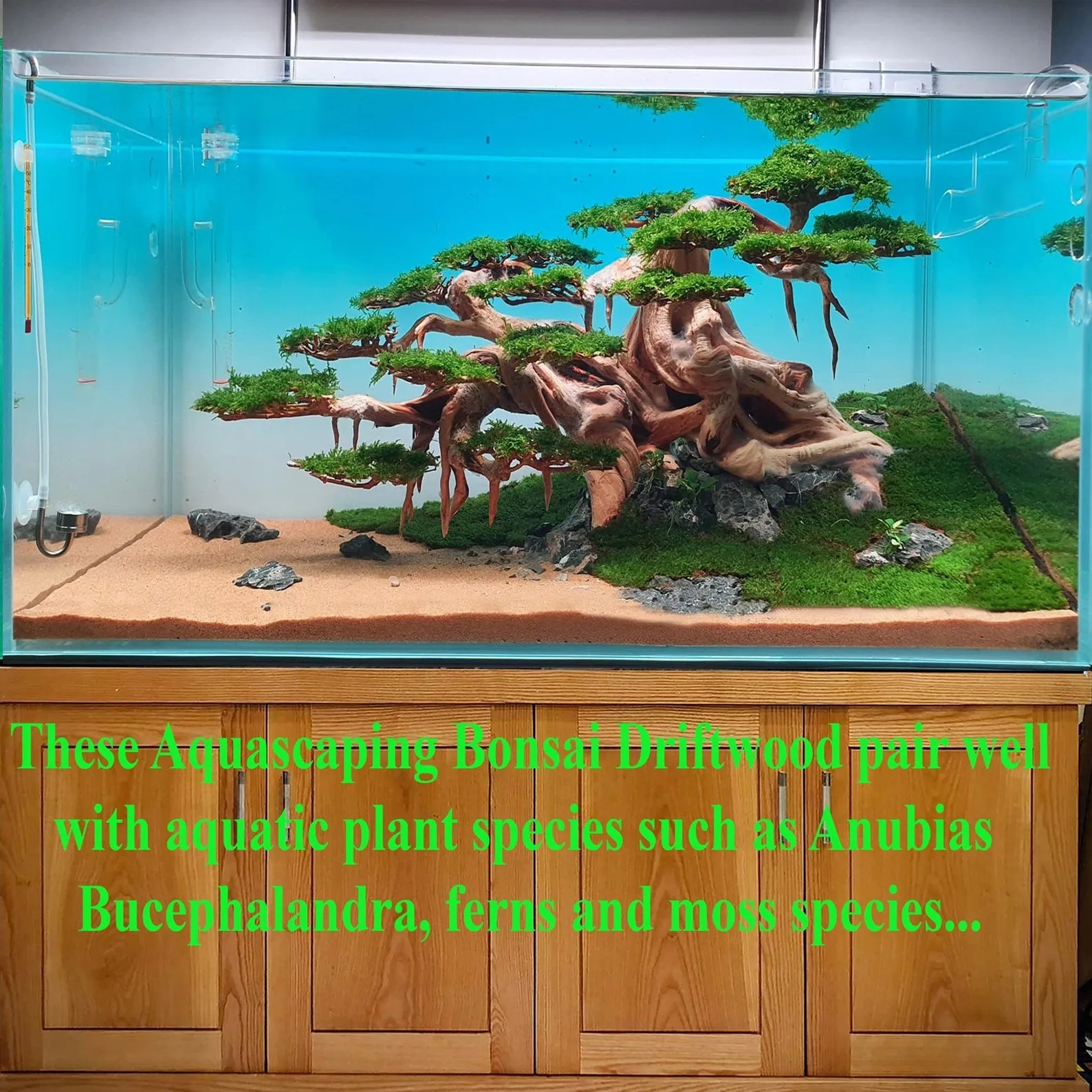 Bonsai Handcraft is proud to carry unique and natural bonsai trees! These exciting product are made by hand from natural driftwood that is aquarium safe. Artisans create these underwater trees in a wide variety of shapes and sizes to fit almost all aquarium tanks. They?re versatile, perfect piece to create an instant aquascape layout.These unique Driftwood Bonsai decorations elevate regular fish/shrimps/plants tanks, making them more than just homes for your fish/shrimps. The tanks become statement pieces; beautiful miniaturized underwater forests to add an ethereal touch to your home. Fish tanks and terrariums are attention-grabbing items.Aquascaping Driftwood Bonsai Tree pair well with aquatic plant species such as Anubias, Bucephalandra, Ferns and aquatic moss species. Quite often, these aquatic plants are used to mimic the foliage found on natural bonsai trees.On the other hand, these Aquarium Driftwood Bonsai Tree can be used to display an array of plants, aquatic or terrestrial such as tillandsia aka air plants or for coffee table decor and desk work…Driftwood bonsai for fish tank of our store is carefully selected from hundreds of years old, crooked trees on tropical rocky mountains in Phan Rang Vietnam, and specially designed to last underwater for many many years.Team Aquascape Diftwood is always happy to lend a hand, If you have any idea for a custom-made aquascape driftwood bonsai you see somewhere, we would love to see how we could turn them into a bonsai made just for you! Shoot us a DM on Etsy, email, or send a pigeon. We?d love to hear from you and Have fun.SHIPPING: *** You DO NOT have to pay any additional Import Tax. The shipping company will delivery to your house*** With small item ( below 400$ include shipping cost ). We will ship by USPS/Singapore post or VietNam Post and the delivery time is approx. 9-13 working days*** With the large item ( more than 400$ include shipping cost ). We will ship by UPS or DHL and the delivery time is approx. 5-8 working daysNOTE:Our Bonsai driftwood is a handmade item so please allow 1-2 inches ( with large piece ) error due to manual measurement. Thanks for your understanding.How to tied Moss to my Bonsai Driftwood ?Push moss into twigs or branches, these will be enough to hold the moss from floating away, placement of Bonsai Driftwood, Once the driftwood has been properly prepared, clean, and tied with your favorite moss. Carefully place the bonsai driftwood in your aquarium just as you designed!
