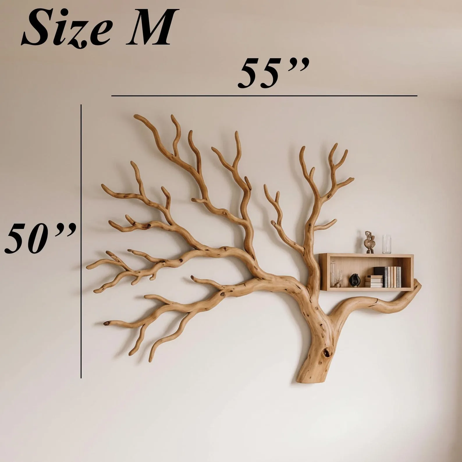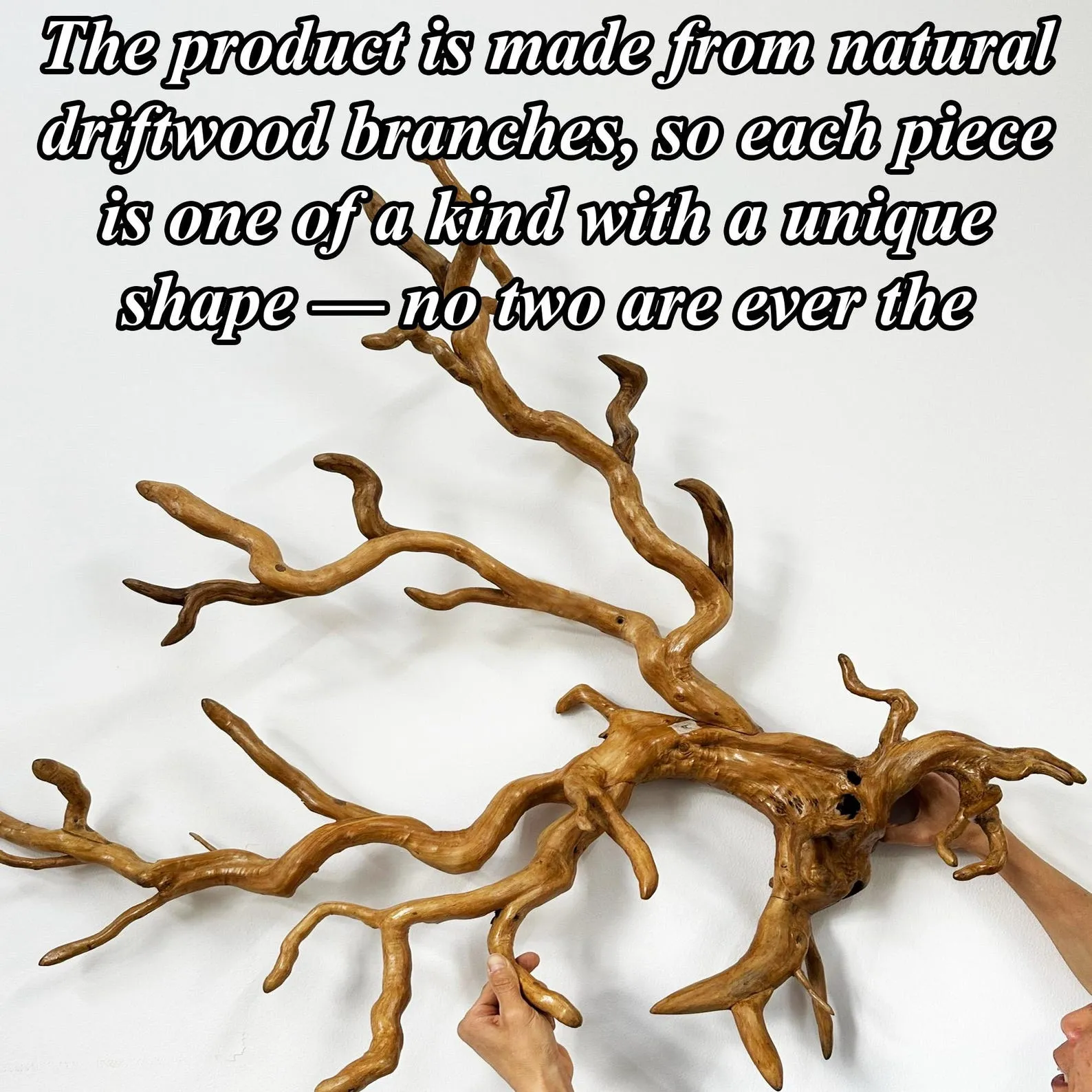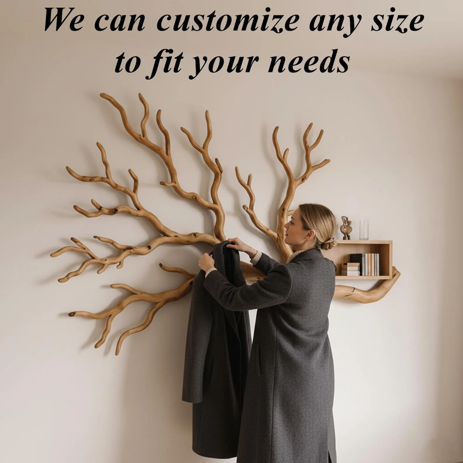 Bring the beauty of nature indoors with this handcrafted tree branch coat rack with shelf, a unique blend of functionality and artistry. Made from carefully selected natural driftwood branches, each piece showcases organic curves, wood grain, and textures that make every rack completely one-of-a-kind.Designed to be both practical and decorative, this rustic wooden coat rack with natural tree design offers plenty of sturdy hooks for hanging jackets, scarves, hats, or towels. The integrated floating wooden storage shelf provides a perfect spot for books, candles, or small d?or items, making it a versatile piece for modern, boho, or farmhouse interiors.Installation is simple with the included instructions, and the rack ships in secure packaging to ensure it arrives safely. Because every branch is unique, no two pieces will ever look the same ? a true statement of natural craftsmanship.Perfect for use as a wall mounted coat hanger for entryways, a bedroom wall shelf with tree branch hooks, or even as a rustic living room wall d?or with storage, this piece brings warmth and character to any space.? Custom sizes available ? whether you need a compact version for a small nook or a larger design for an open wall, we can create a made-to-measure piece tailored just for you.