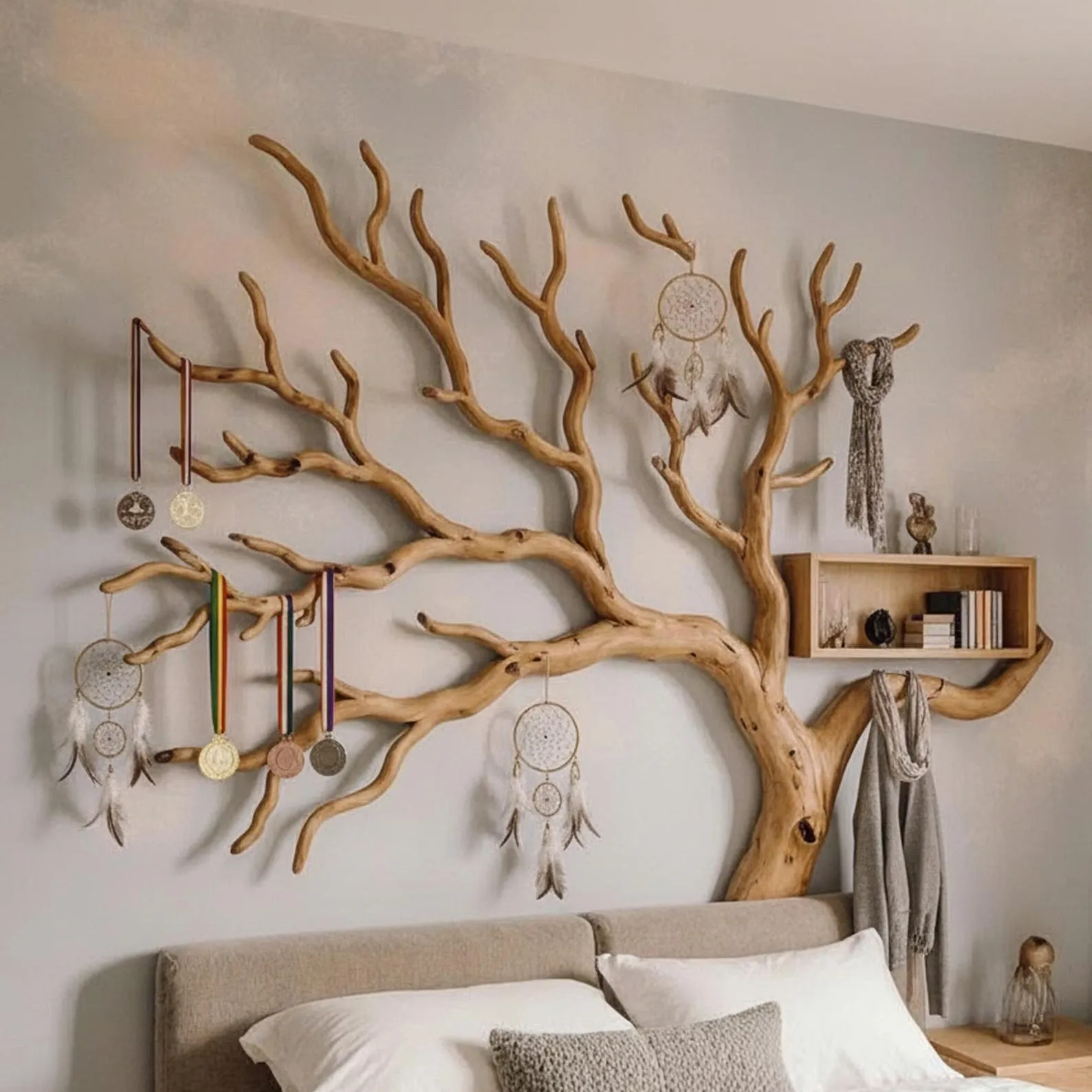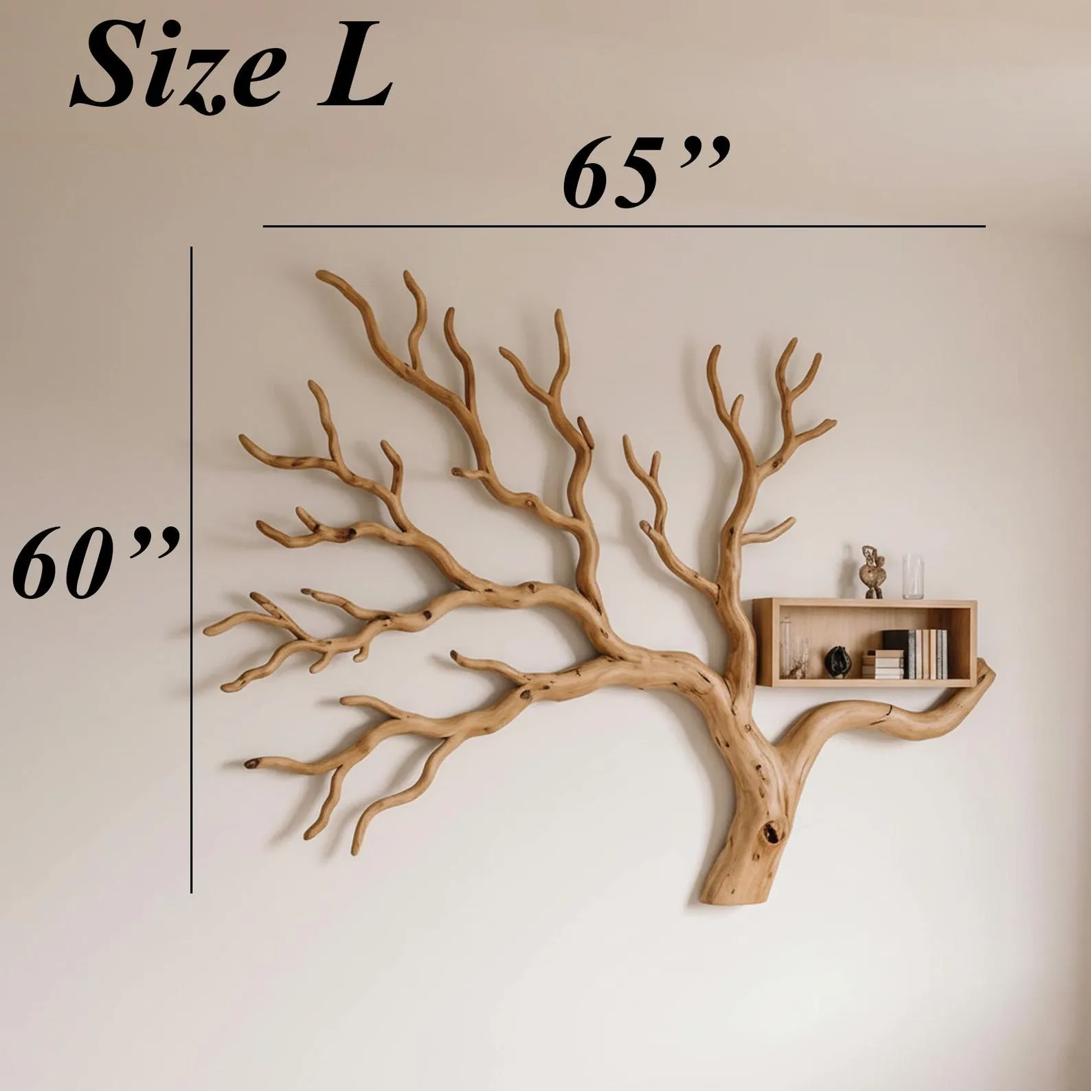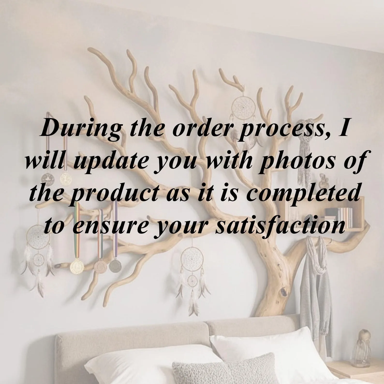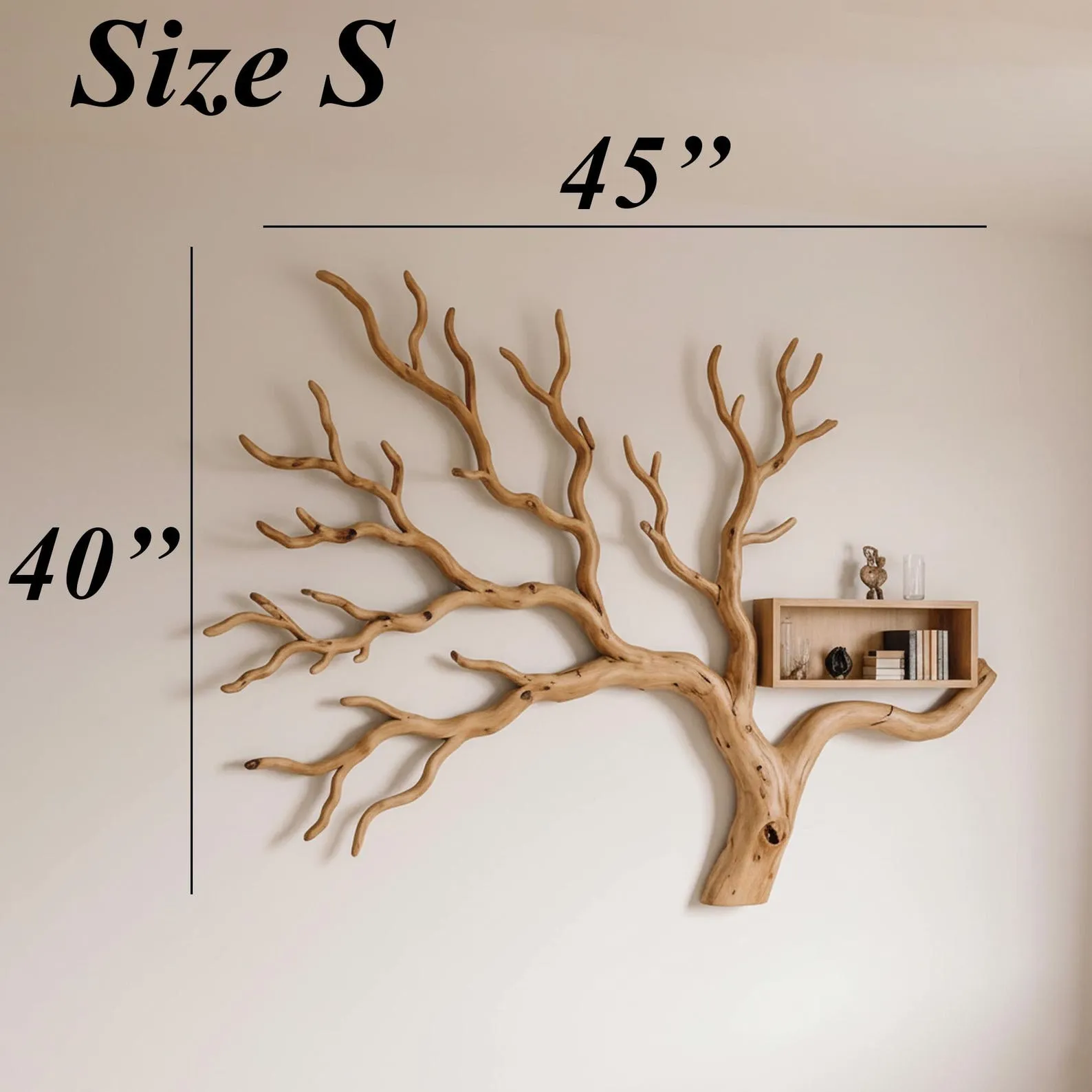 Bring the beauty of nature indoors with this handcrafted tree branch coat rack with shelf, a unique blend of functionality and artistry. Made from carefully selected natural driftwood branches, each piece showcases organic curves, wood grain, and textures that make every rack completely one-of-a-kind.Designed to be both practical and decorative, this rustic wooden coat rack with natural tree design offers plenty of sturdy hooks for hanging jackets, scarves, hats, or towels. The integrated floating wooden storage shelf provides a perfect spot for books, candles, or small d?or items, making it a versatile piece for modern, boho, or farmhouse interiors.Installation is simple with the included instructions, and the rack ships in secure packaging to ensure it arrives safely. Because every branch is unique, no two pieces will ever look the same ? a true statement of natural craftsmanship.Perfect for use as a wall mounted coat hanger for entryways, a bedroom wall shelf with tree branch hooks, or even as a rustic living room wall d?or with storage, this piece brings warmth and character to any space.? Custom sizes available ? whether you need a compact version for a small nook or a larger design for an open wall, we can create a made-to-measure piece tailored just for you.