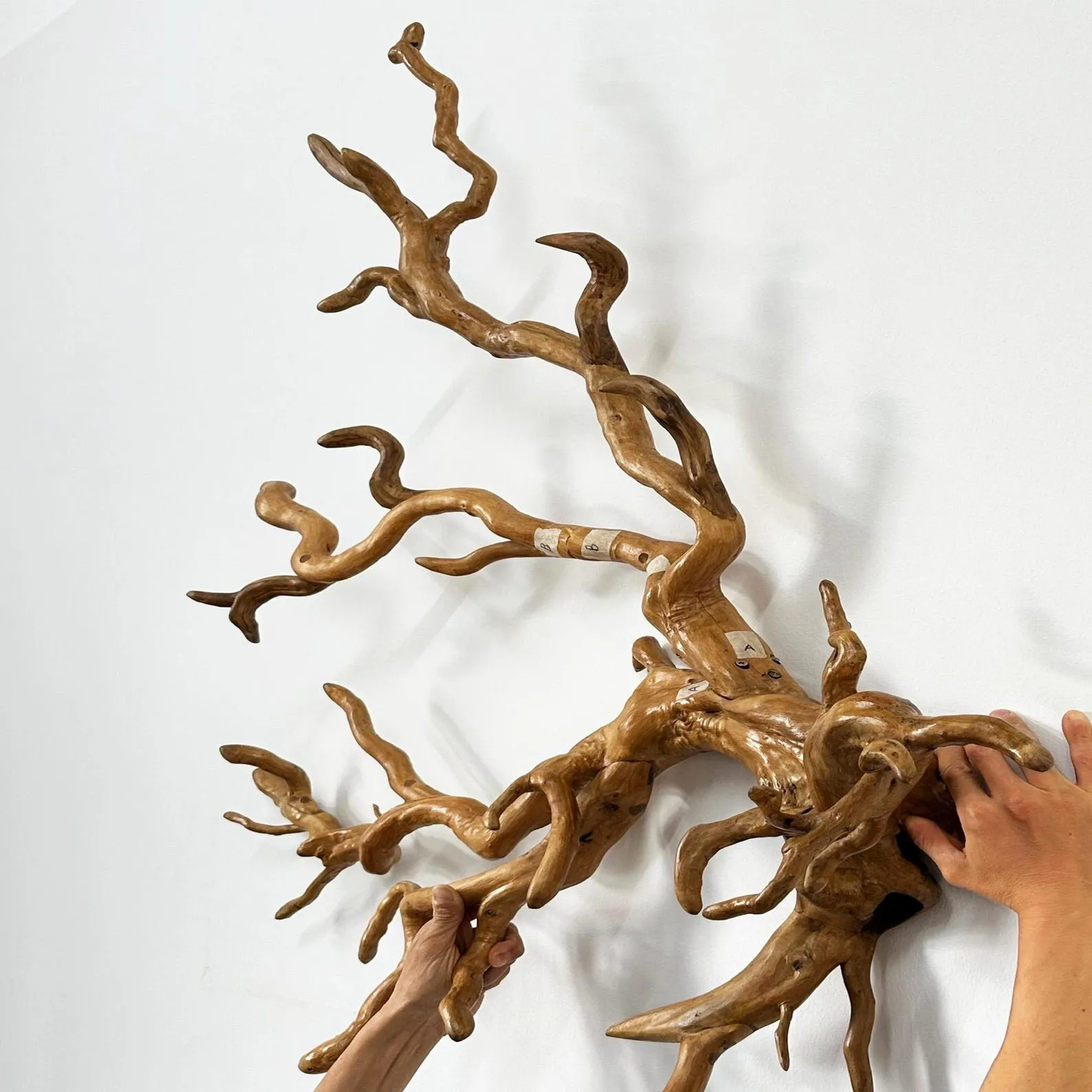 Driftwood branch coat rack wall mount decorative coat hooks tree branch entryway home decoration