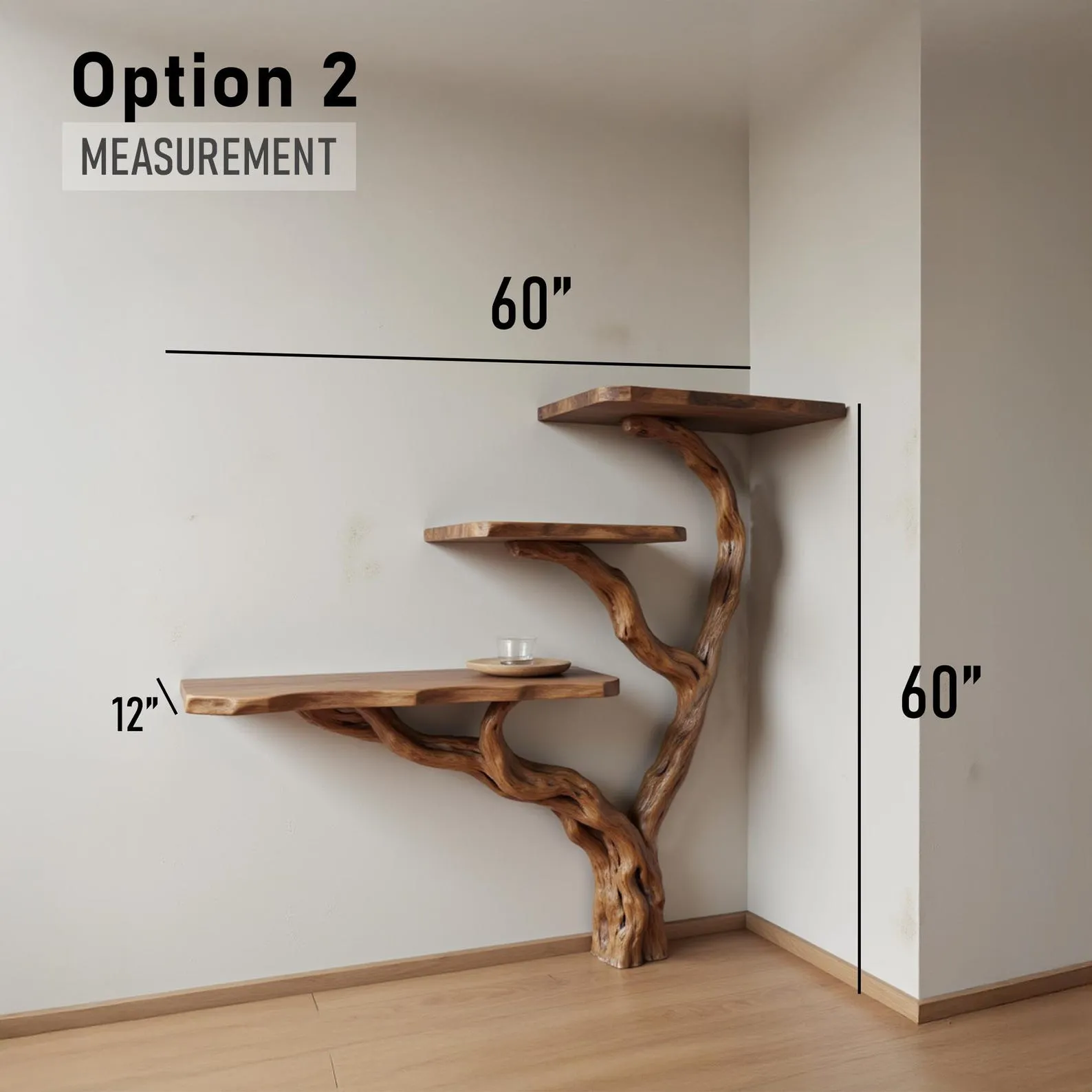 Driftwood console table tree branch shelf handmade rustic solid wood desk unique floating shelf entryway