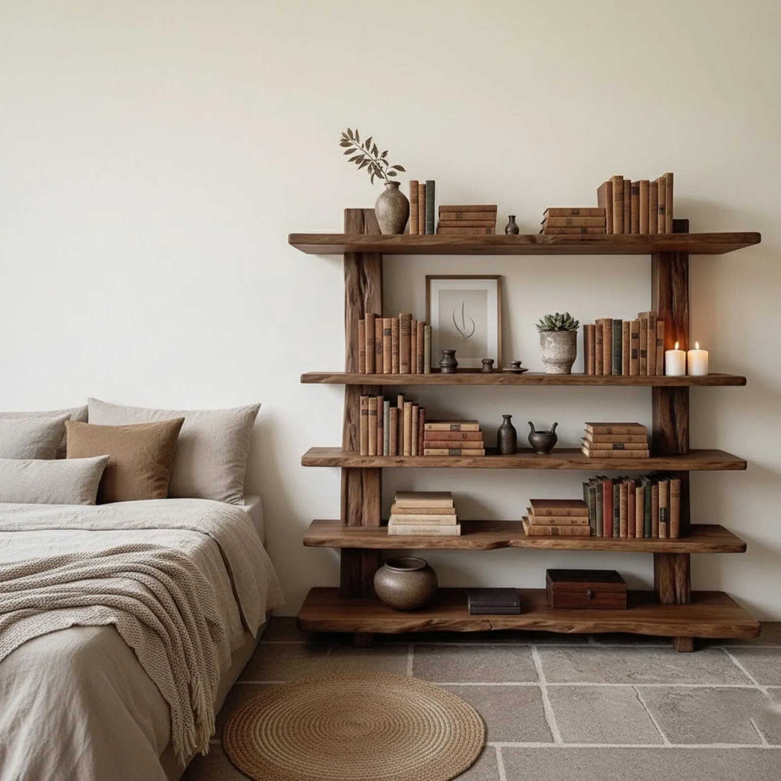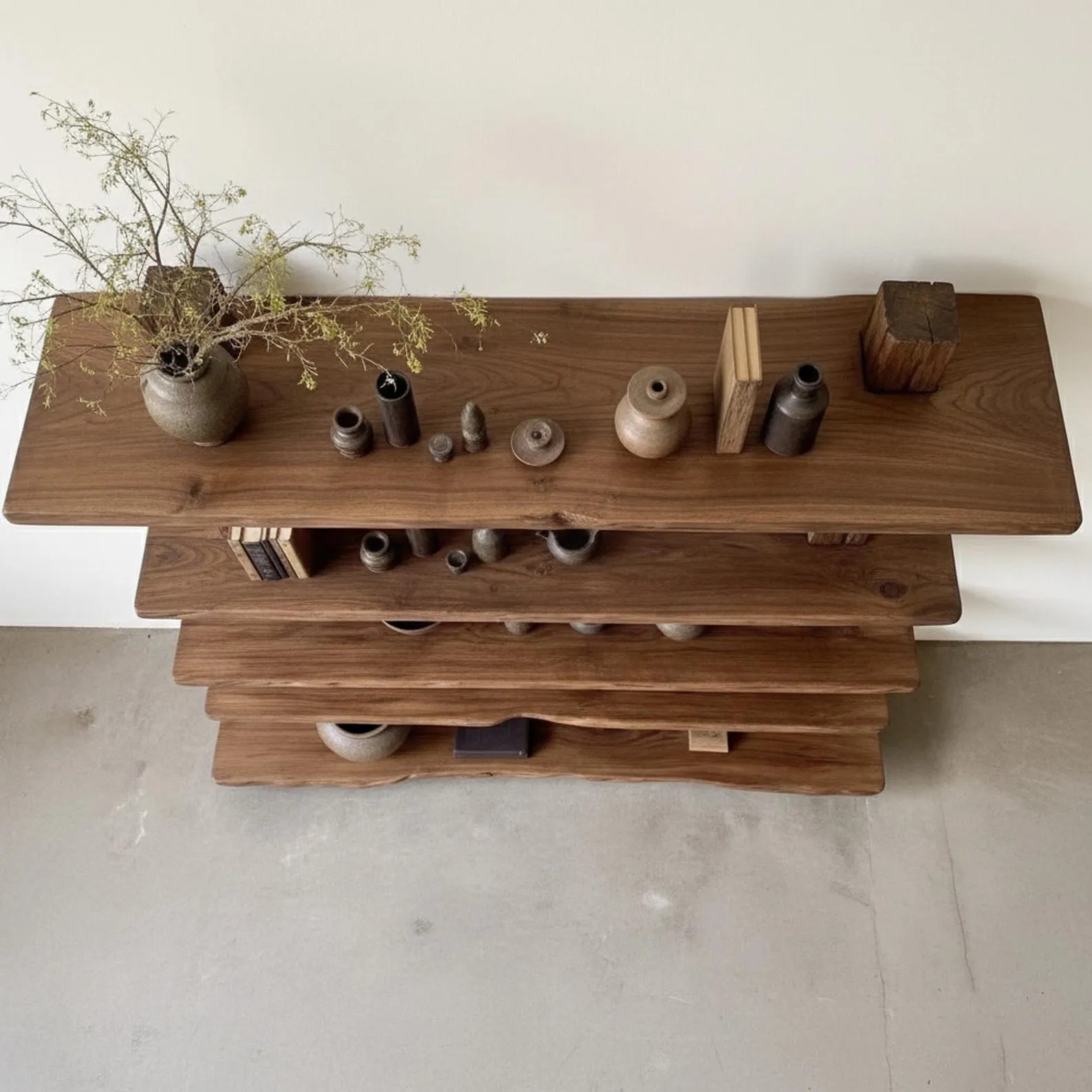 Bring timeless character and natural warmth into your home with this solid wood bookcase, handcrafted from carefully chosen driftwood and live-edge planks. Each shelf carries its own unique grain, knots, and texture ?? one-of-a-kind story written by nature itself.Designed with a strong yet minimal mid-century silhouette, this wall-mount bookshelf cabinet blends rustic charm with clean modern lines. The raw edges and earthy tones celebrate the beauty of natural wood, while the sturdy construction ensures lasting strength for books, pottery, or your most treasured objects.Whether placed in a cozy living room, a serene bedroom, or a rustic study, this shelving unit becomes more than furniture ??t becomes a piece of the forest brought indoors. Its natural imperfections are not flaws but marks of authenticity, turning every bookcase into a unique heirloom.Features:Handcrafted from solid driftwood & natural hardwoodRustic live-edge shelves with organic grain patternsMid-century inspired design, timeless and versatileDurable build for books, art, and collectiblesEach piece is one-of-a-kind, made by nature and artisan hands