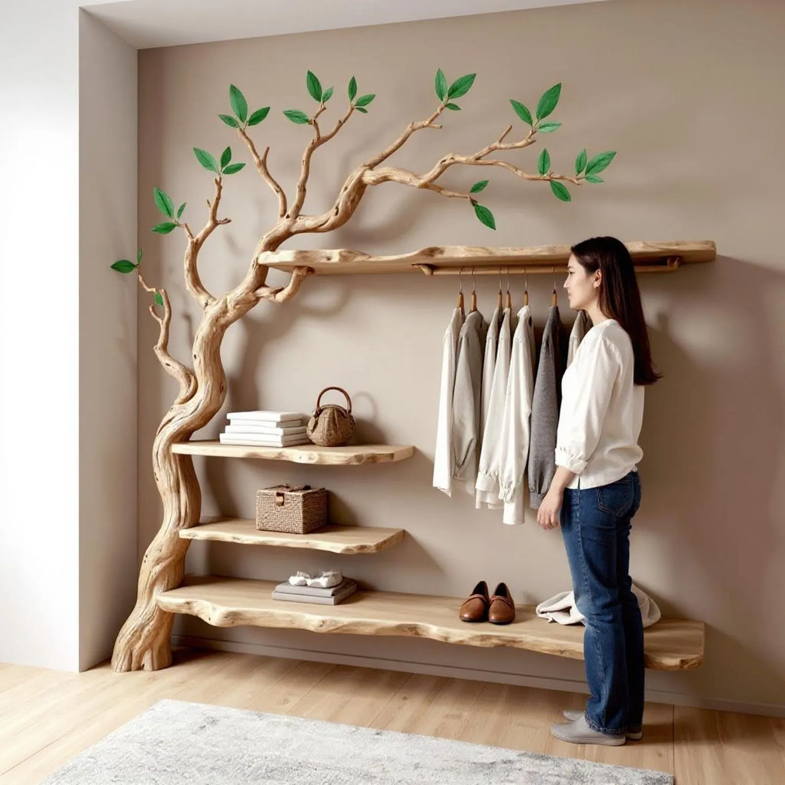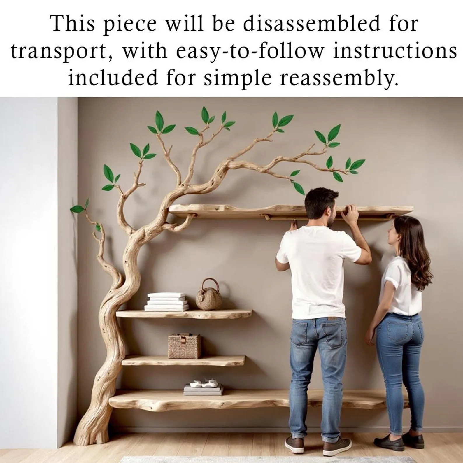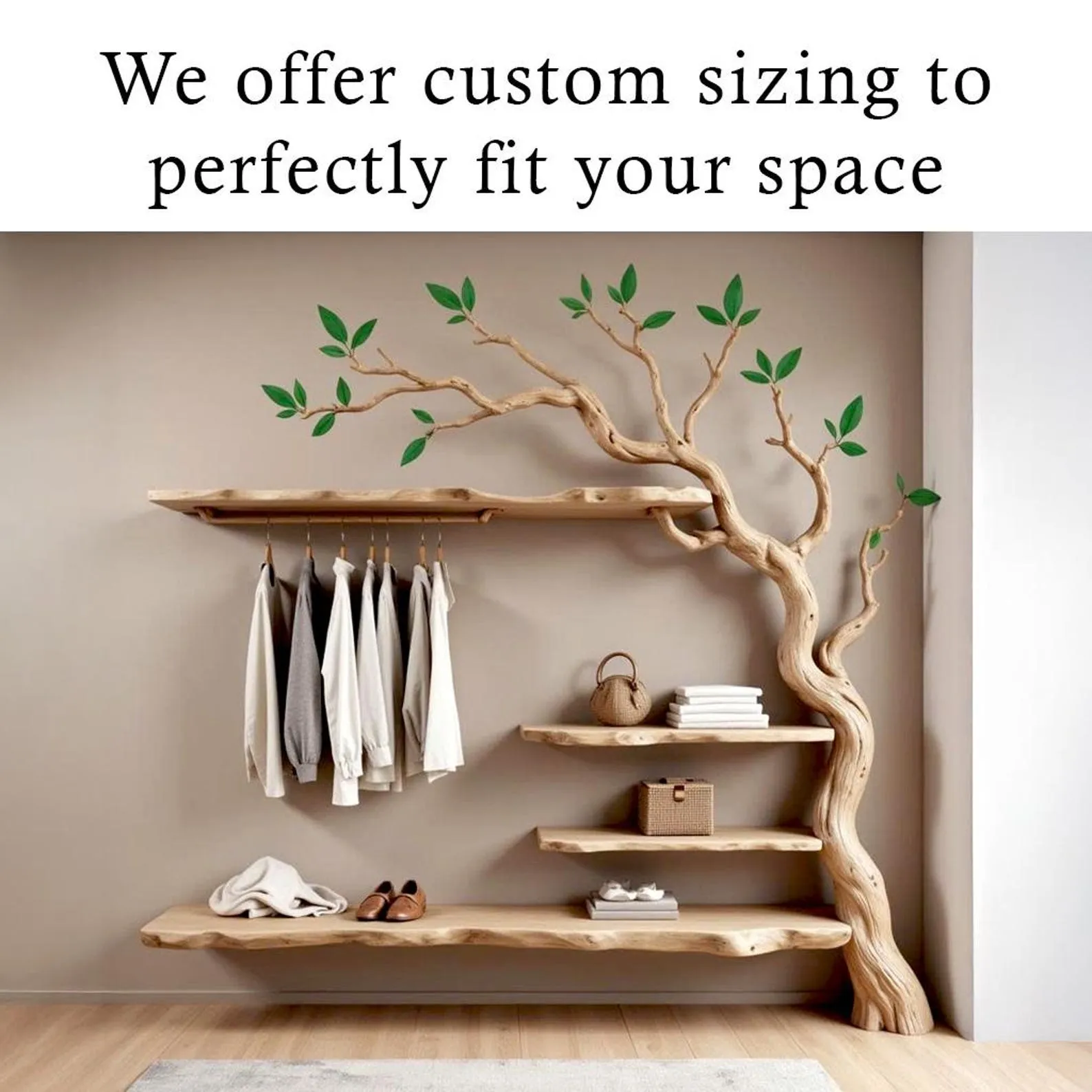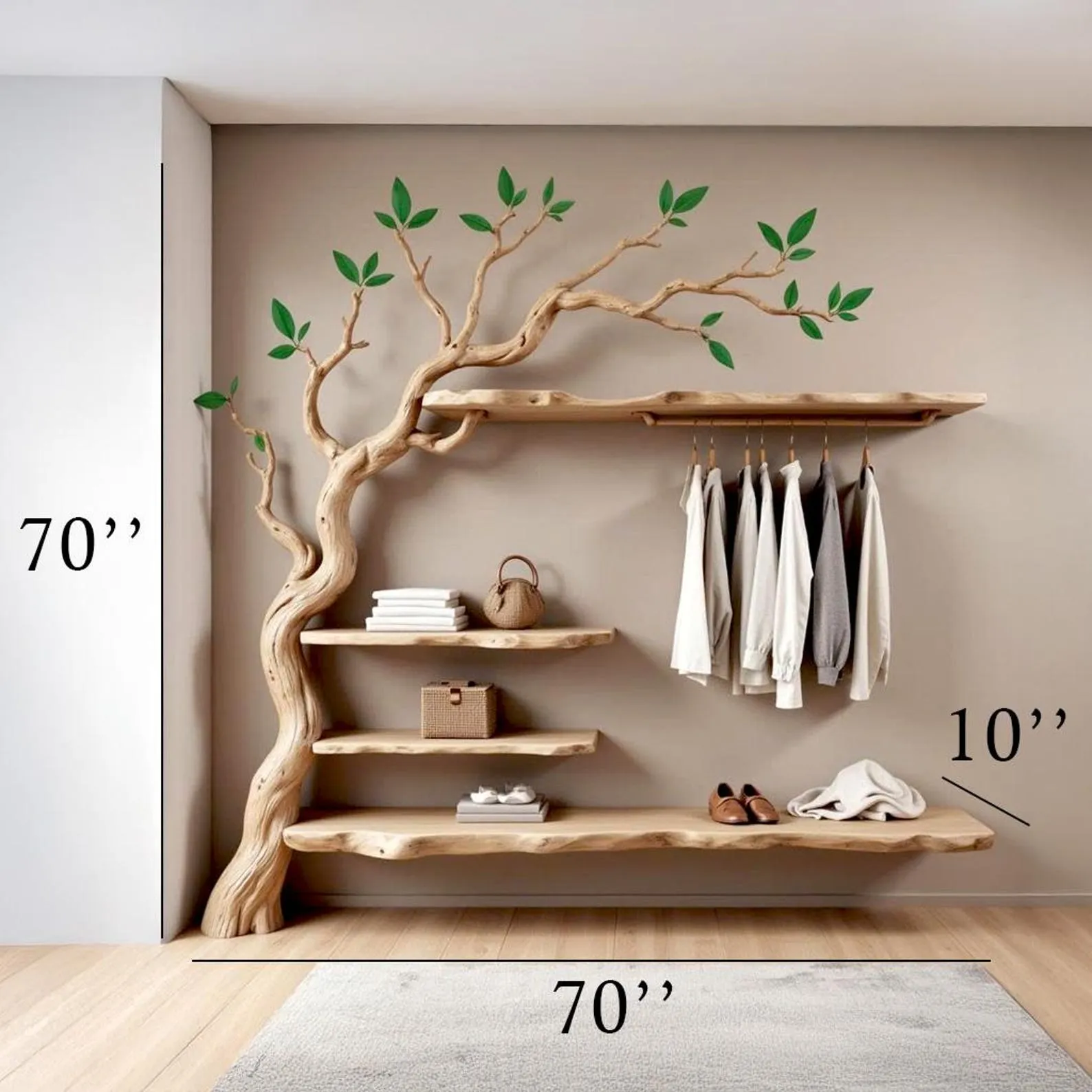 ?? Crafted by Nature, Shaped by HandThe Driftwood Tree Branch Coat Rack is more than just functional, it?s a sculptural centerpiece inspired by nature. Handcrafted from real tree branches, this wood branch coat hook captures the raw beauty of the forest in a practical design that serves as both a coat rack tree and a storage shelf. Its flowing form adds movement and charm to any space.?? 100% Natural Materials & One-of-a-Kind DesignEvery branch is sustainably sourced and handpicked for its unique character. Because this piece is made from natural wood and assembled manually, slight variations in shape, grain, and color are to be expected?and celebrated. No two are the same, ensuring your tree shelf clothes rack is completely unique. ???? Multi-Use FunctionalityDesigned for modern living, this coat rack with shelf offers versatile storage. Hang coats, hats, or scarves on the upper rack, while using the sturdy live-edge shelves for shoes, baskets, or folded clothes. Perfect for entryways, bedrooms, or open wardrobes, it brings warmth and natural elegance into everyday use. ??????? Simple Assembly with Clear InstructionsThe product ships disassembled for easier transport, with all pieces clearly marked and a simple step-by-step guide included. ?? As with any handcrafted piece, slight alignment variations may occur?these are part of its handmade charm, not imperfections.?? Custom Sizes AvailableWe offer made-to-measure options to perfectly suit your space. Whether you’re decorating a cozy nook or a spacious hallway, we?ll tailor this driftwood coat rack tree to fit your vision. ????